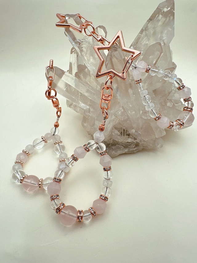 【レインボークォーツの煌めき!ピンク色の魔法使い】Krehaオリジナルブレスレット