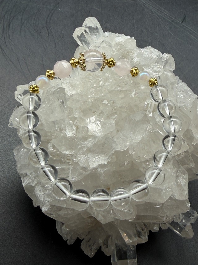自分らしく生きて輝く【水晶×ローズオーラブレスレット】選べるサイズ WKSQRoq01‐611042