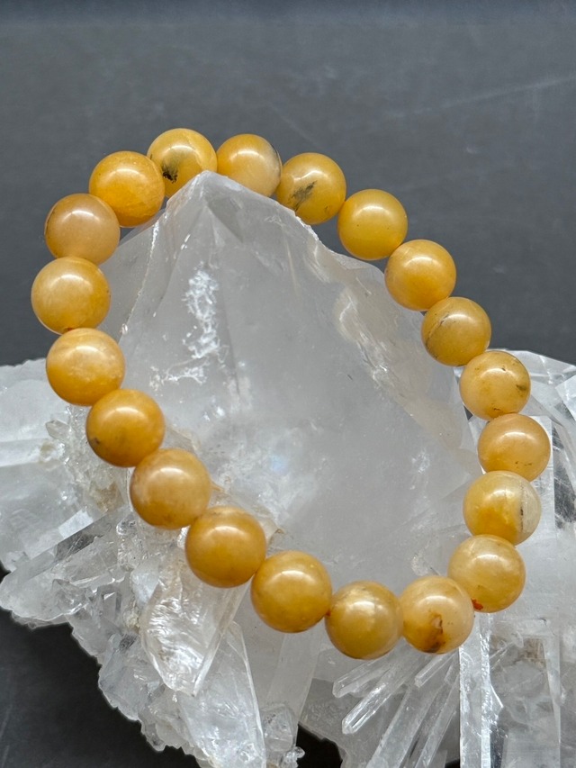 10月誕生石のオパールの中でも個性的で心身の健康と幸運を導くイエローオパールオパールのブレスレットです! 中でもコモンオパールと呼ばれる乳白色の優しい黄色をしている可愛らしいパワーストーンです。 オパールは和名「蛋白石」と呼ばれる、まるでゆでたまごをむいたかのようなやわらかな輝きを放つのが特徴的で、身に付ける方に明るく朗らかで豊かな愛情とやすらぎある毎日へと導きます。 また、本来の自分らしさを引き出し、才能や魅力を輝かせます。 社交的な面やコミュニケーション能力を育み、どの時代でも様々な環境でも自分本来の美しい輝きを失わせることなく生きる道をサポートいたします。 ナチュラルな風合いが魅力的な一品です。 オパールの生成過程で生まれる「デンドリック」と呼ばれる樹木のような、景色に見える 内包物が見られます。これは、二つと無いもので、持ち主の心の輝きに呼応して希望の芽のように光を授け、人生に進展や繁栄をもたらします。また、精神的ストレスの緩和と情緒の安定、健康の増進をもたらします。 *こちらの商品は、鉱物の凹凸がそのまま表面にあります。 個性をお楽しみいただける方におすすめです。 *こんな方におすすめです ・シンプルなブレスレットが欲しい ・厄除け・開運に ・願望成就に ・人間関係の向上に ・金運・繁栄のお守りに ・コミュニケーション力の向上に ・生きる希望を輝かせたい方に ・精神的なストレスの解放に ・閃きと感性の開花に ・愛情豊かな未来を願う方に ・良縁成就に *ブレスレットサイズについて ・当店は「内径実寸」サイズを明記しています。 「内径実寸」とは、ブレスレットの石の内周を表します。 以下をご参考になさってサイズをお選びください。 ・初めての方は、「手首実寸」をメジャーや紐などできつくない程度の「ぴったり」なサイズを測って下さい。 ・【手首実寸 +0.5㎝】…「ぴったりめ」 ・【手首実寸 +0.5㎝~1.5㎝】...「標準」(指が一本分手首に入るゆとりです) ・【手首実寸 +1.5㎝~3㎝】...「ゆったりめ」 *天然石は、地球の生成とともに永い年月を経て誕生し、二つと同じものはありません。 身に付ける方に共鳴してパワーを発揮いたします。それぞれの粒には、天然ならではのインクルージョン(内包物)やクラック(ひび)がある場合があり、ビーズ状に加工する際に凹みや傷のような小さなものが見られる場合がありますが、これらは不良品ではありません。永い年月を経てこの時代に出逢えた鉱物たちの天然ならではの個性をお楽しみください。 *Krehaによる浄化と共鳴の光を込めてお送りいたします。 *使用している間に、または年月が経ち、ゴムが切れそうになったり切れたり、 水や油分による劣化や変色が起きる場合がございます。 これは、パワーストーンが身に付ける方に共鳴して、身代わりとなったり、願望成就や何かの知らせの場合がございます。 そのような場合は、当店にご連絡後、お送りいただきお直しを承ります。 お直し(Krehaによる共鳴と浄化つき)料金にて、承ります。(石やパーツお取替えは代金が別途かかります。また、お申し込み順にさせていただいているため、約1カ月お日にちをいただく場合がございます。ご了承の上ご連絡ください。) 内径実寸 15cm イエローオパール 約9㎜×20 約22g ※訳あり(欠け、へこみあり)