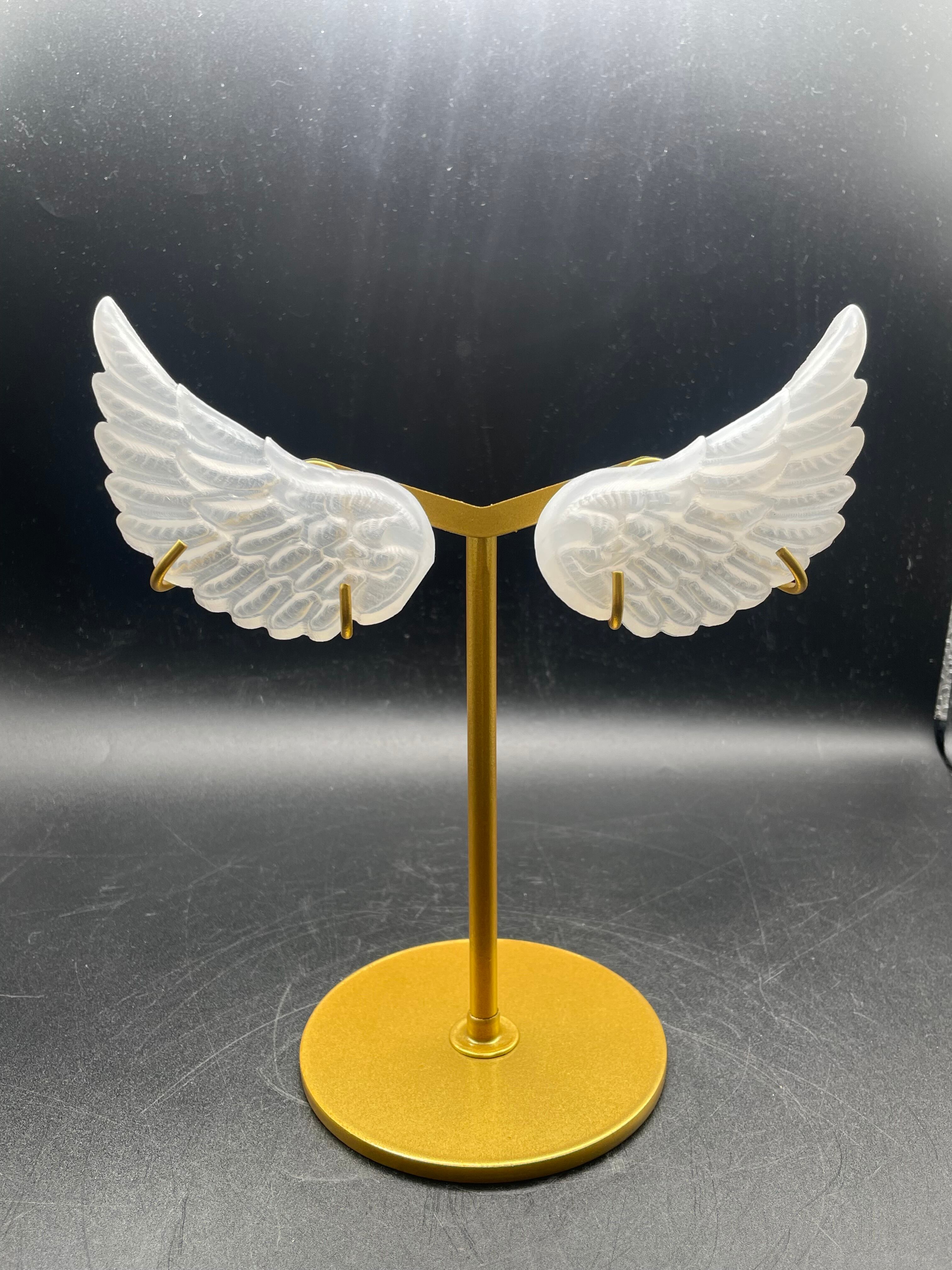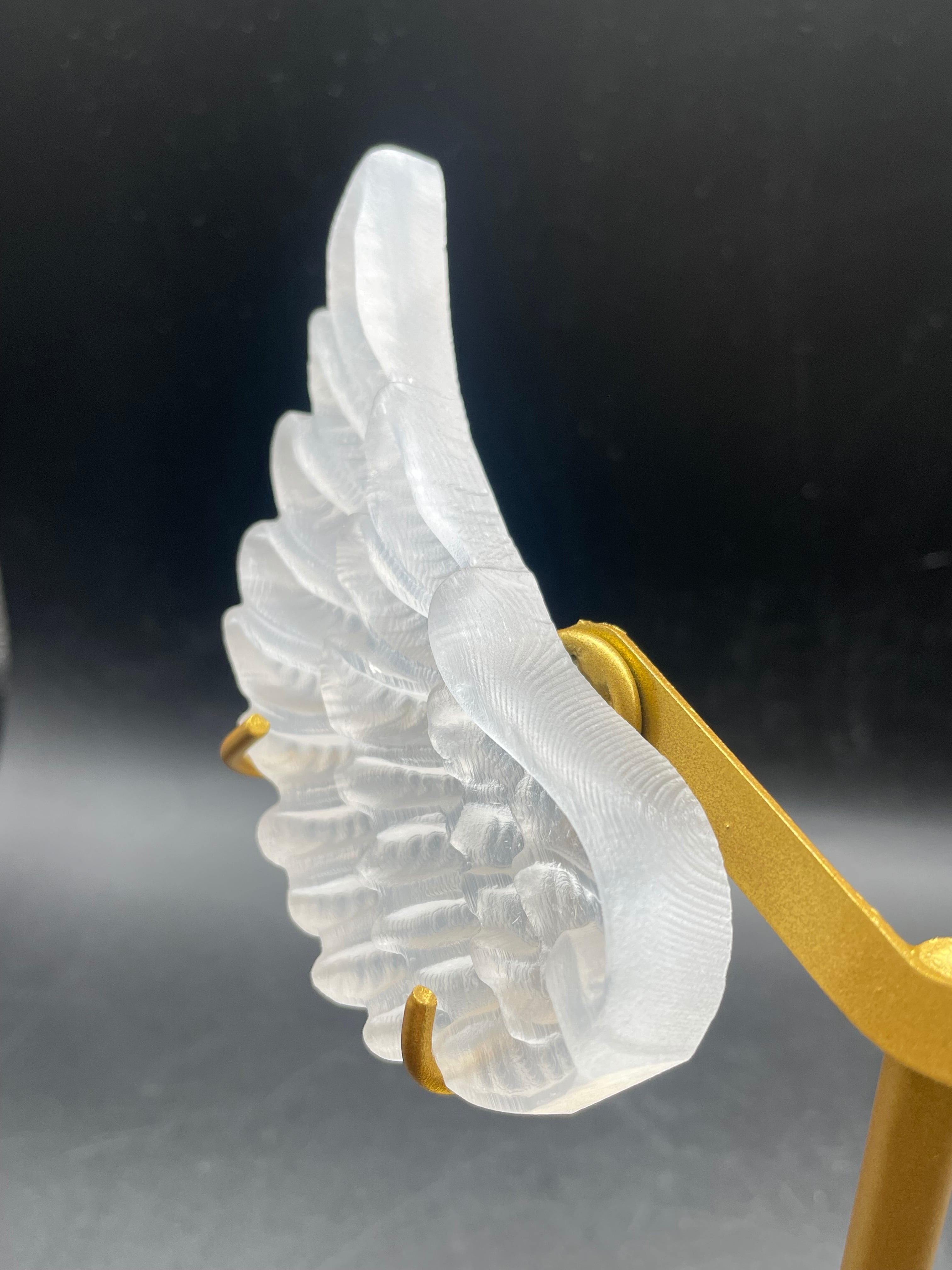 非常に美しく優しい光放つ、白色のセレナイトの【天使の羽根】の置物です。