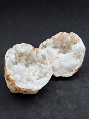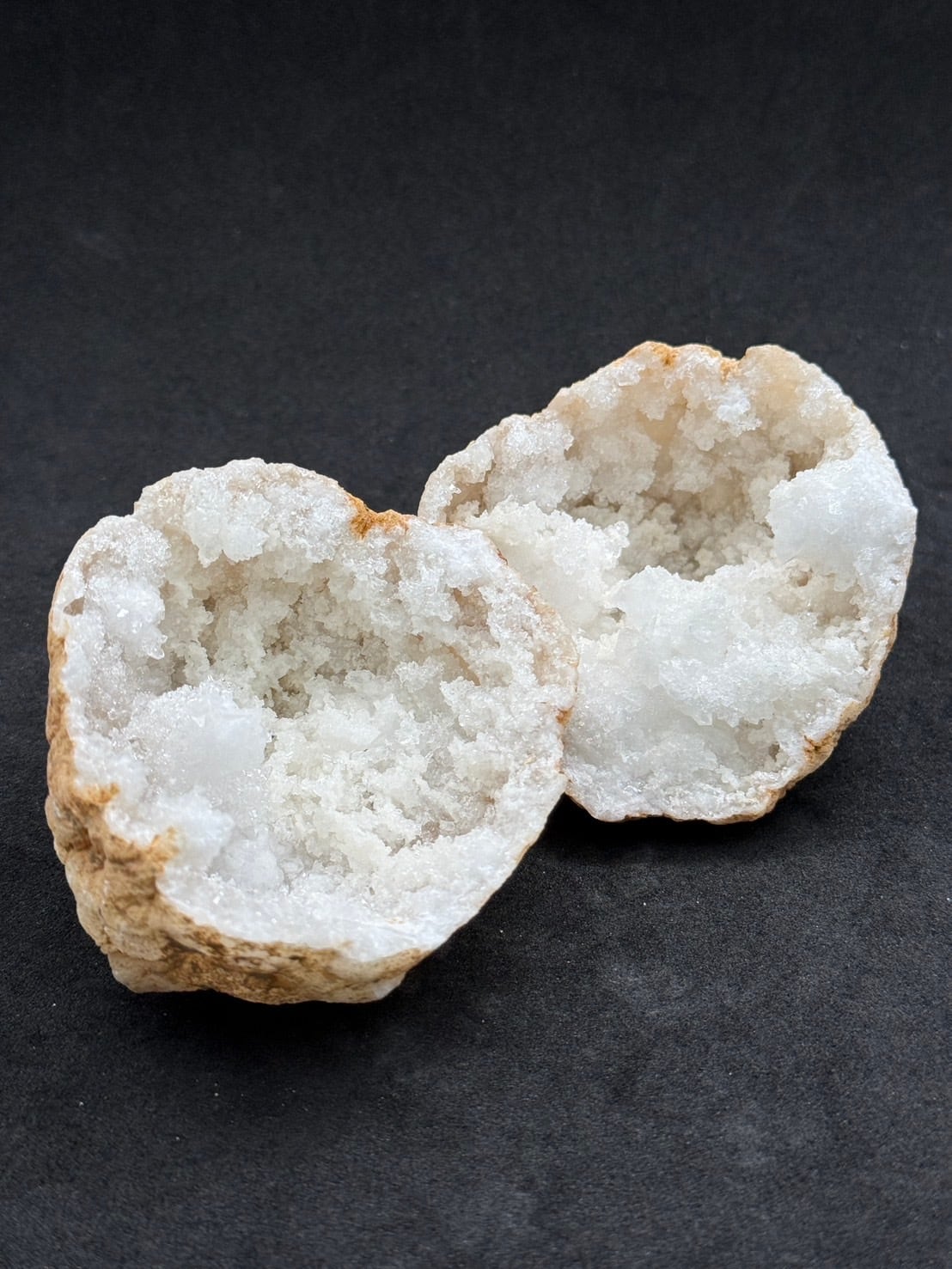 こちらの水晶ジオードは、自然界で生まれたものを割った状態の二つを1セットとしてお届けいたします。