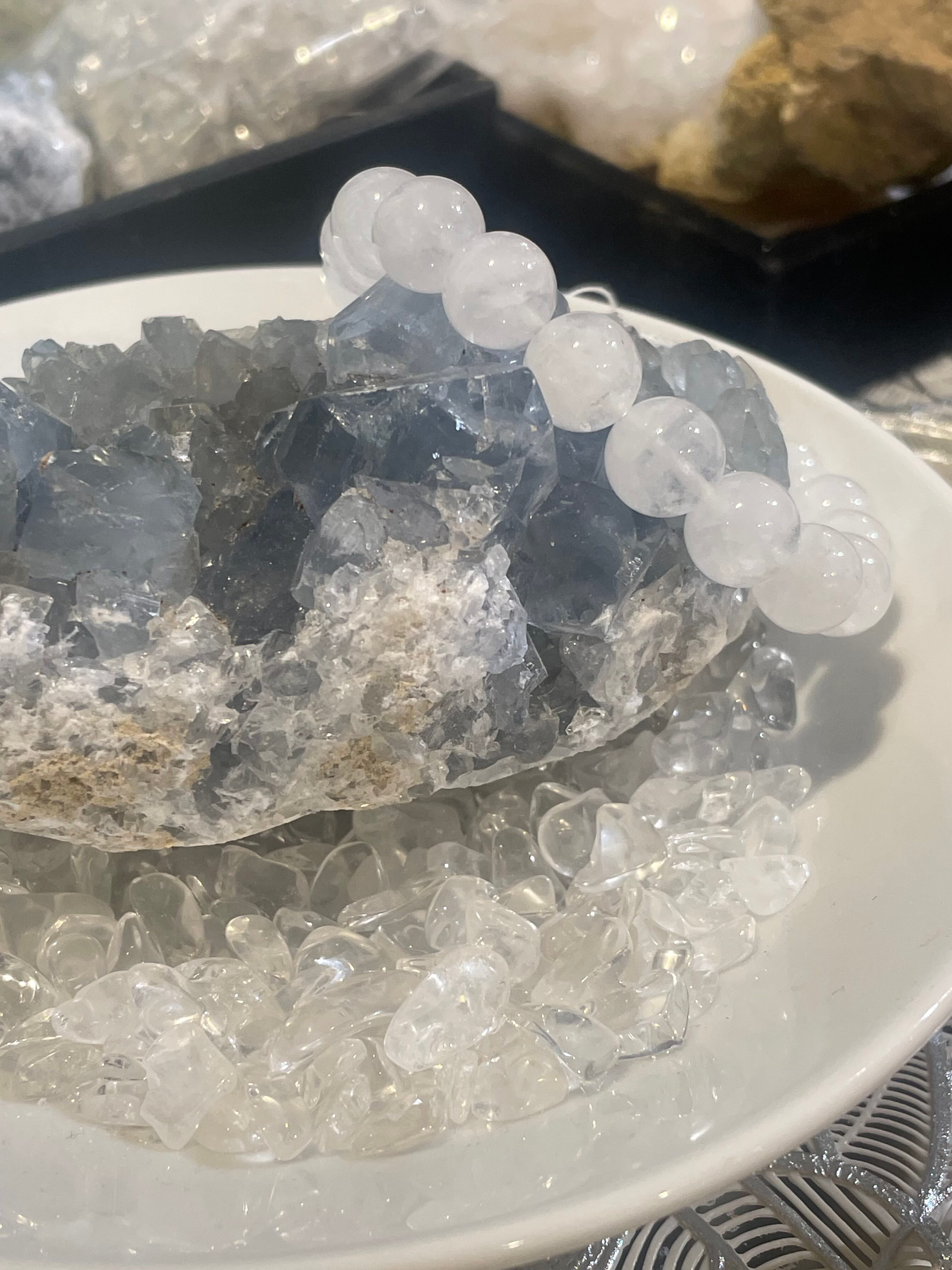 パワーストーンの浄化用として、優しくセレスタイトの上にブレスレットやピアスネックレスなどを置いてご利用になれます。