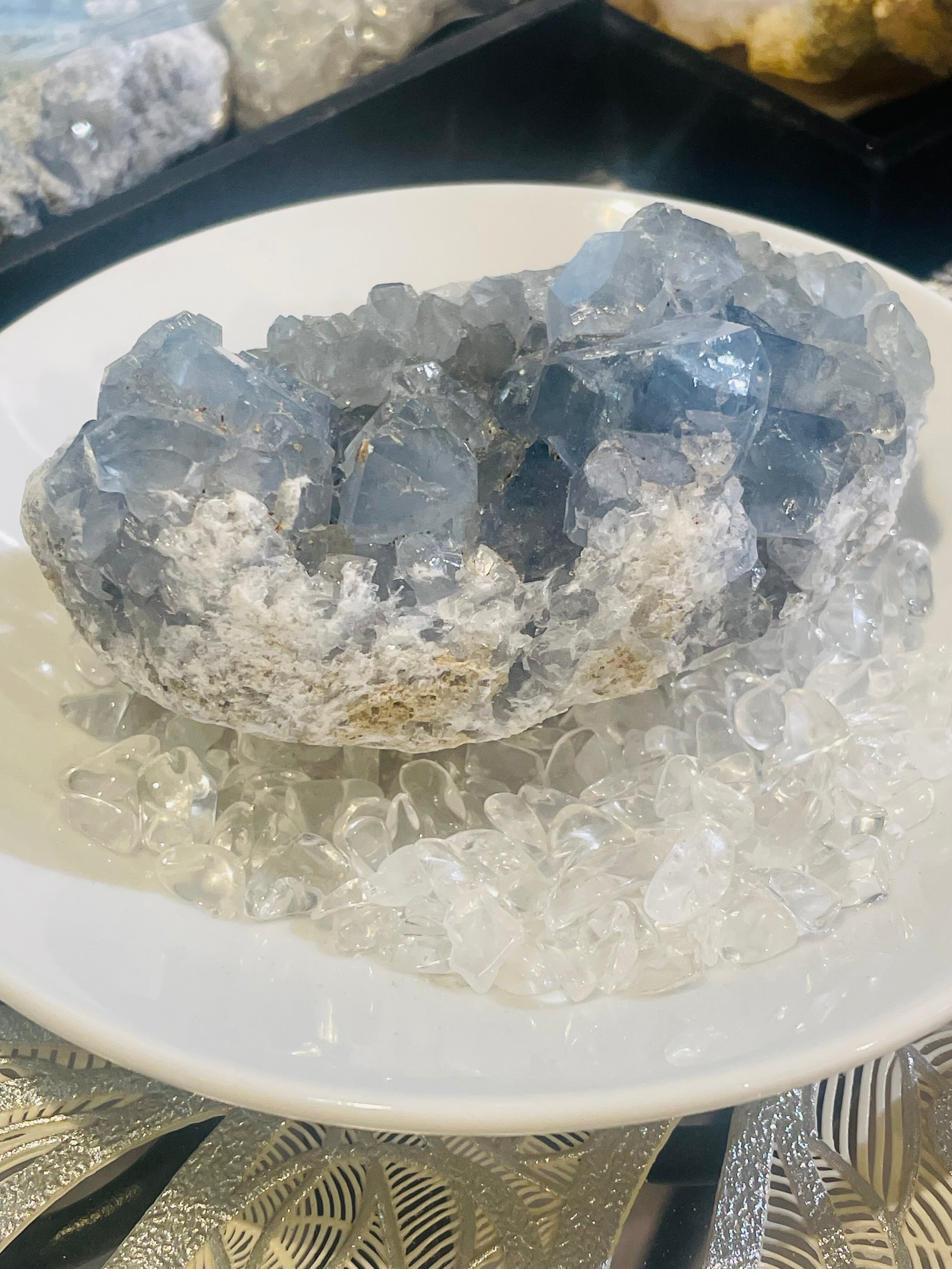パワーストーンの浄化用として、優しくセレスタイトの上にブレスレットやピアスネックレスなどを置いてご利用になれます。