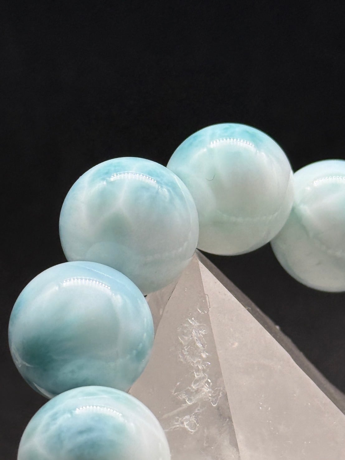 世界の3大ヒーリングストーンのひとつであるドミニカ産【ラリマー(ペクトライト)】の世界にふたつと無い模様が魅力であり、癒しの光放つブレスレットです。