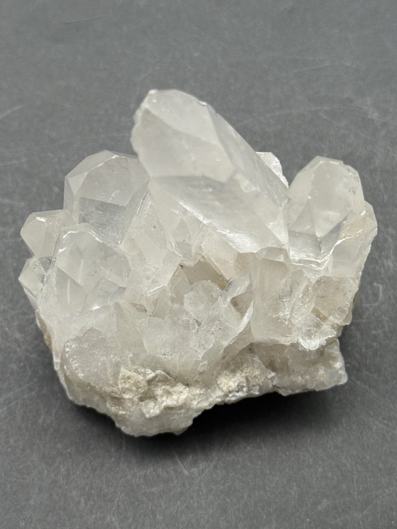 美しい透明な輝きの水晶結晶が、二つとない自然界の個性を表す、ブラジル・ミナスジェライス州産の手のひらサイズの水晶クラスターです!