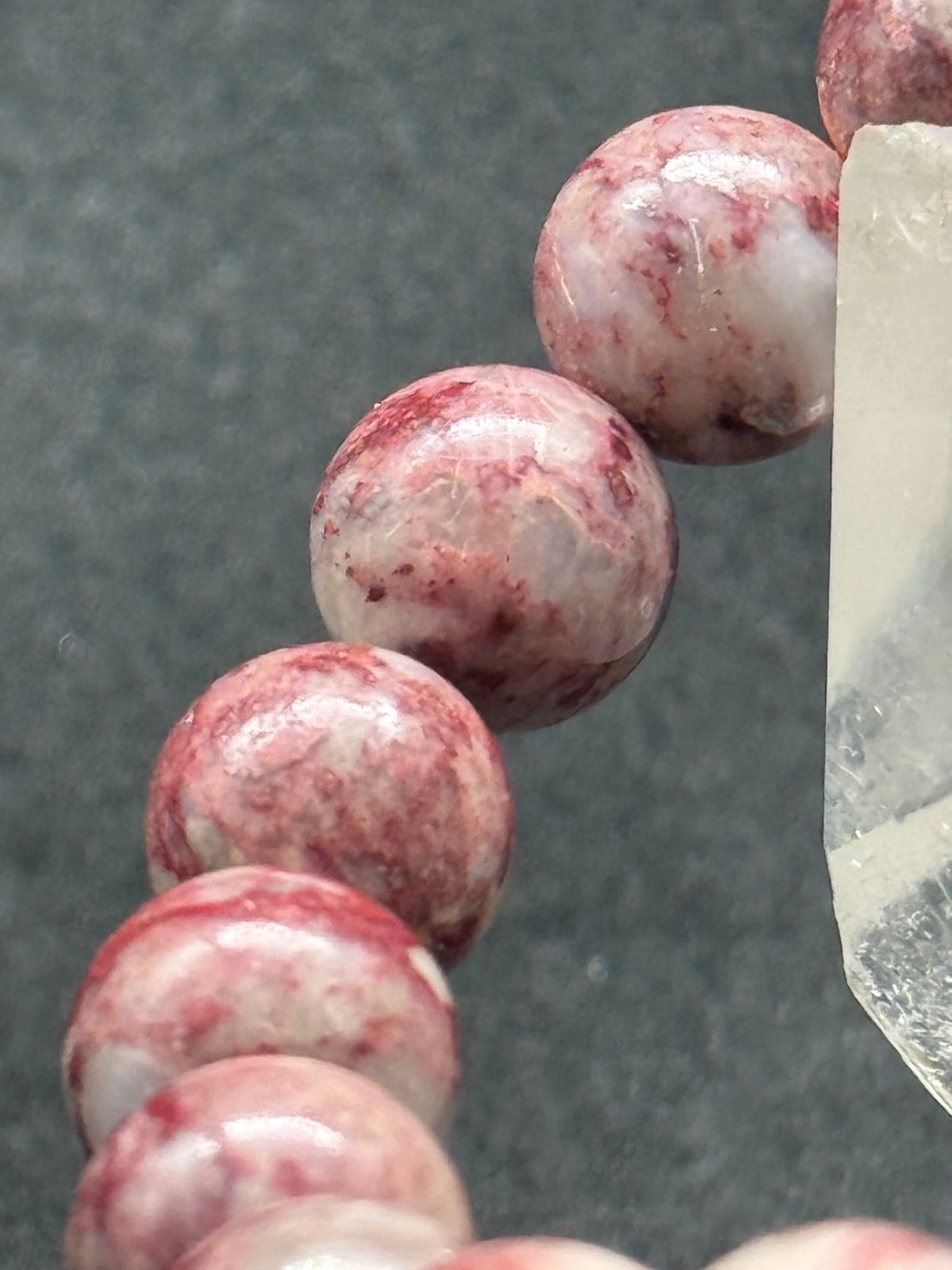 優しい白地に赤いシナバーが優しくも強く輝きを放つ、