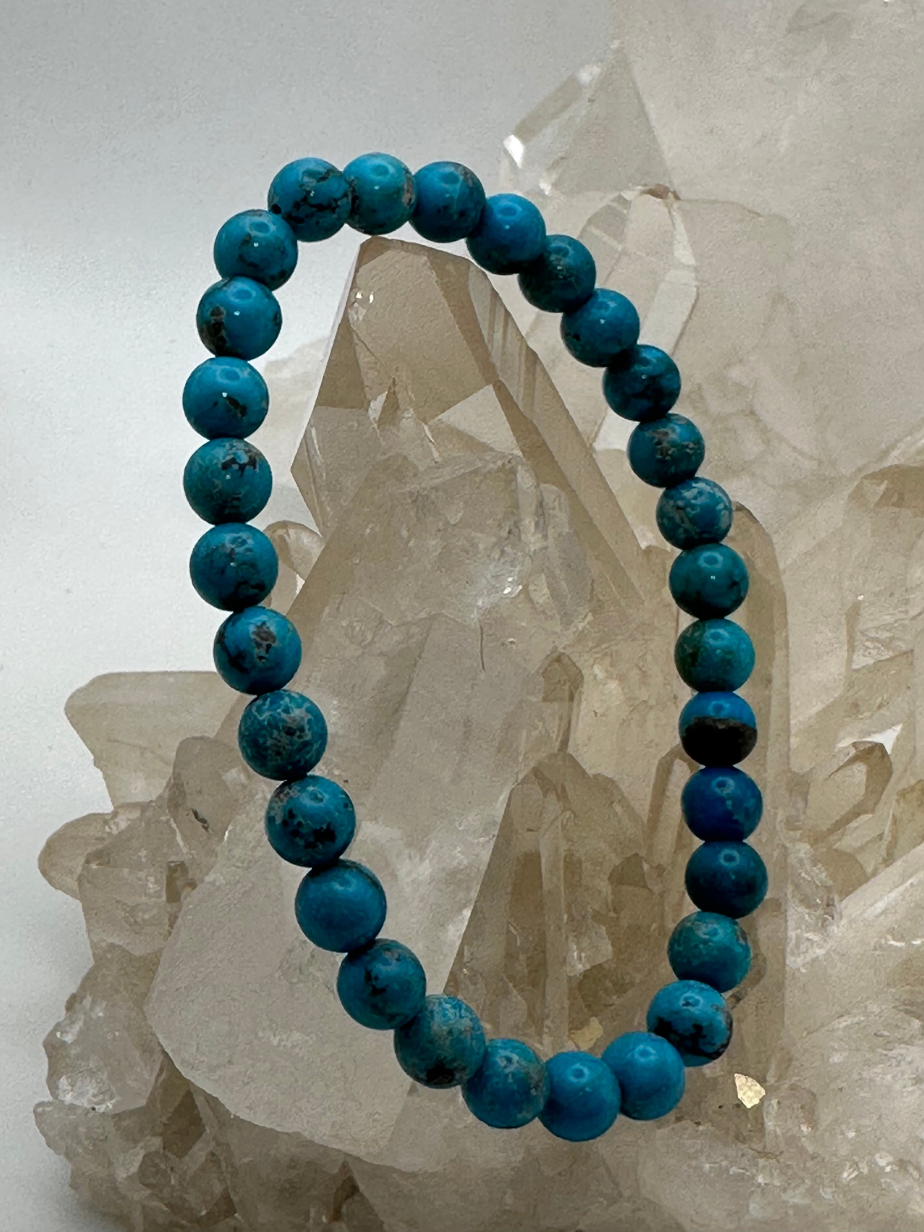 12月の誕生石のひとつ「ターコイズ」の自然界に生まれたナチュラルな風合いが一粒ひとつぶに見られる、ふたつとないブレスレットです!
