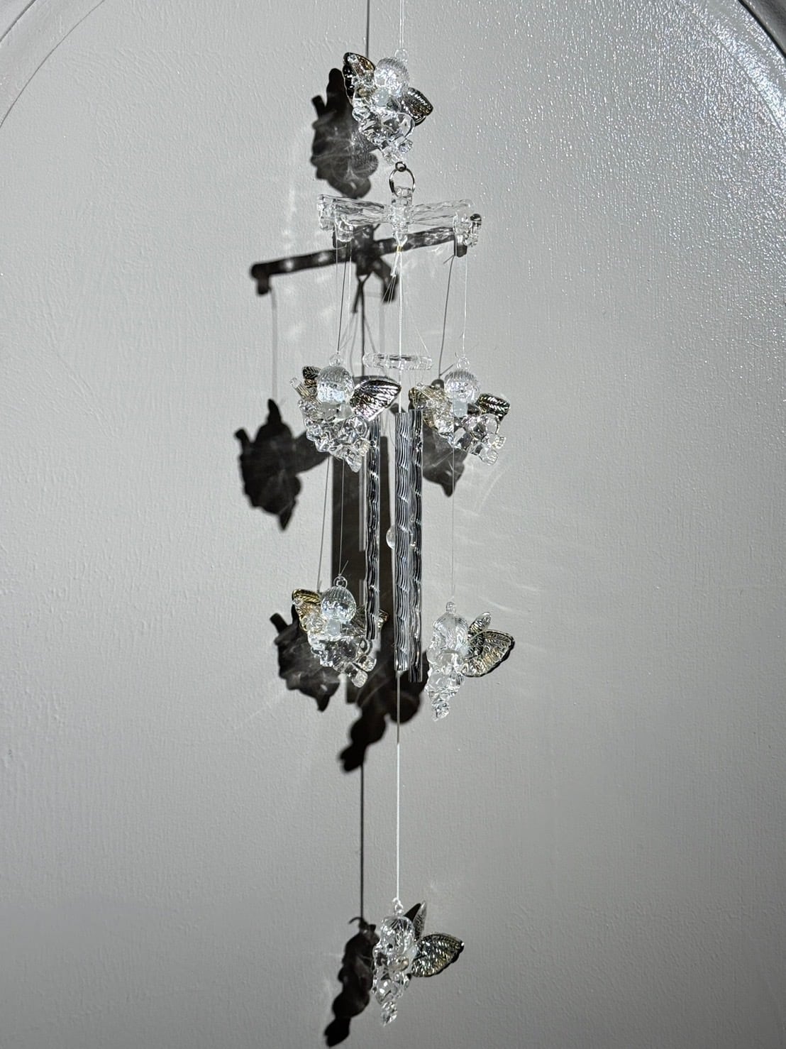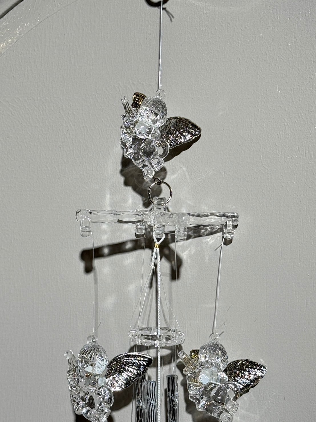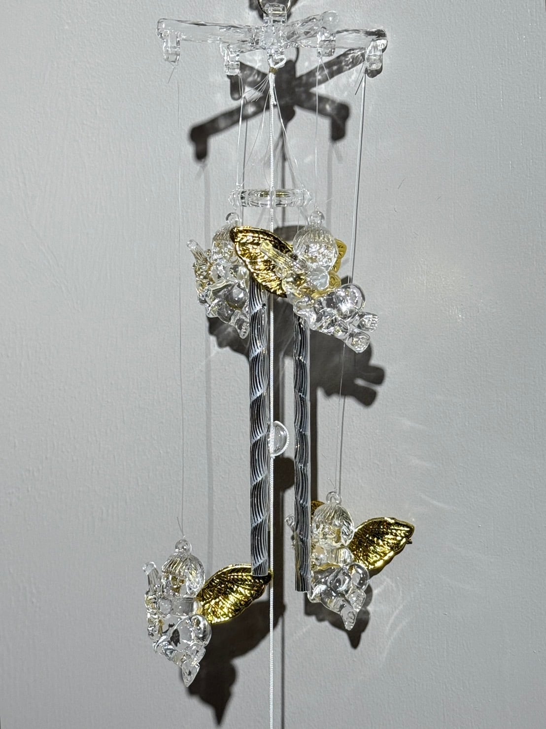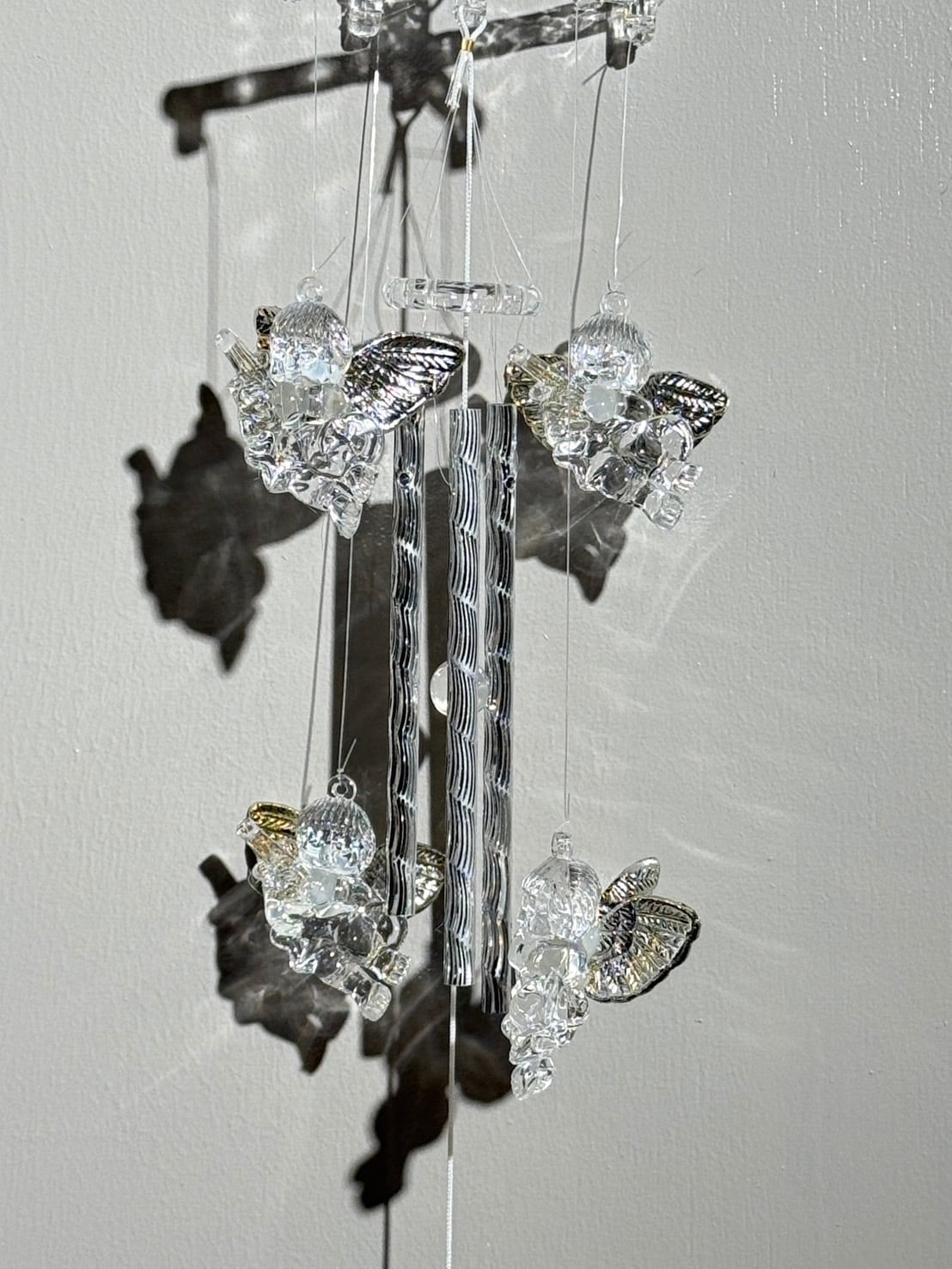 可愛らしい天使たちとともに、光を捉え、美しい音と輝きを放ち、玄関や大切な空間へ幸運の光を呼び込む素敵なエンジェルチャイムです!