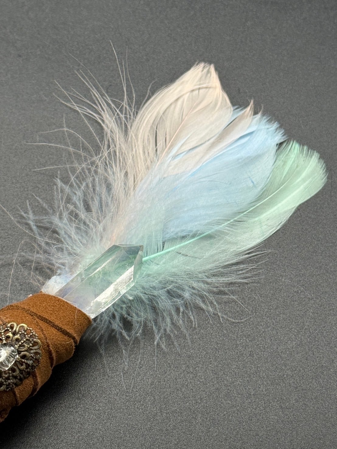 水晶をポイントに用いた、持ち手はセレナイトの不思議なほどに癒しと浄化の光とともに、真の輝きを見出し自らの道を歩む道をサポートする、世界にひとつだけのワンドです!
