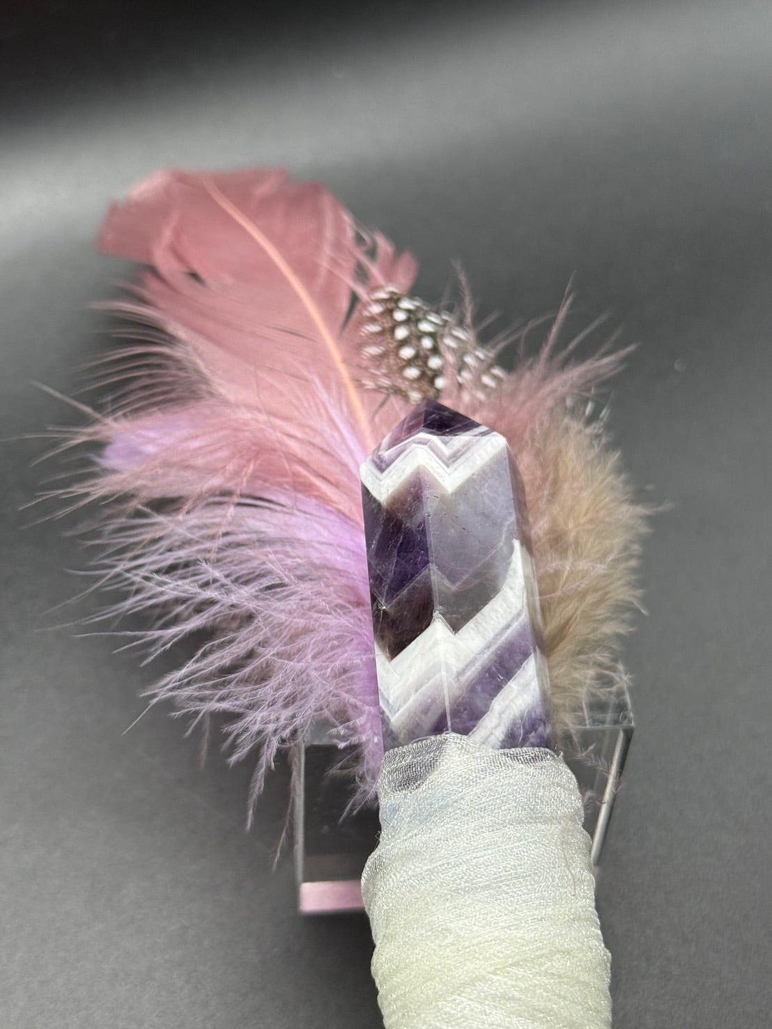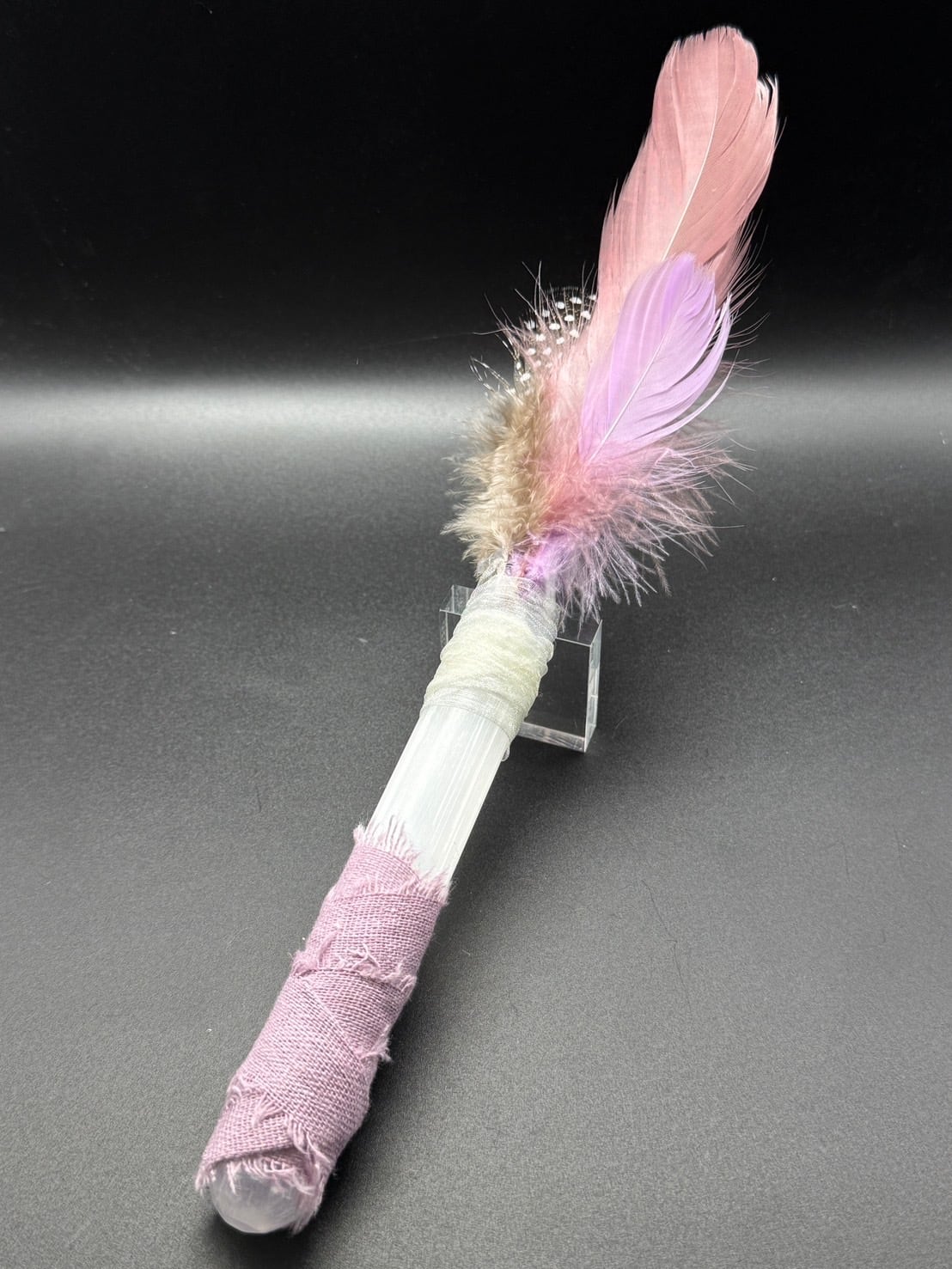 水晶をポイントに用いた、持ち手はセレナイトの不思議なほどに癒しと浄化の光とともに、真の輝きを見出し自らの道を歩む道をサポートする、世界にひとつだけのワンドです!