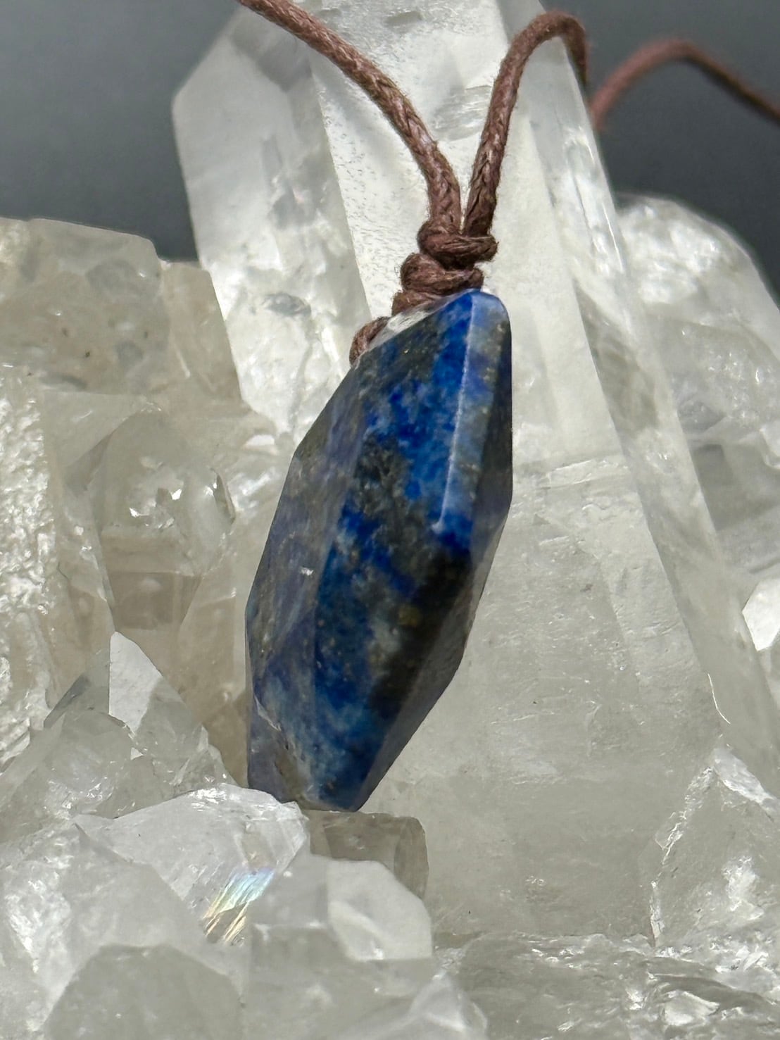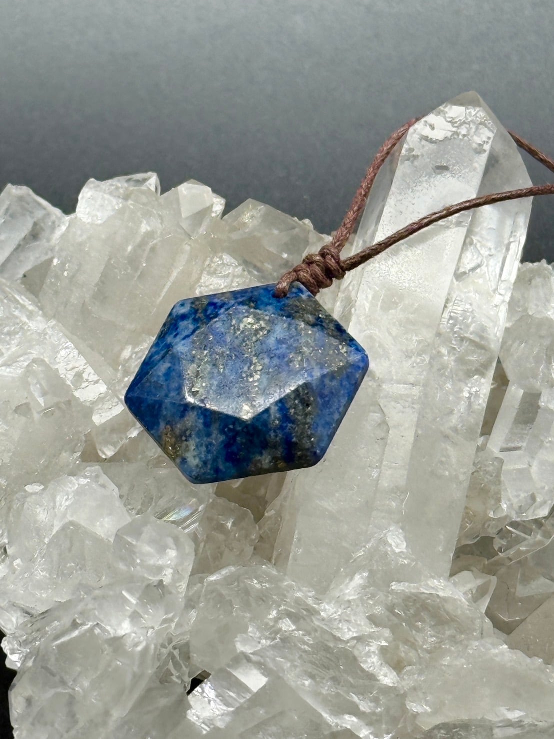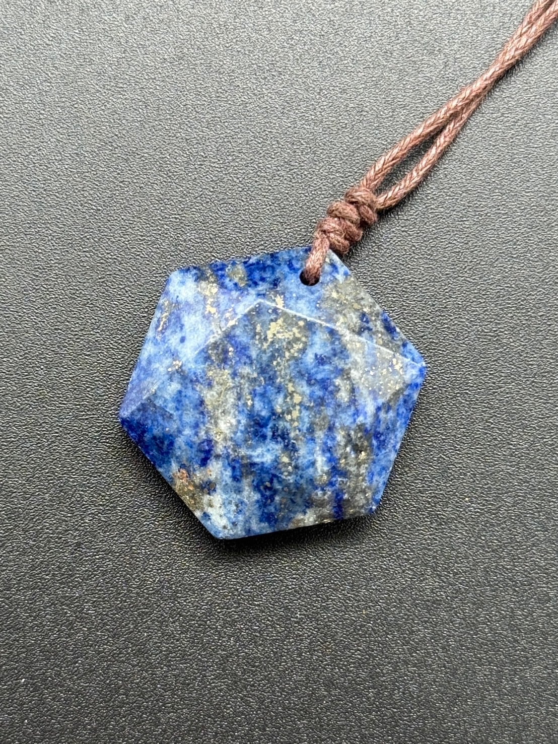 六芒星の長さの調節可能なナイロン紐つきのラピスラズリのネックレスです!