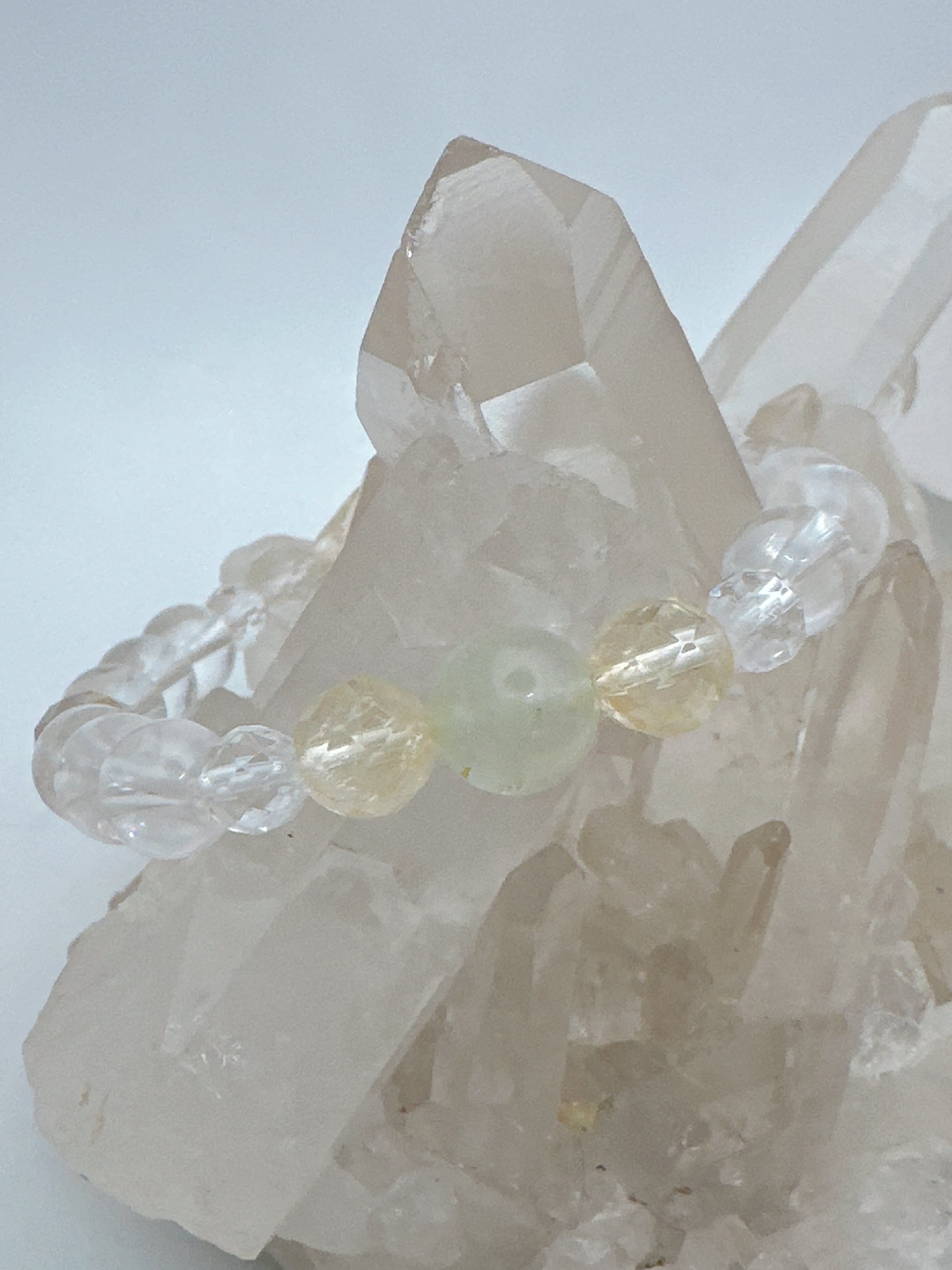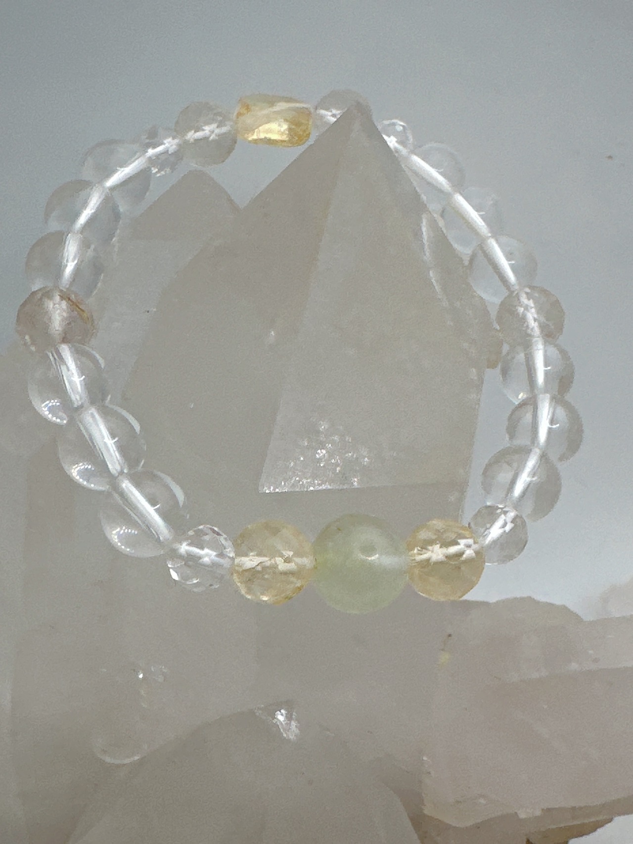 11月誕生石のトパーズとシトリンを水晶とルチルクォーツとともにバランス良く未来への輝きを実現へと導くKrehaオリジナルブレスレットです!