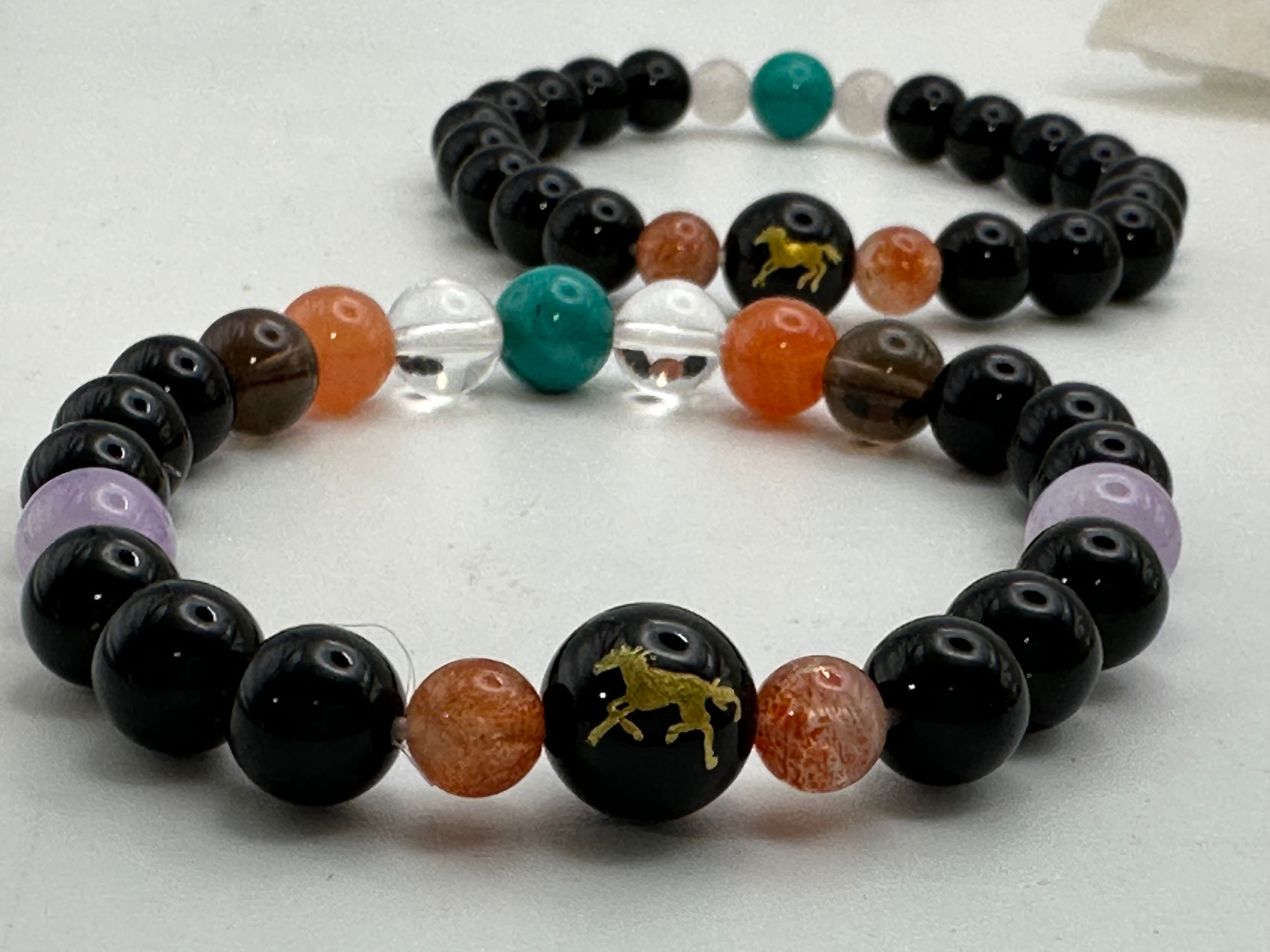ポイント部分には、金色の馬が宿る水晶、またはオニキスを使用しています。