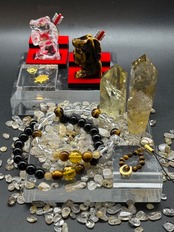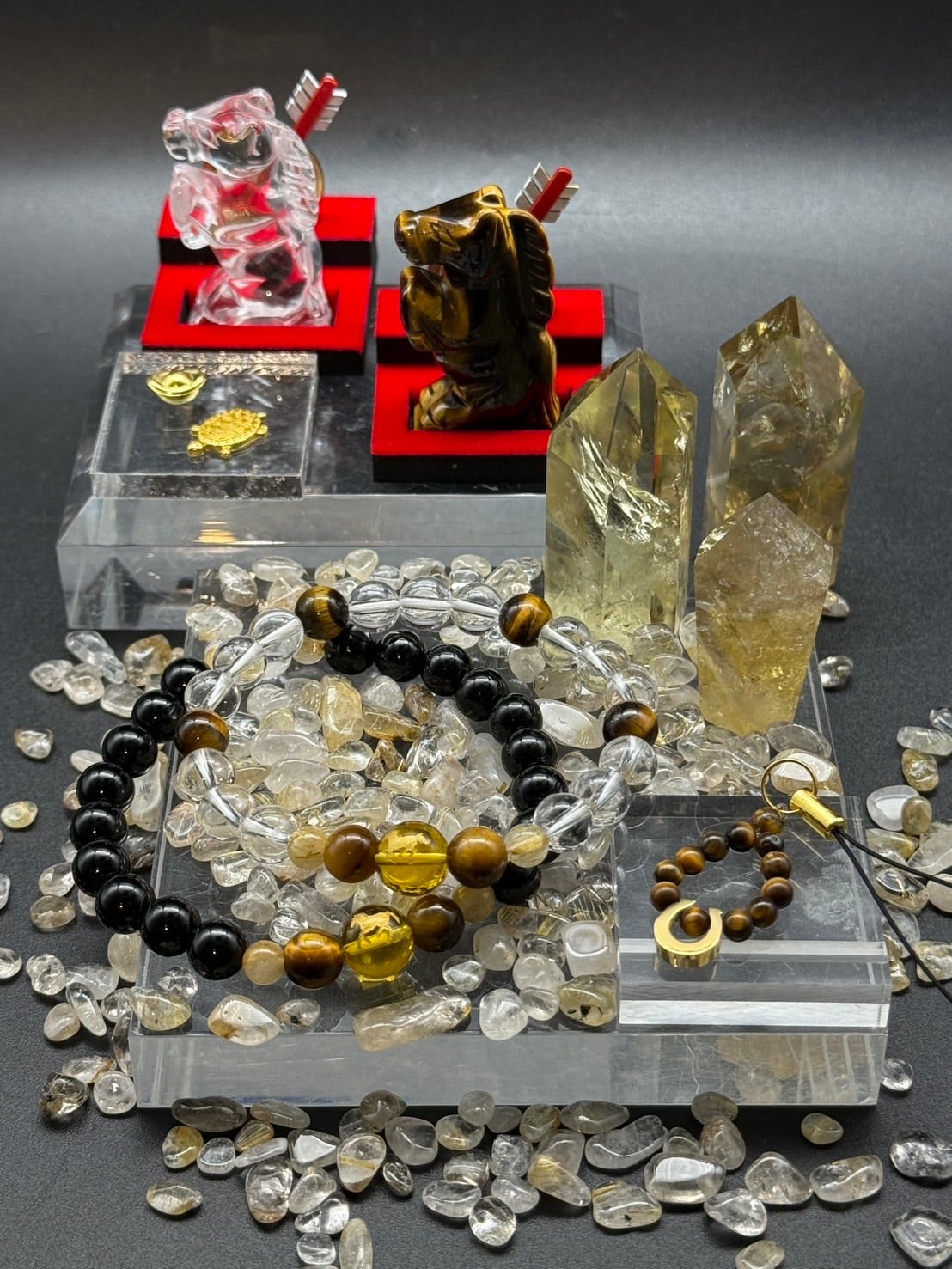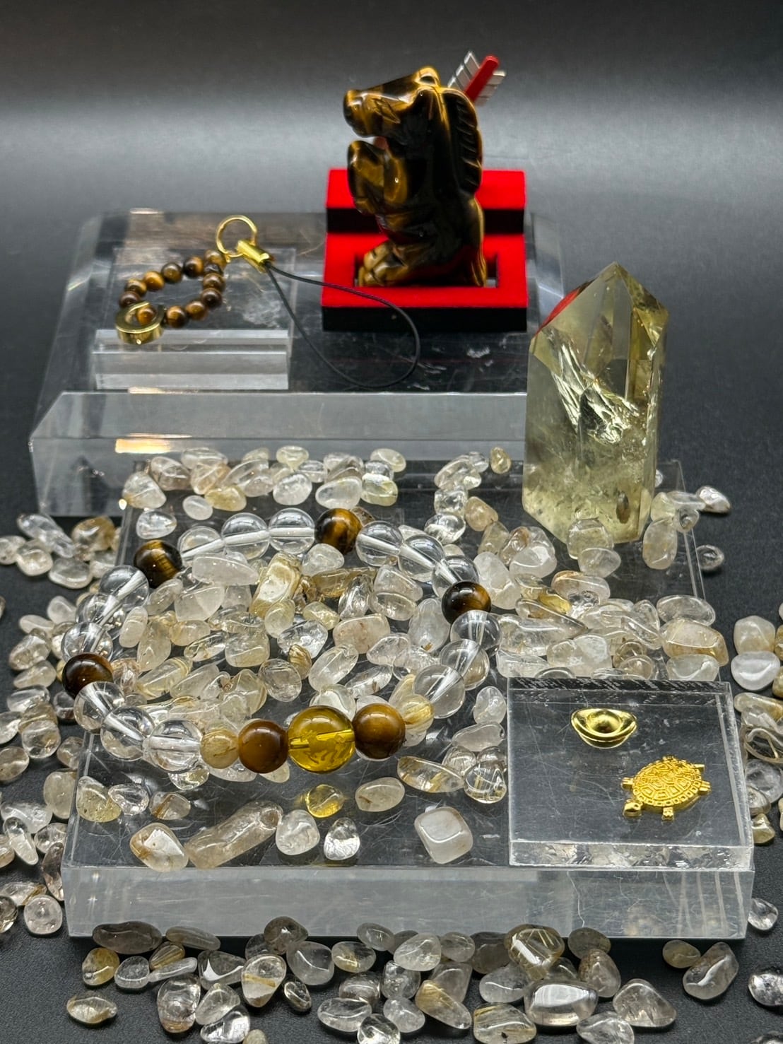 干支の「午」彫りのシトリンがポイントとなったKrehaオリジナルブレスレットをはじめ、八地球の無垢なる光と繋がる地の八大龍王の光宿す清水によって浄め輝きを宿した六角柱、