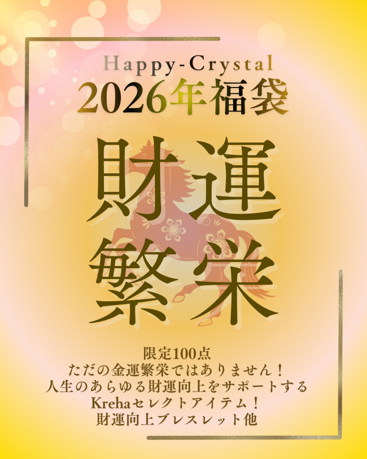 ※こちらの福袋は、ブレスレットのポイントに明るい黄色のシトリンの干支の「うま彫り」の粒がポイントとして、Krehaが財運向上の輝きを宿したオリジナルブレスレットが入っています。ご希望のサイズをお選びください!