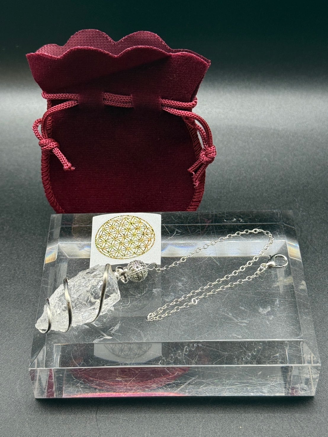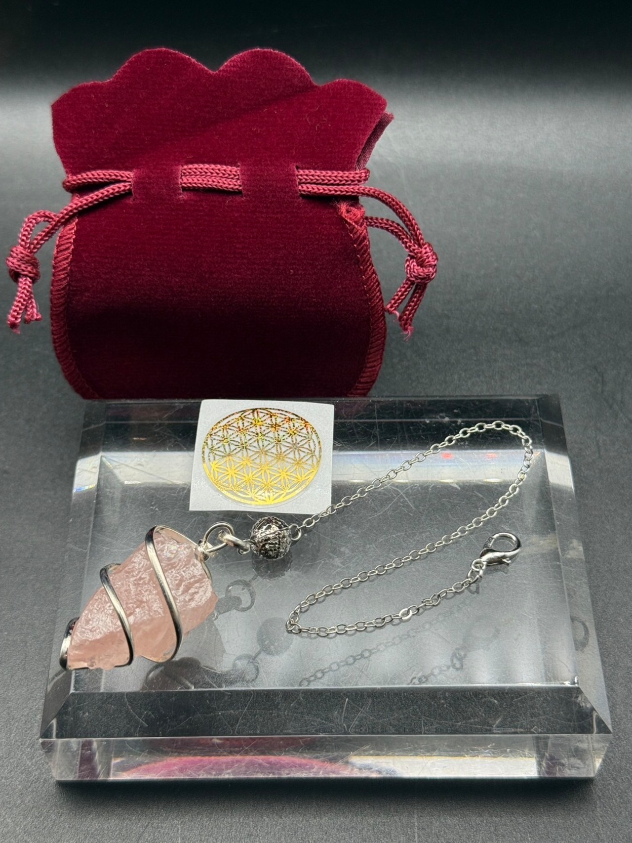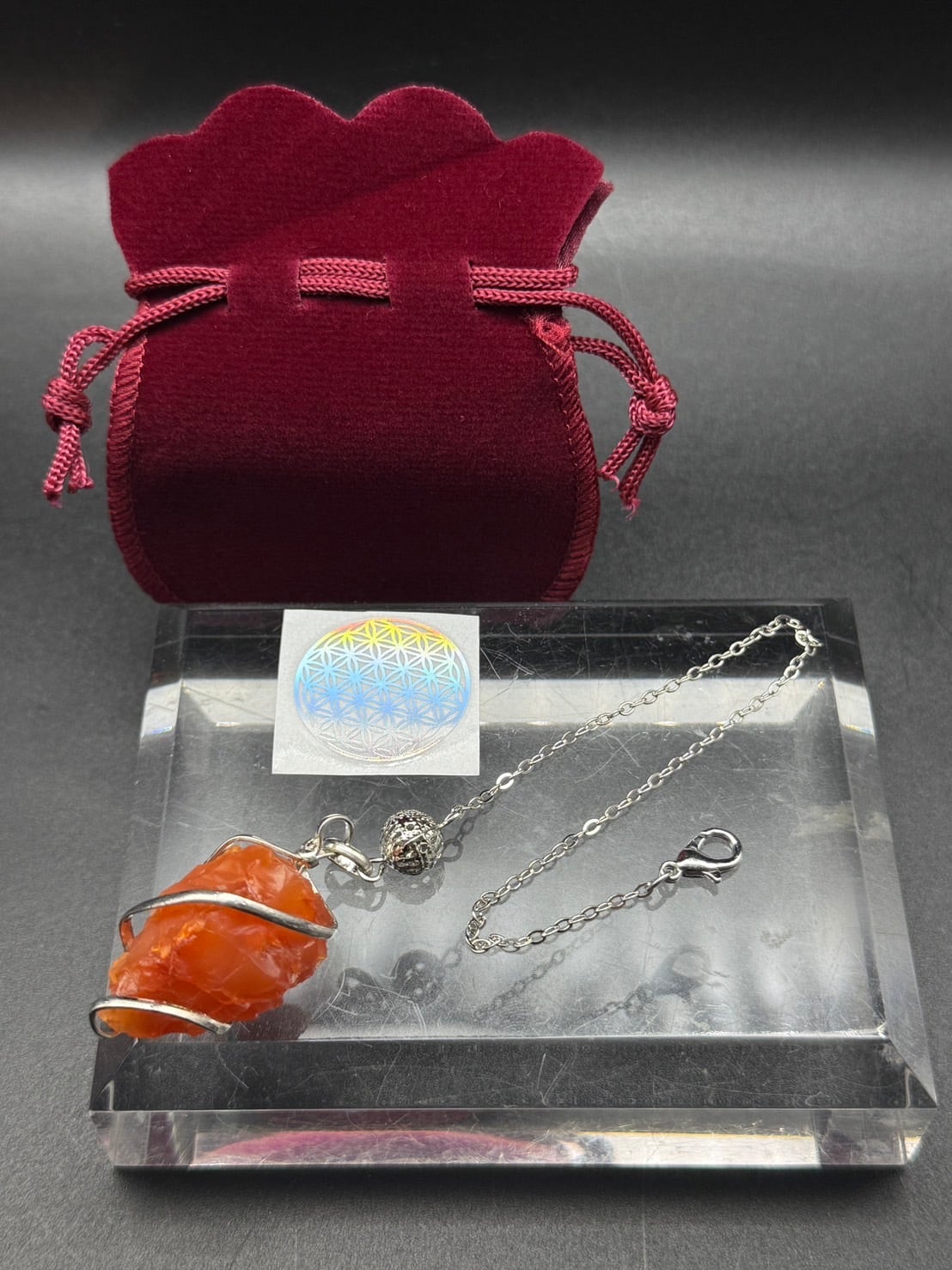 1 ペンデュラム(水晶またはローズクォーツまたはカーネリアンからお選びください。)