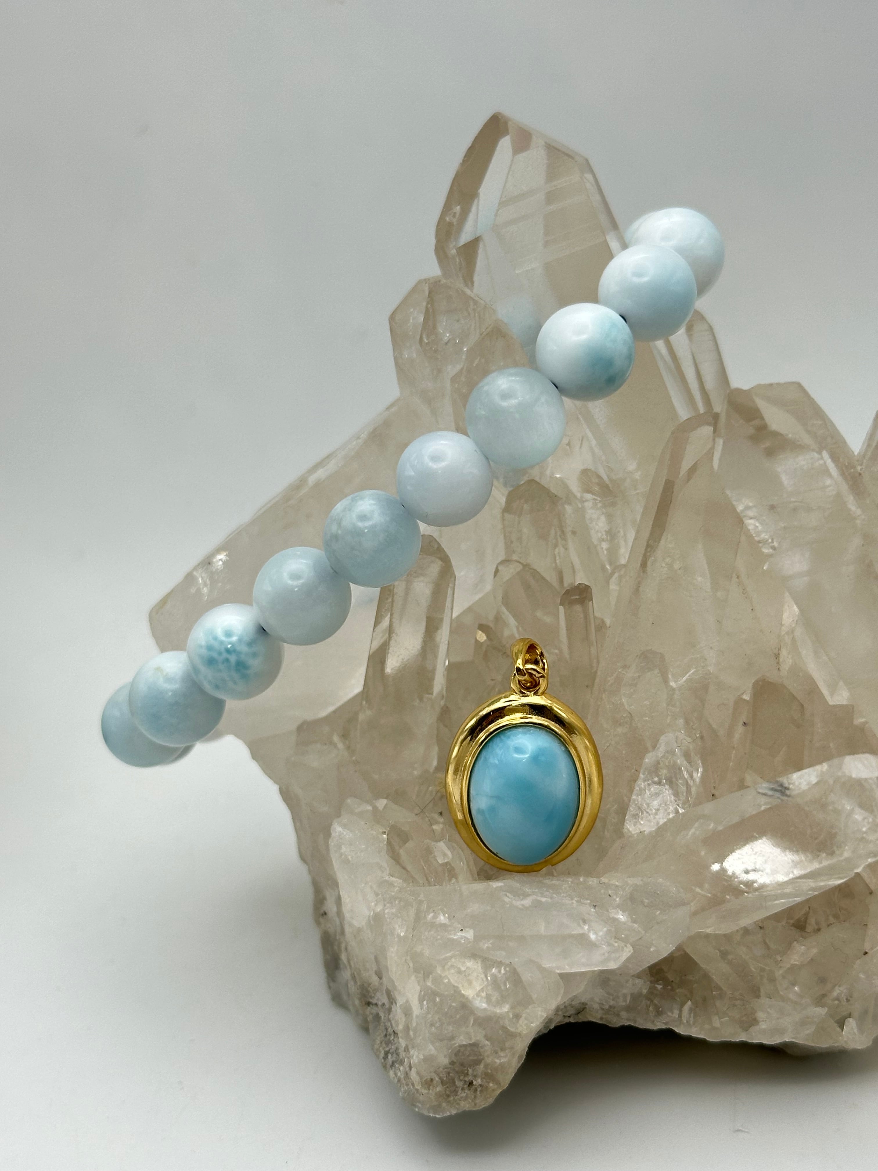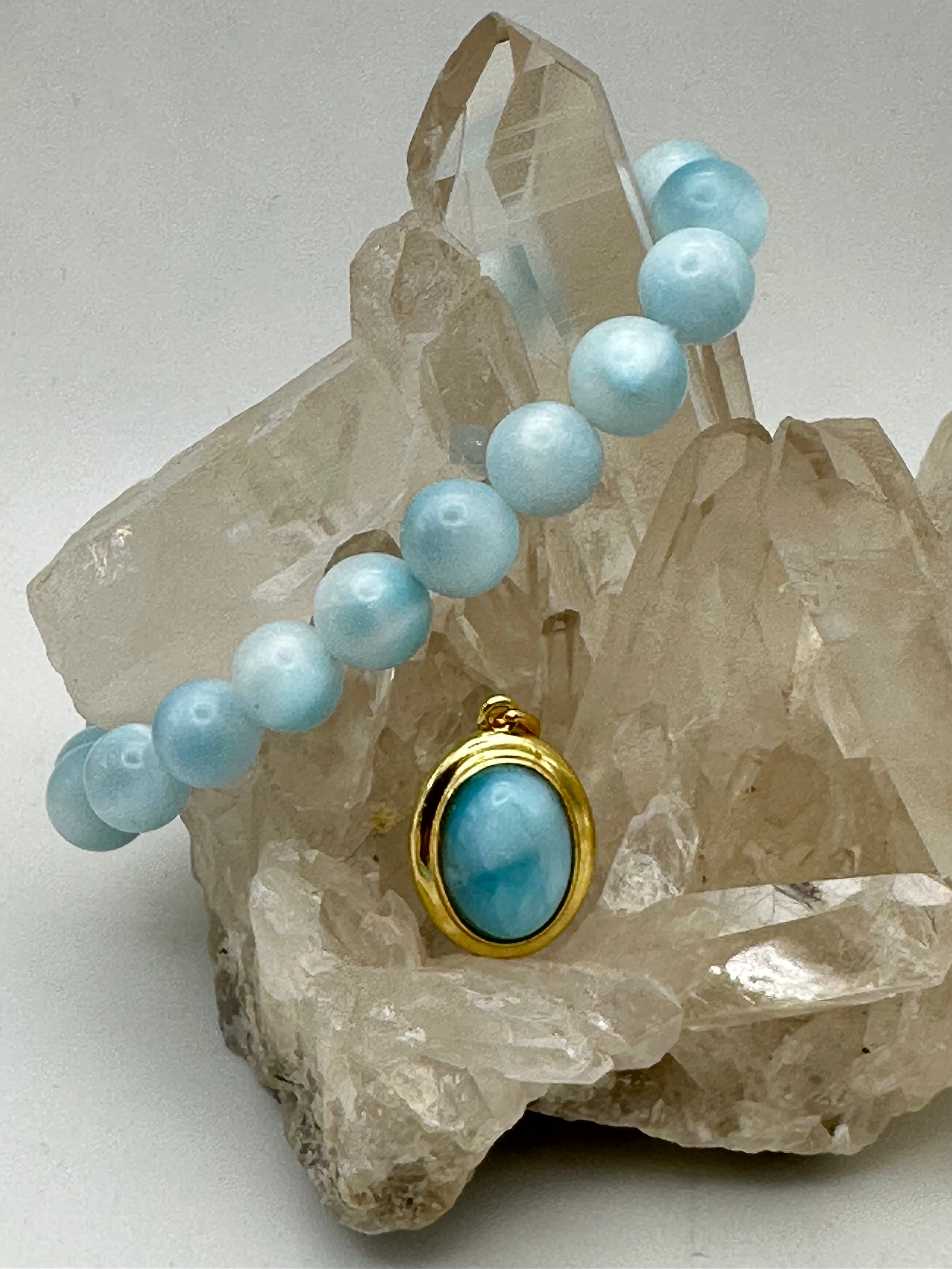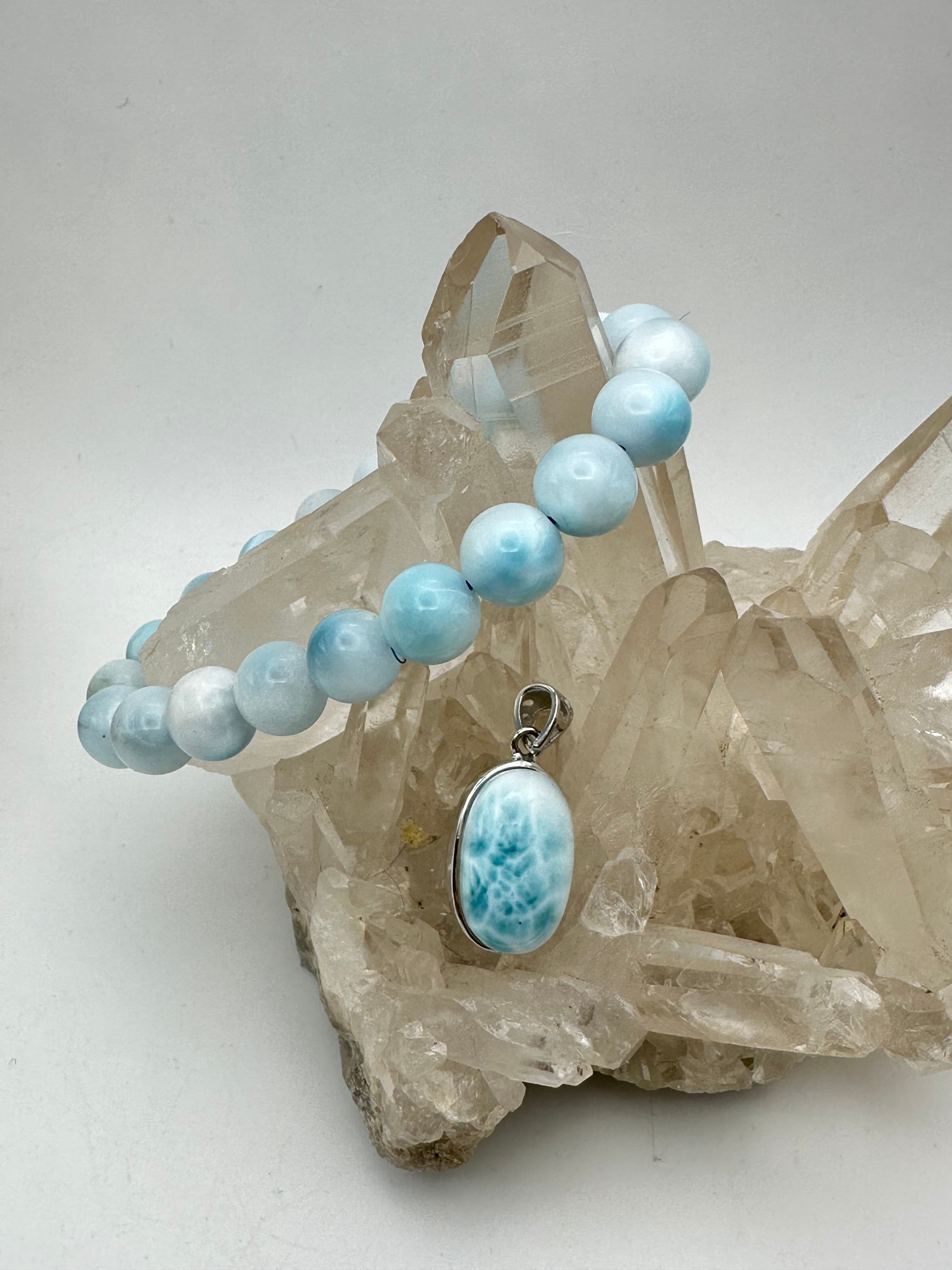 高品質なアイスラリマー(ペクトライト)のブレスレットと、ペンダントトップのセットです!