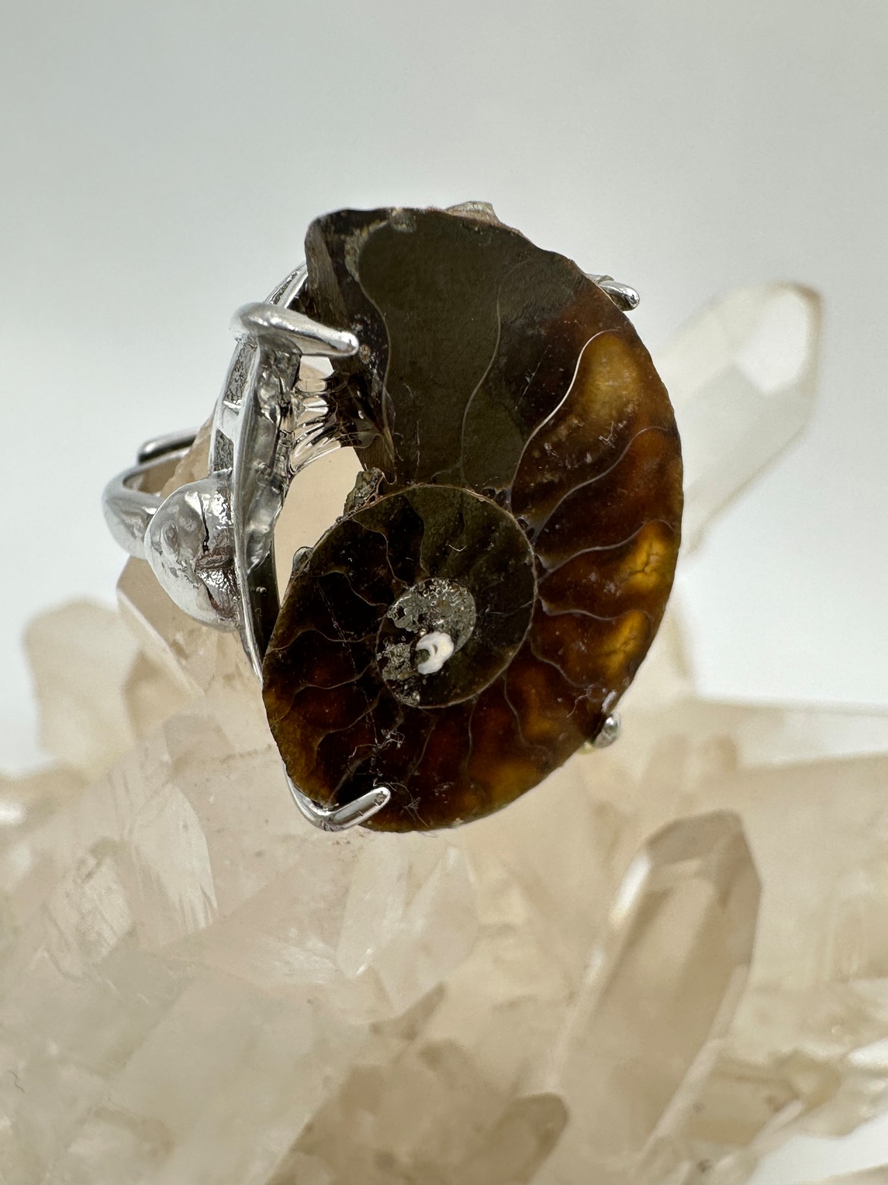かなり珍しい「アンモナイト」の化石のフリーサイズの指輪です!