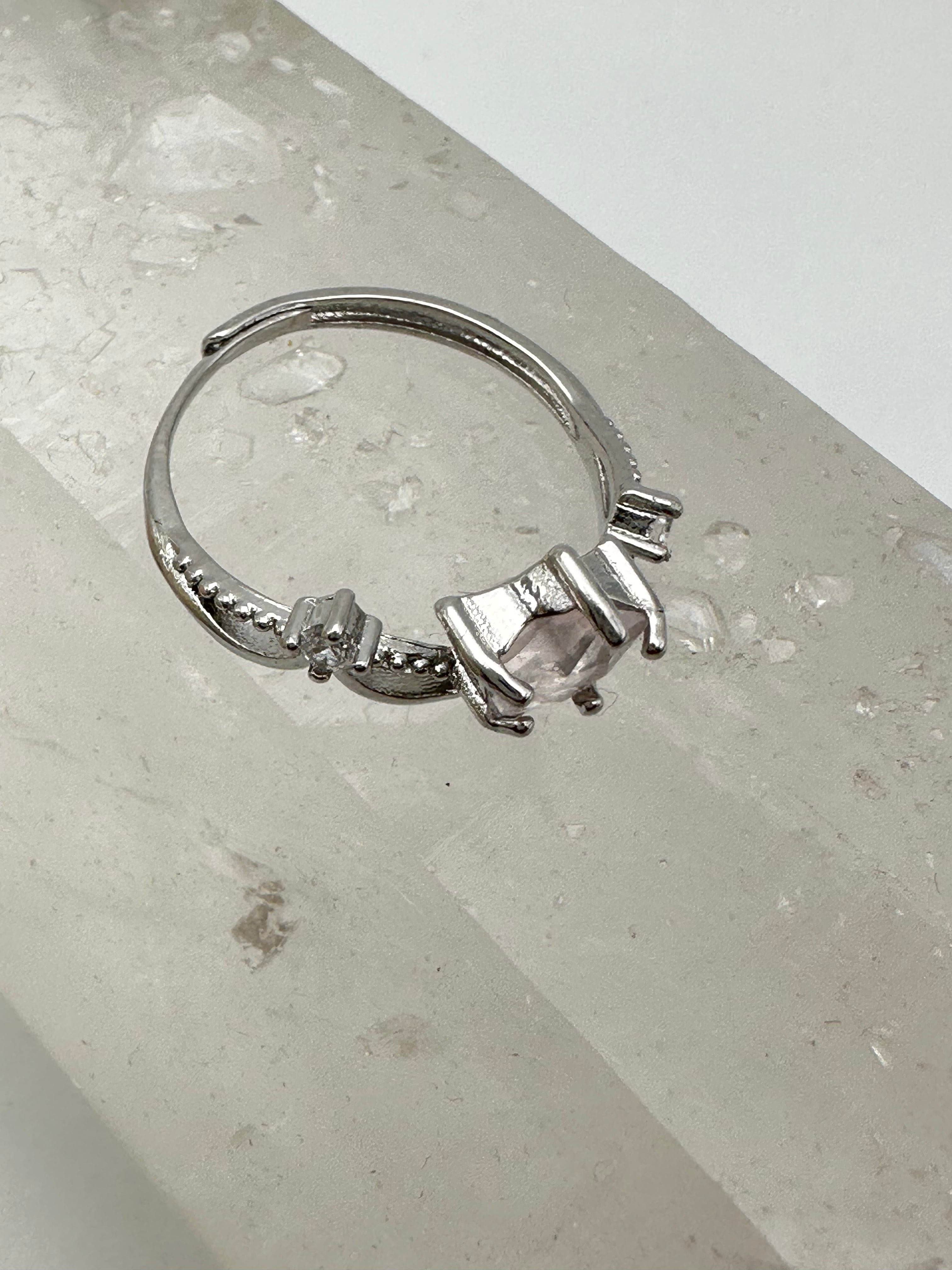 透明度の高い、薄いピンク色が上品な色合いでありながら、可愛らしさに溢れているデザインのリングです!