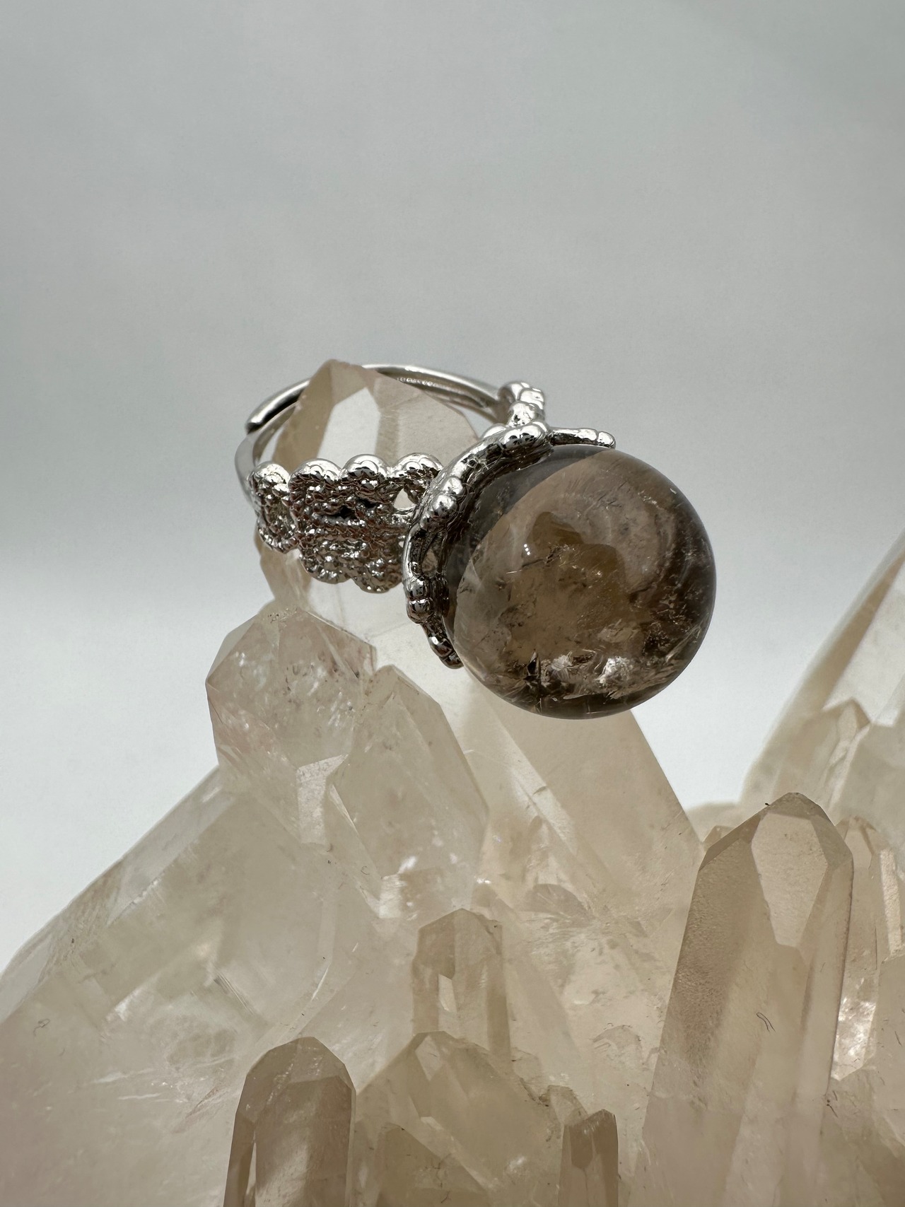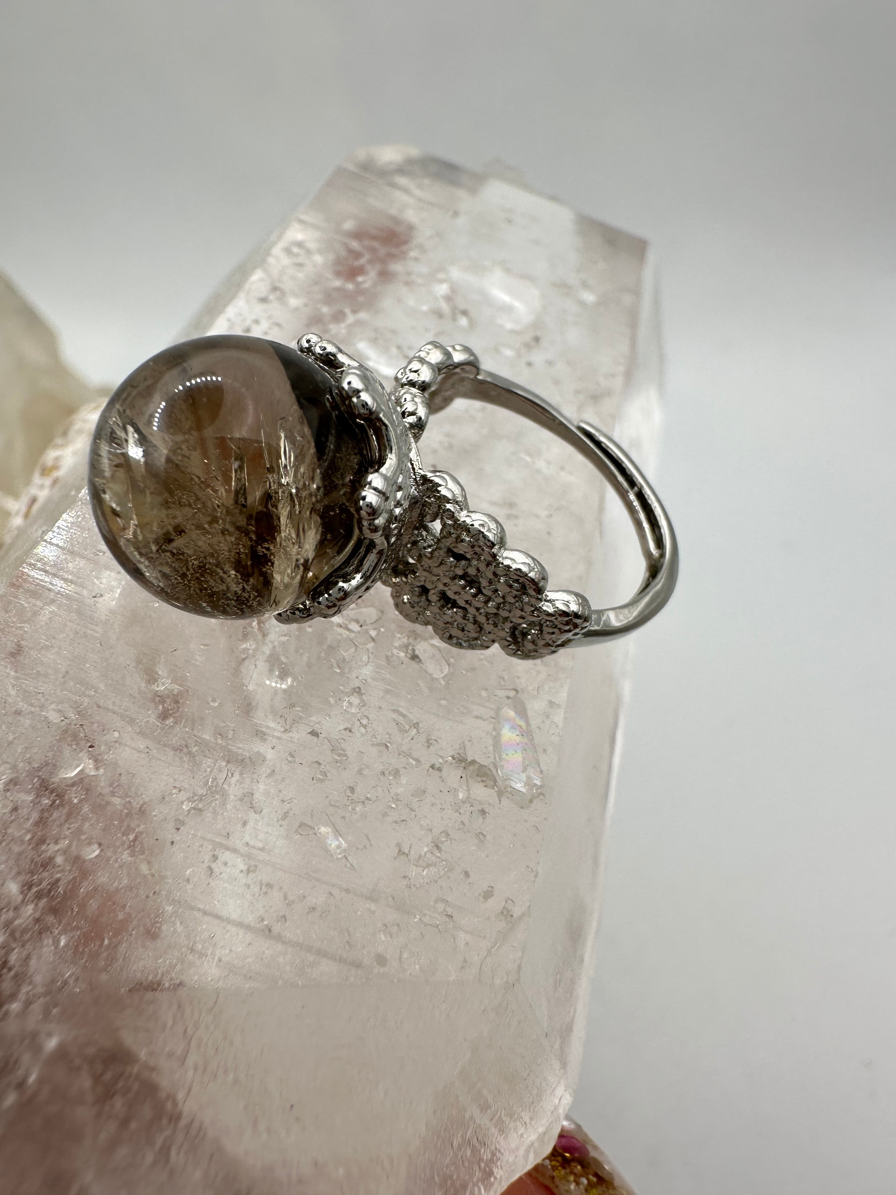 1点もの!【スモーキークォーツ・レインボークラック・フリーサイズリング①】RCrSmF-5191202