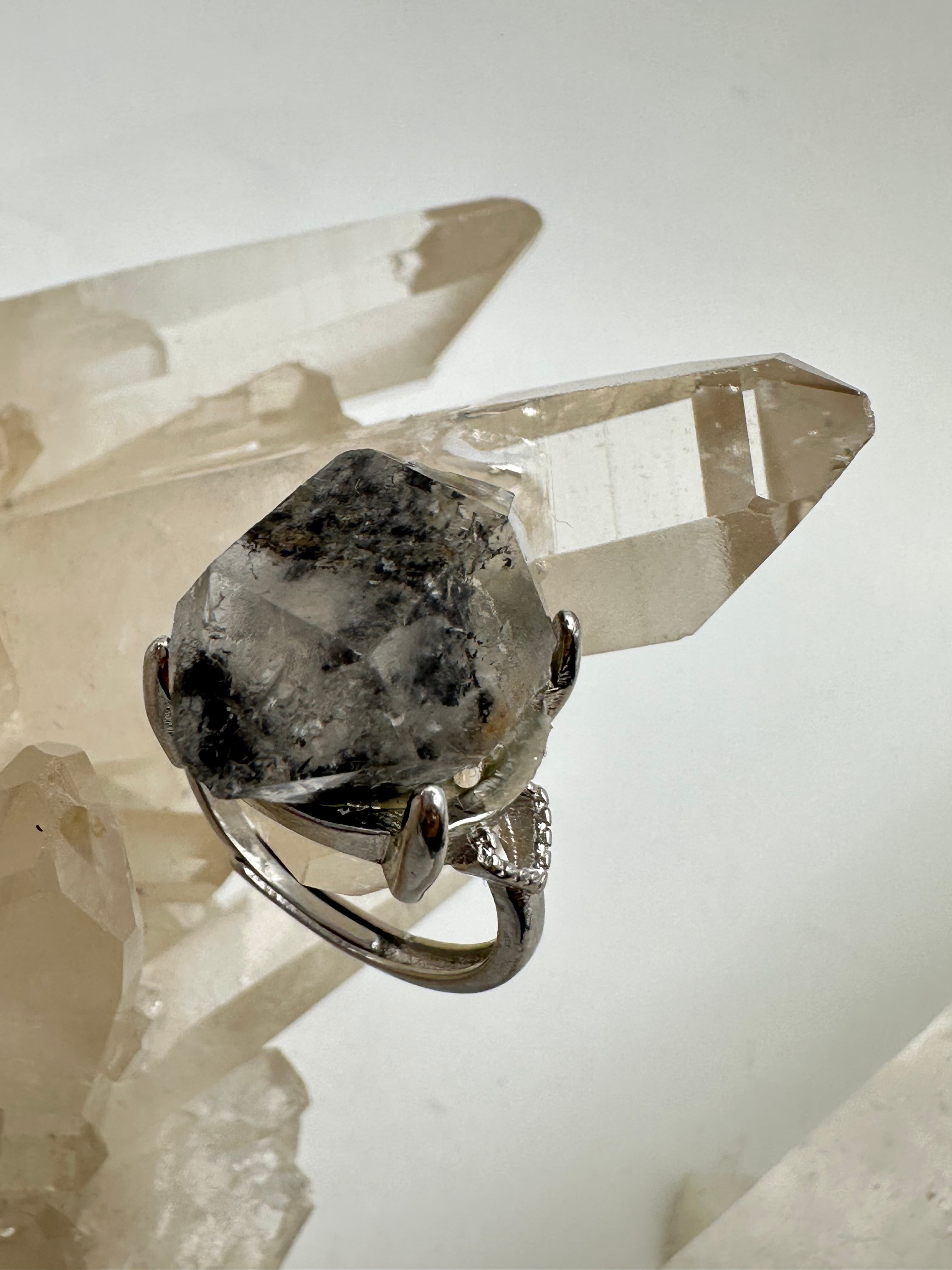 原石の両端が尖った水晶(ダブルターミネーテッド)がそのまま、指輪になった原石の魅力もパワーも純粋にお楽しみいただけます。