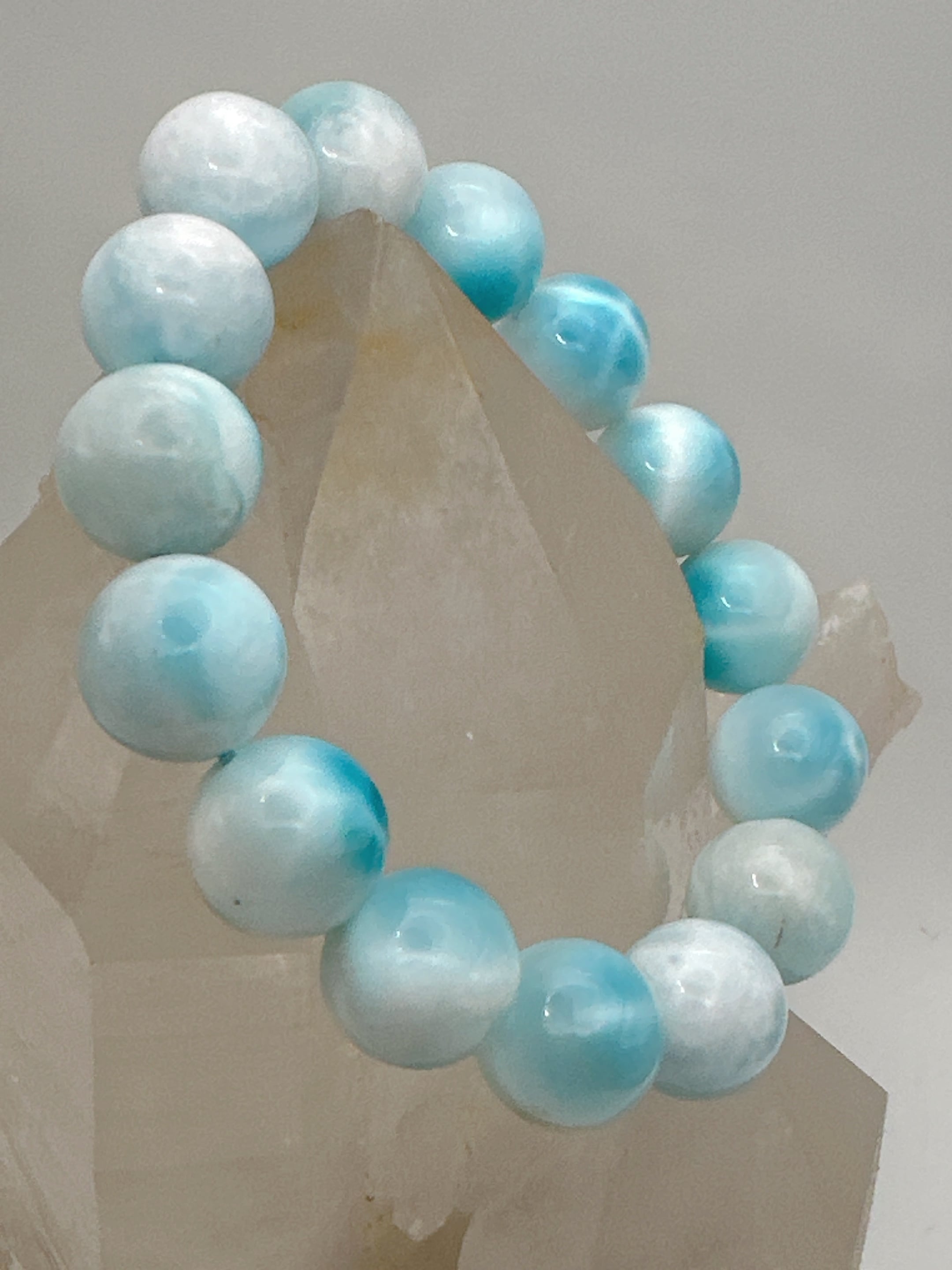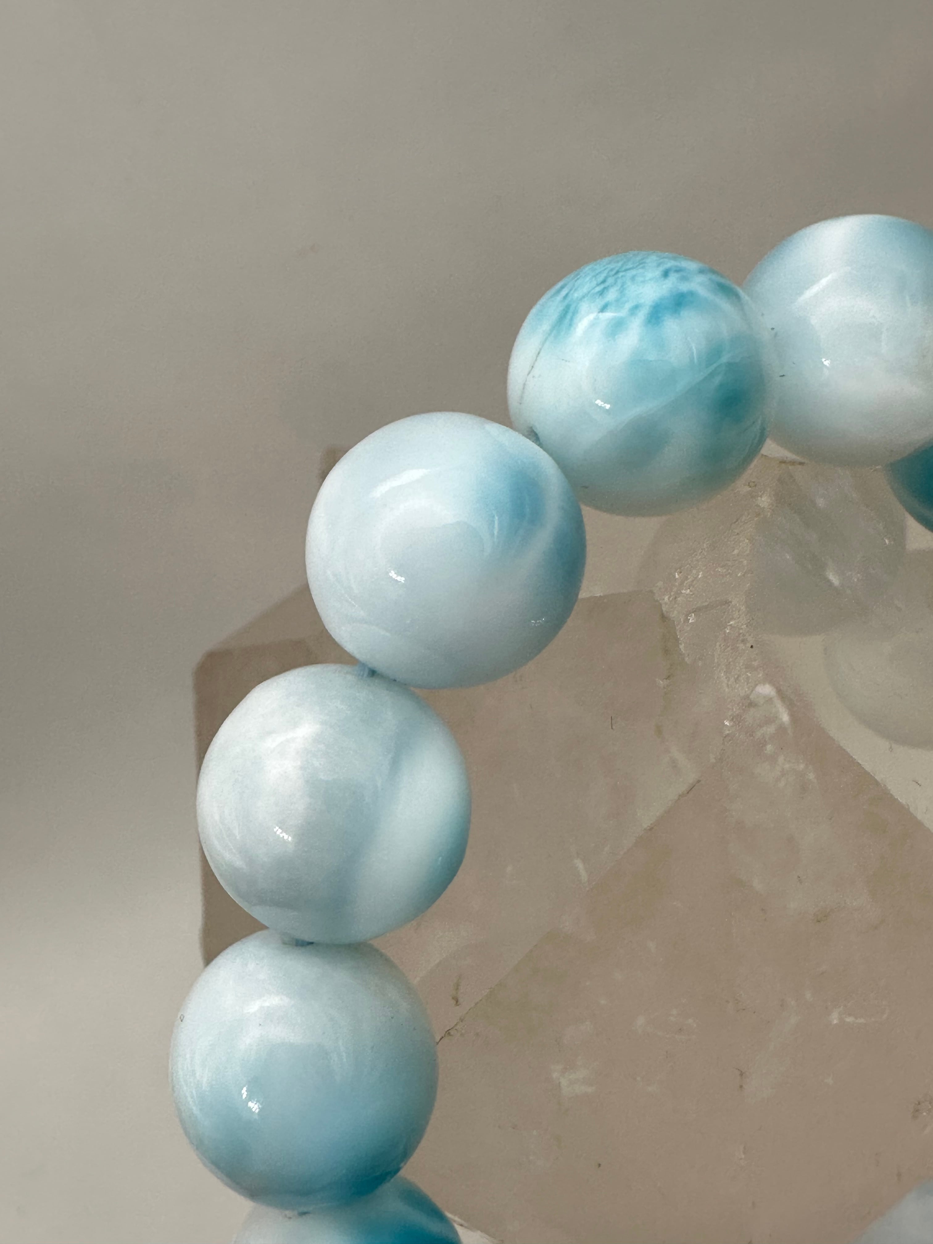 高品質なアイスラリマー(ペクトライト)のブレスレットと、二つと同じものがない美しいラリマー勾玉のセットです!