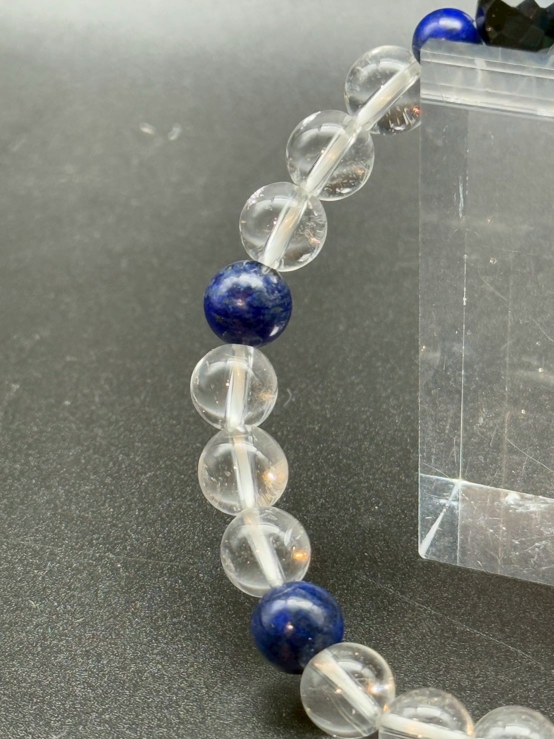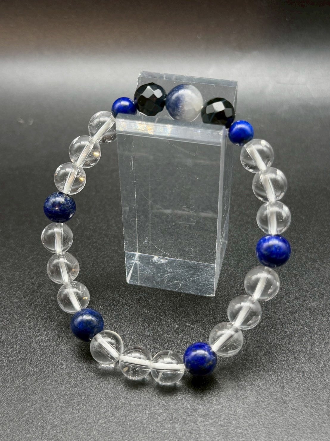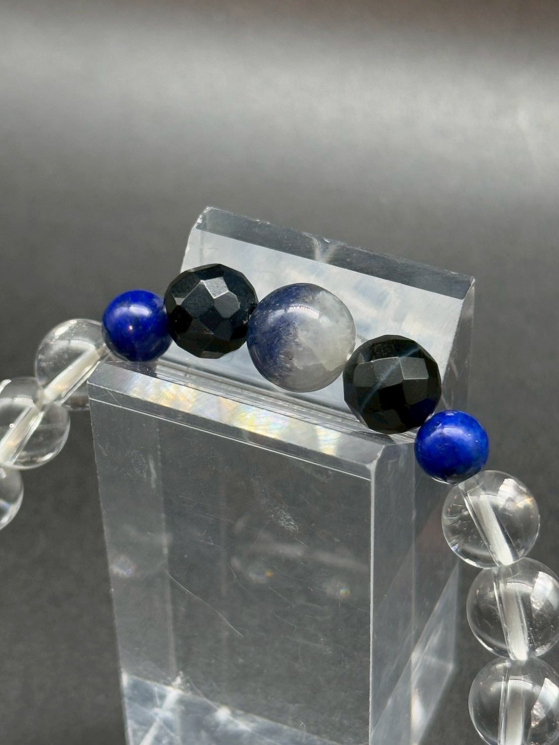 ブレスレット(ラピスラズリ、デュモルチェライト・イン・クォーツ、ブルータイガーアイ、水晶)