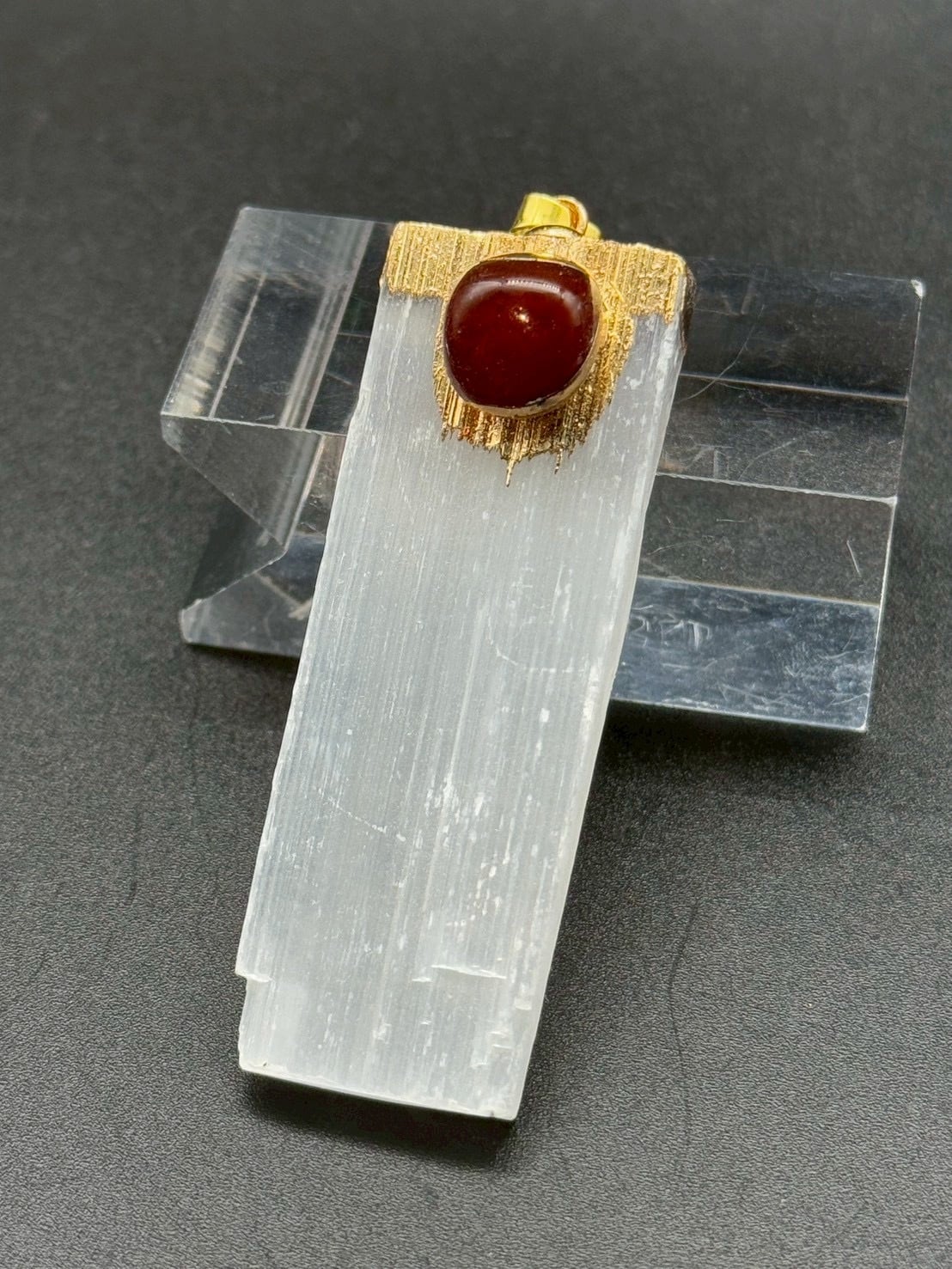 さらに、原石セレナイトに各種パワーストーンのついたペンダントトップは、長めの紐にかけるとおしゃれです。ですが、セレナイトは、水分や油分、衝撃に弱いため、ぶつかりやすい方には、お部屋や玄関などにぶら下げたり置くことで、開運&浄化アイテムになります。