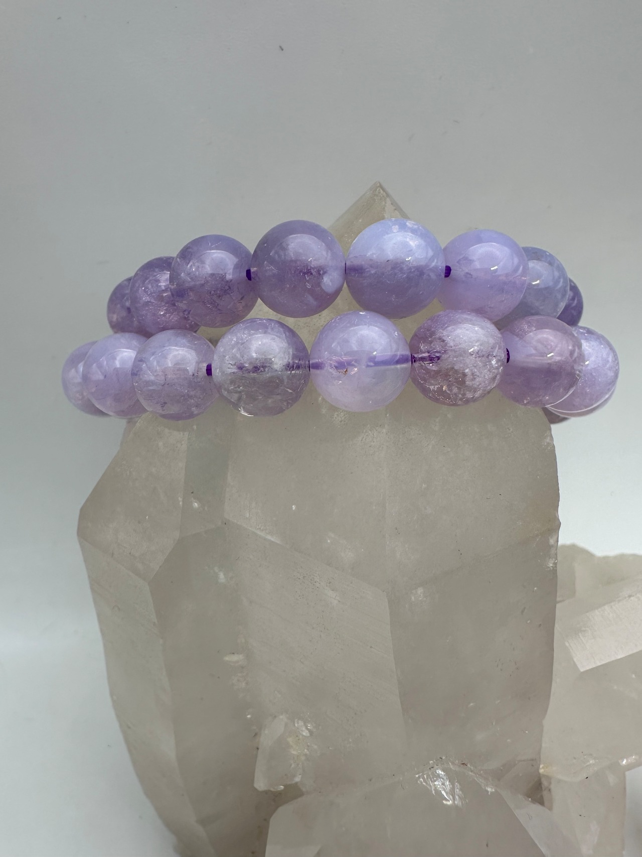 見た目は、優しい色合いの薄紫色ですが、手に取ると、静かな大地の底で、非常に長い年月をかけて生成された過程が宿るアメジストが、この時代に生きる人類のために、人間に「やすらぎ」と「癒し」そして「穏やかに生きる心」を見失わぬよう、手を加えることで誕生させた、希少な粒です。