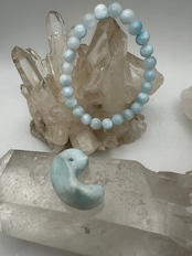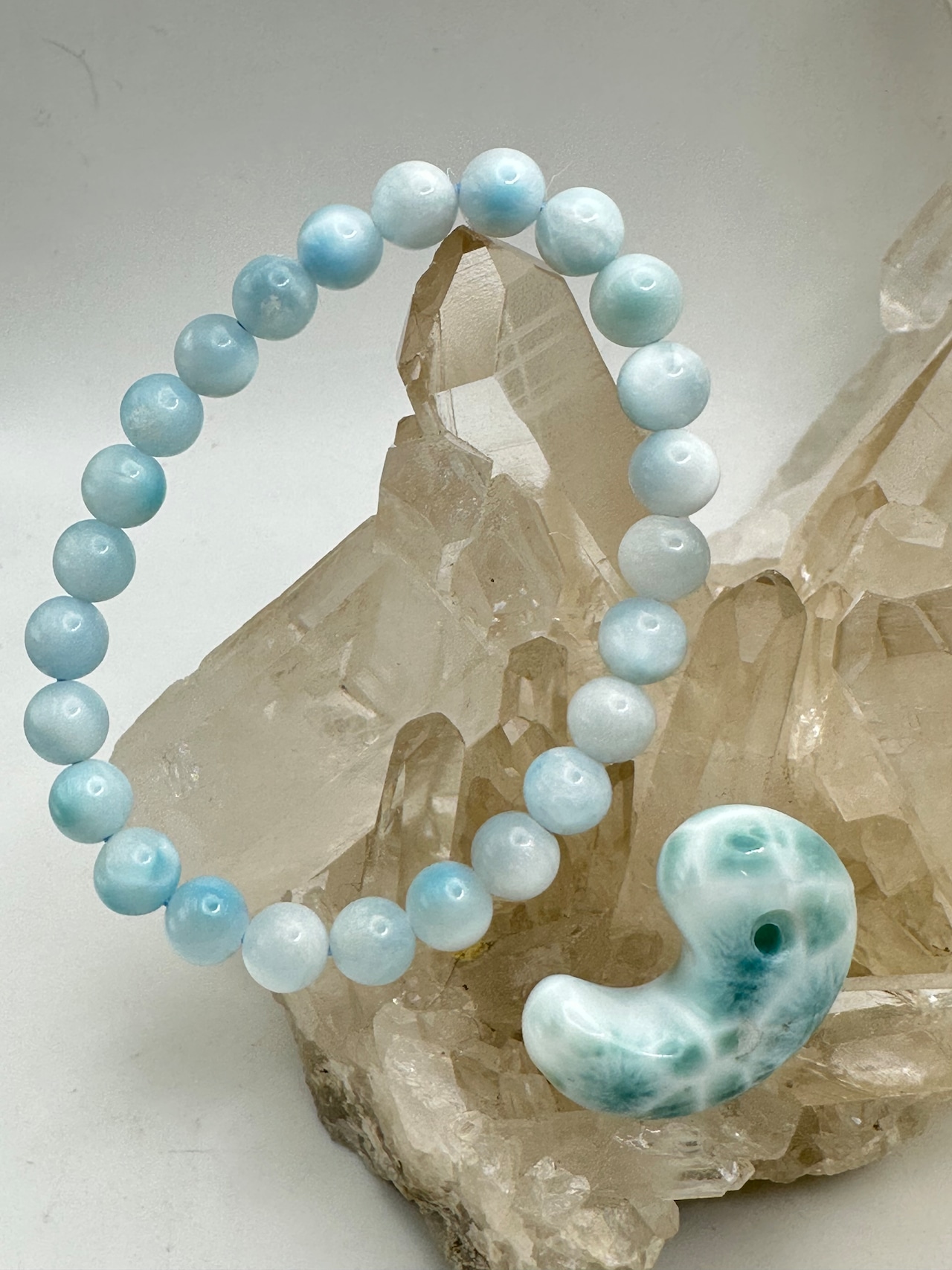 世界の3大ヒーリングストーンのひとつである【ラリマー(ペクトライト)】のなかでも、アイスラリマーと呼ばれる薄く澄んだ水色が美しい、ブレスレットと勾玉のセットです!