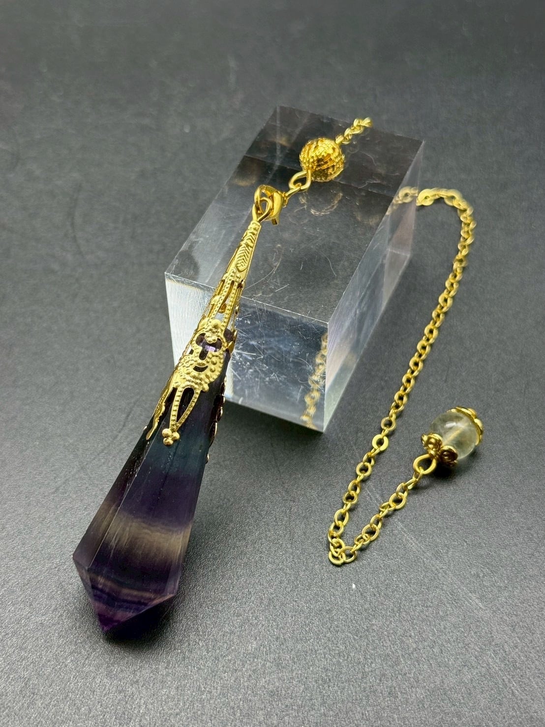 非常に美しい透明度の高品質の【フローライト】のペンデュラムです!