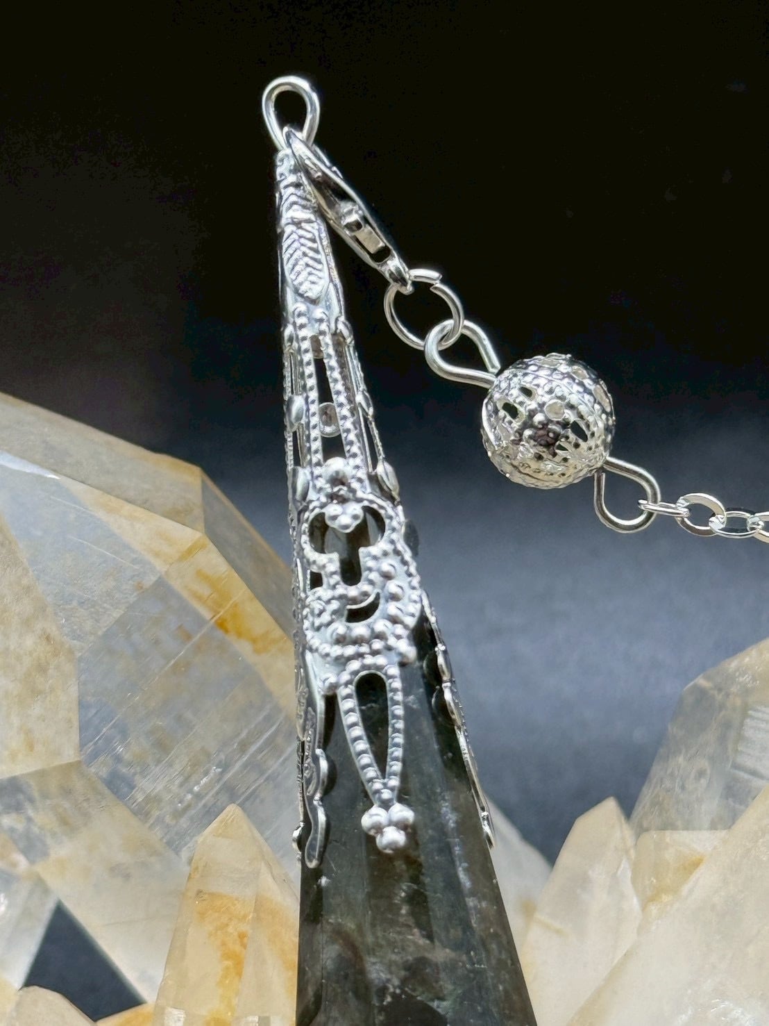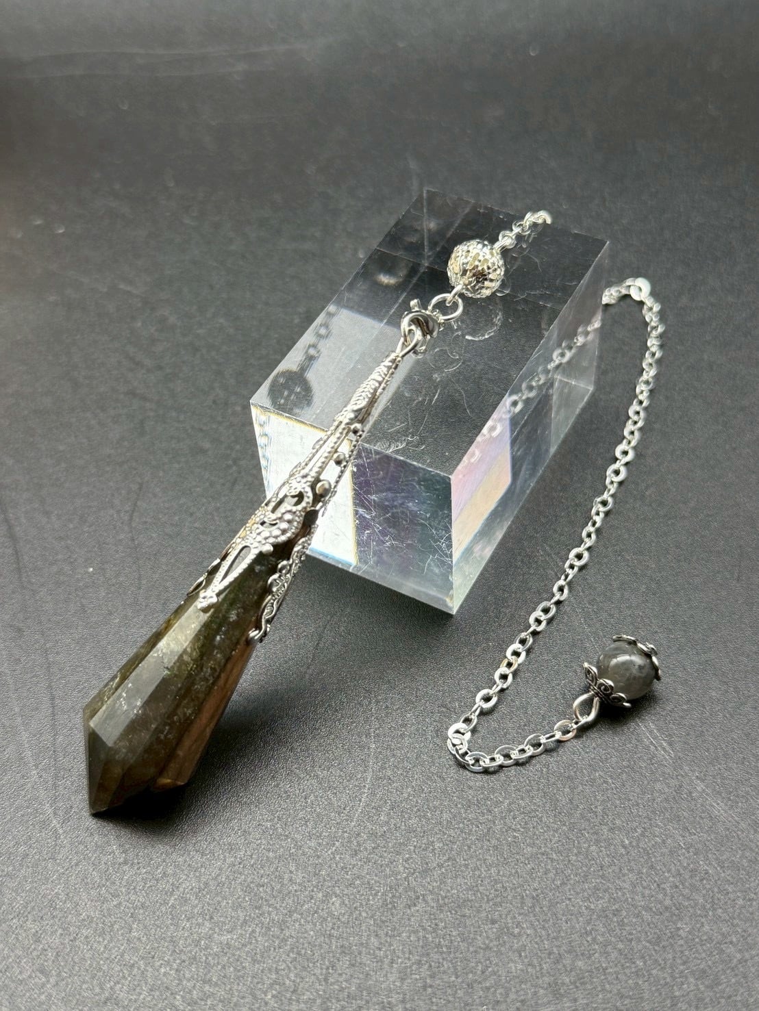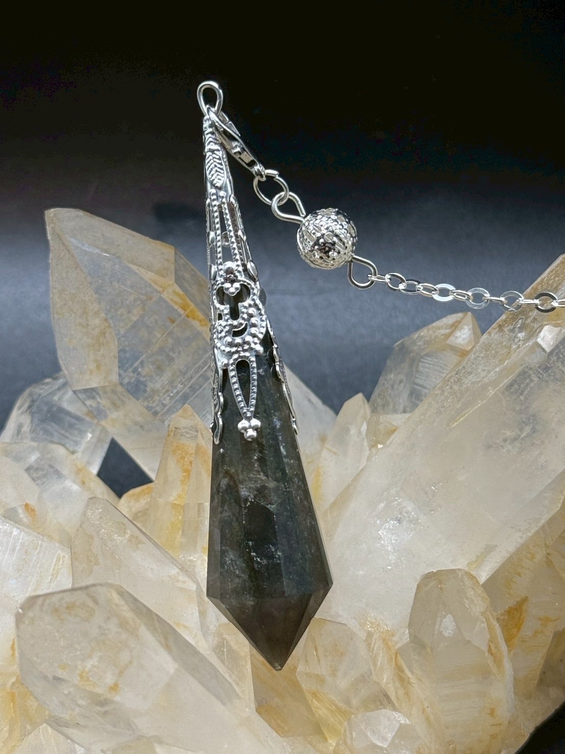 非常に美しい透明度の高品質の【ラブラドライト】のペンデュラムです!