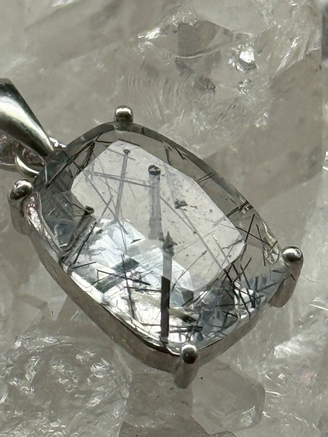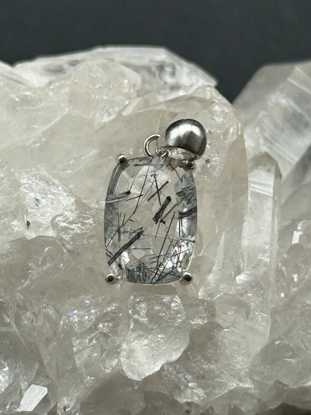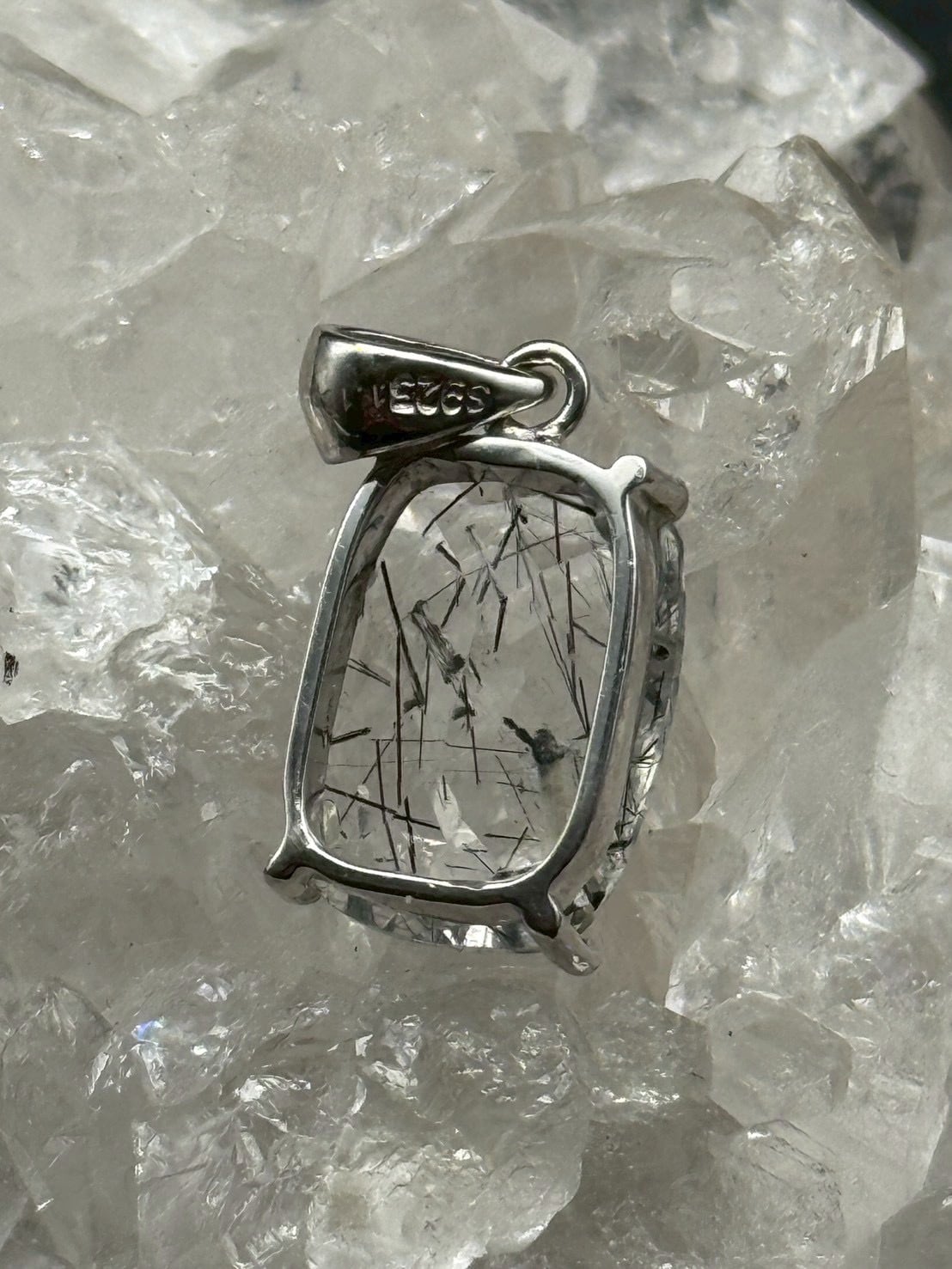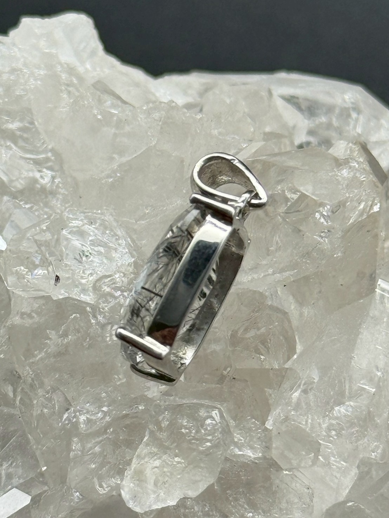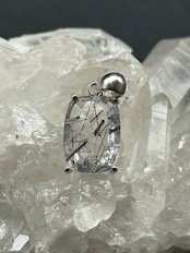 一点ものの美しい透明度の水晶にブラックトルマリンのルチル(線状鉱物)が内包された、シルバー925仕上げの「トルマリン・イン・クォーツ」のペンダントトップです!