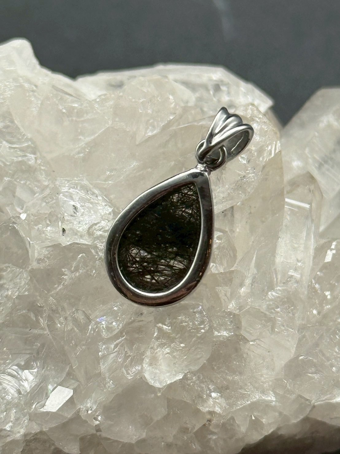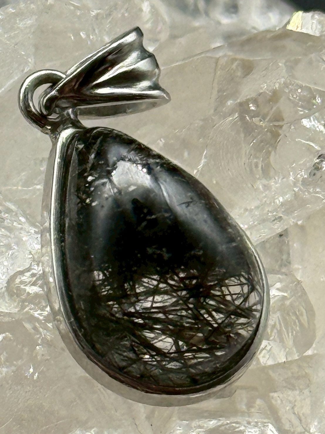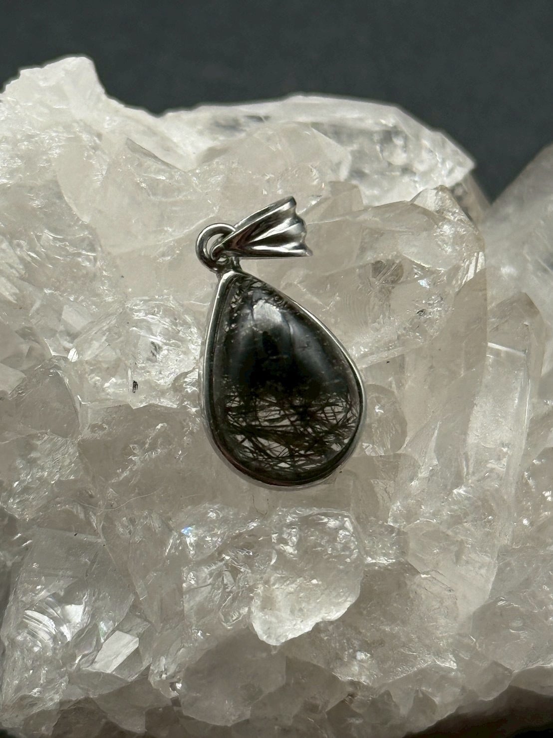 一点ものの美しい透明度の水晶にブラックトルマリンのルチル(線状鉱物)が内包された、シルバー925仕上げの「トルマリン・イン・クォーツ」のペンダントトップです!