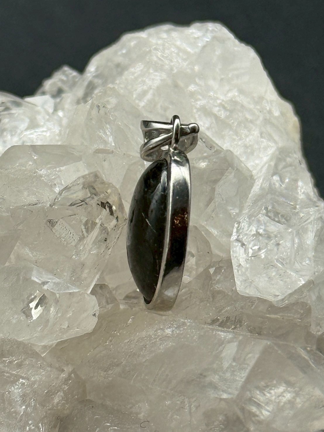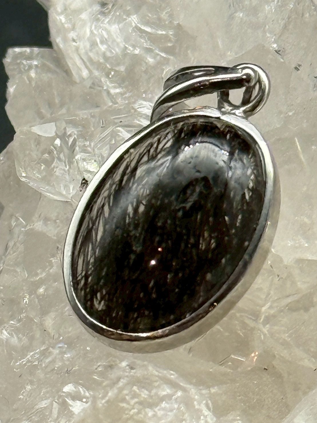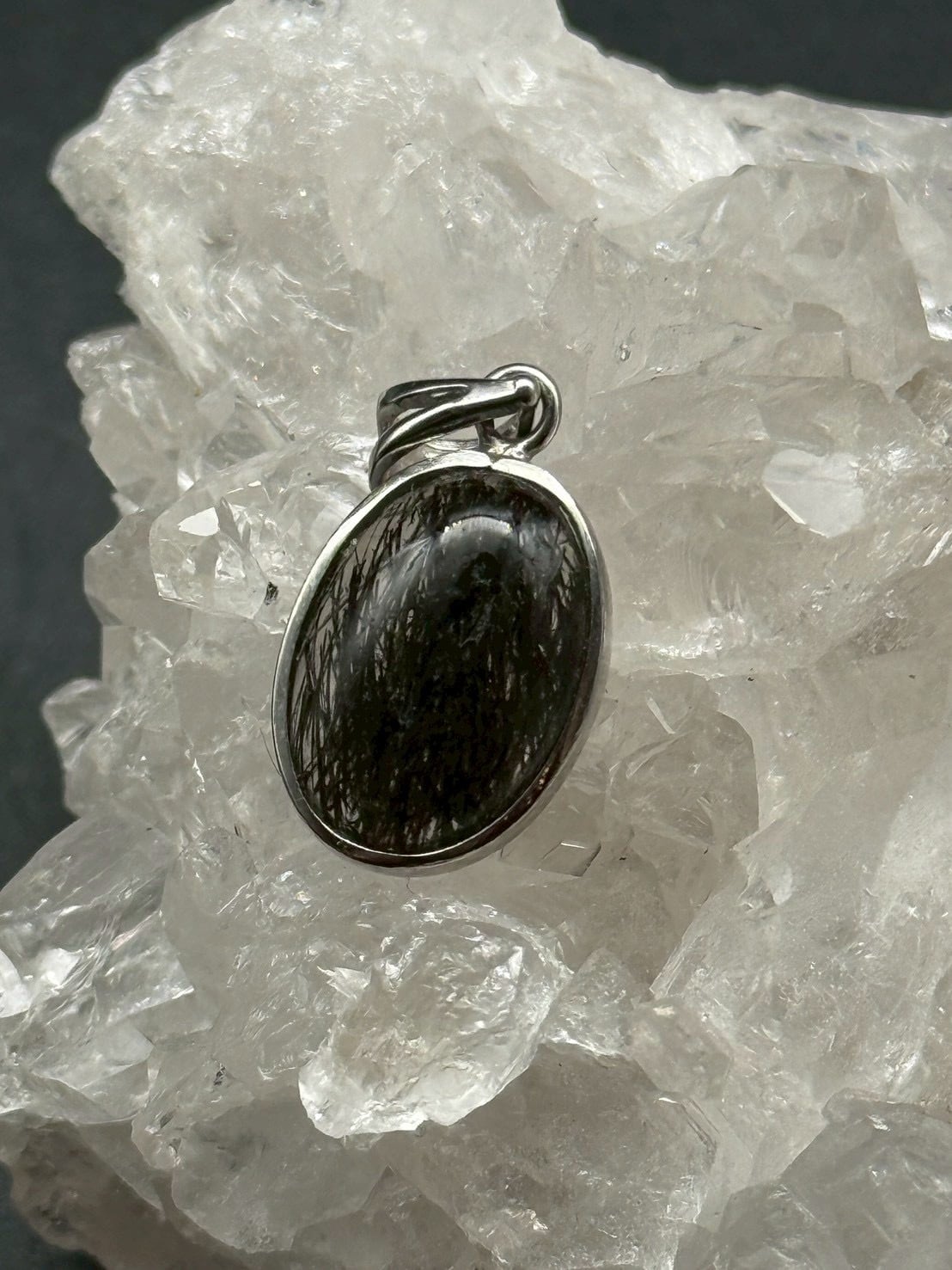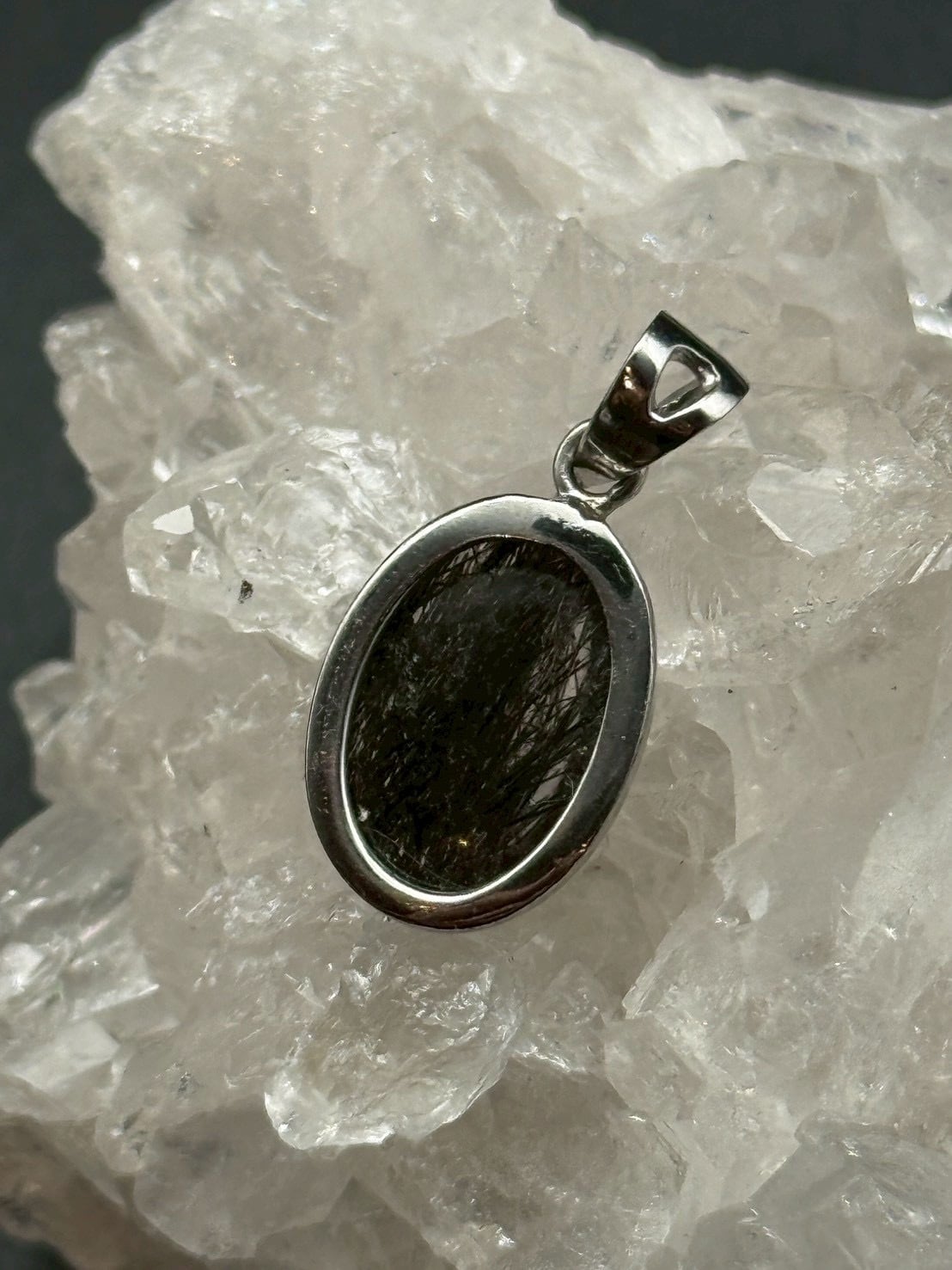一点ものの美しい透明度の水晶にブラックトルマリンのルチル(線状鉱物)が内包された、シルバー925仕上げの「トルマリン・イン・クォーツ」のペンダントトップです!