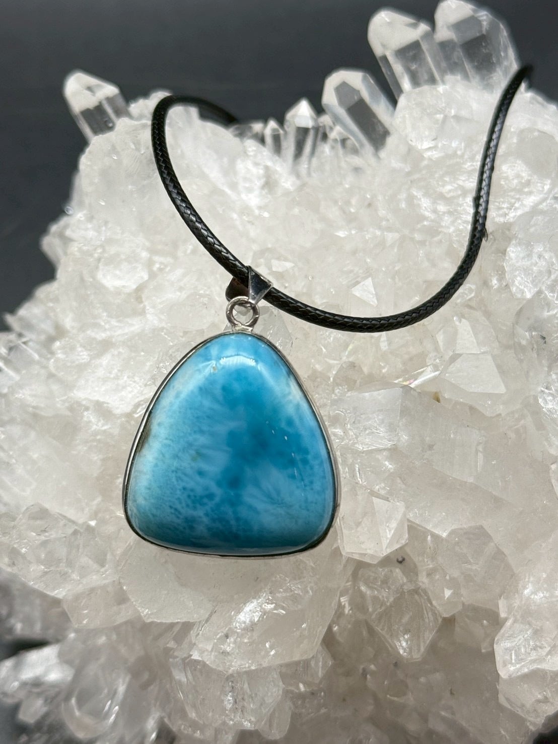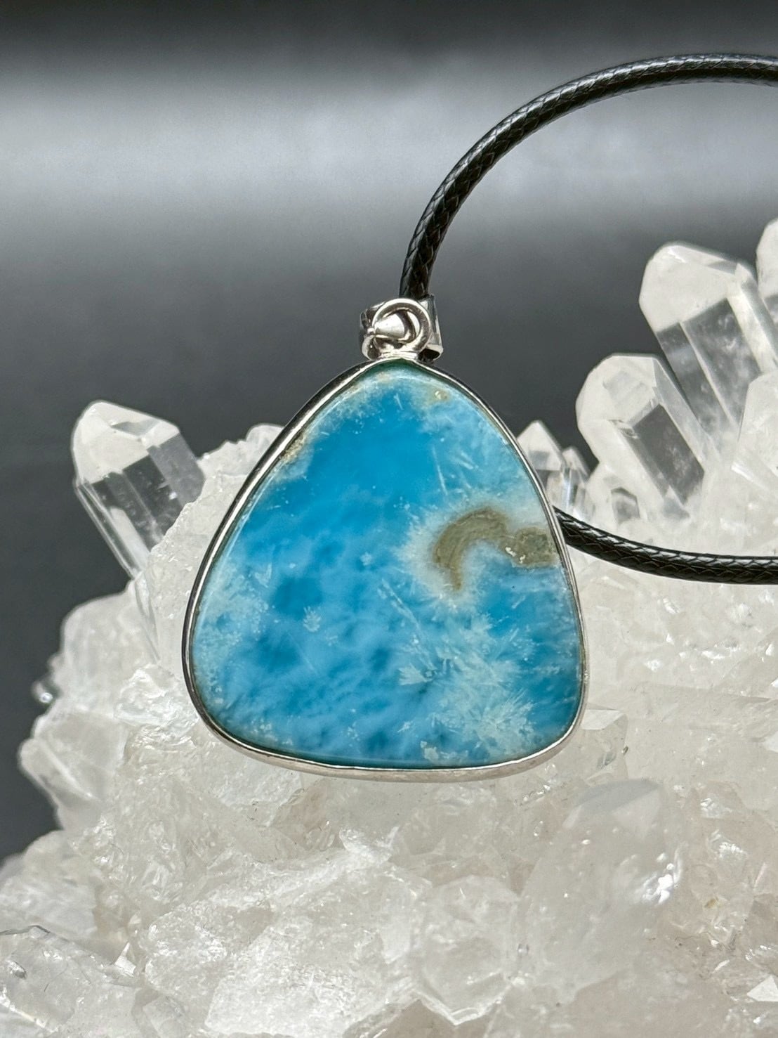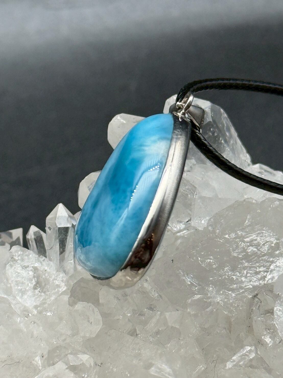 世界の3大ヒーリングストーンのひとつである【ラリマー(ペクトライト)】の癒しの光放つ、美しい模様のお買い得ペンダントです。