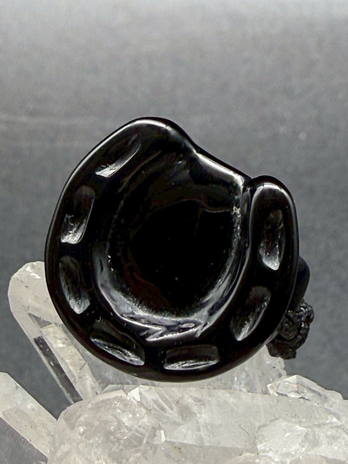 また、本来の邪気払いに加えて、持ち主の気の保護力が通常の磨いたオニキスよりも邪気邪念からは靄のように映り、姿をくらますような不思議な光を放ちます。