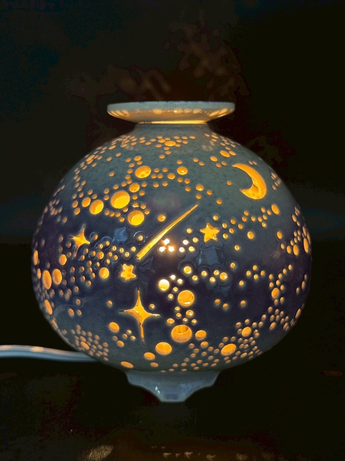 【宮沢賢治の里・早池峰焼】シェードランプ 星月夜①【Krehaセレクト】