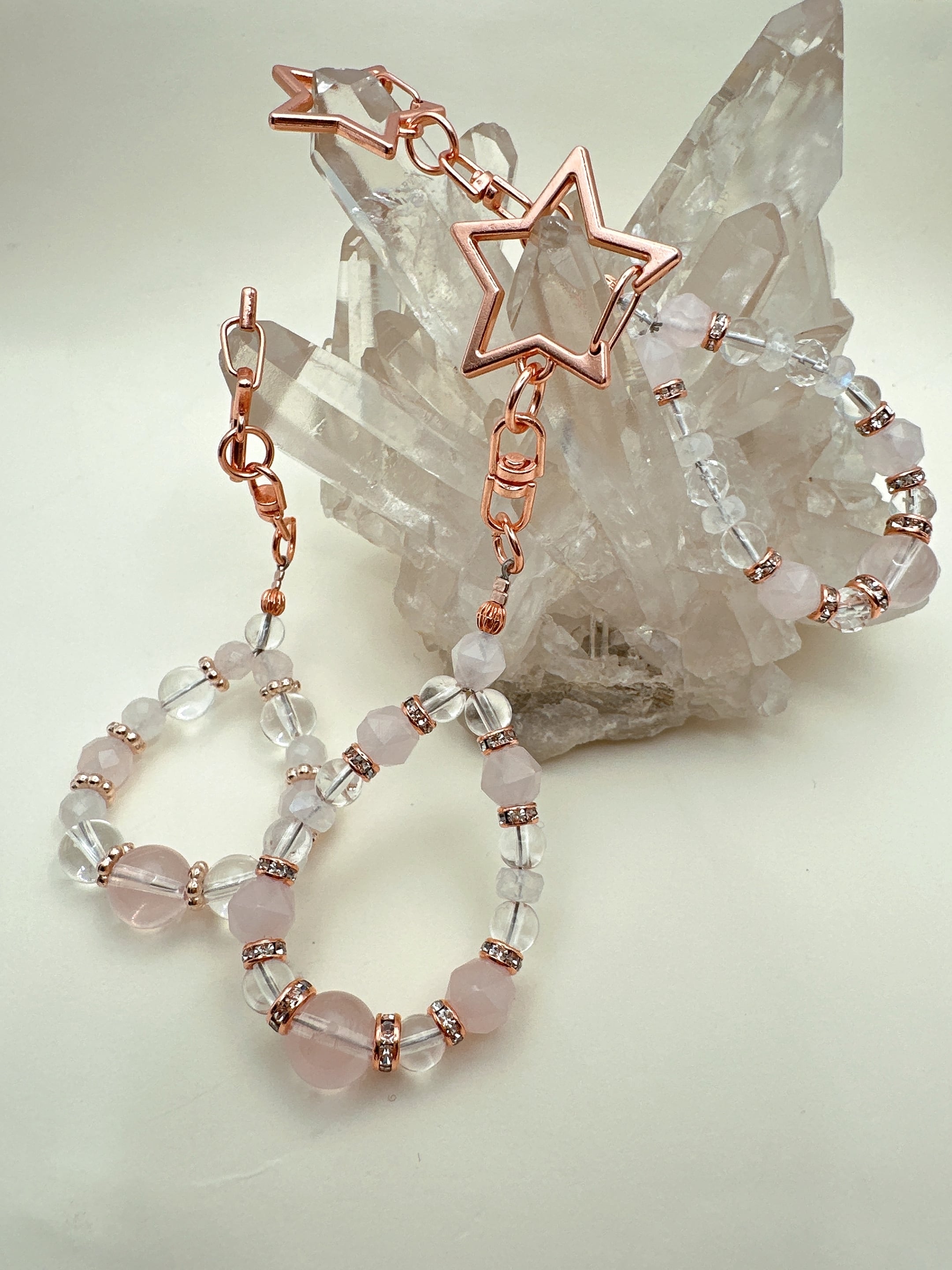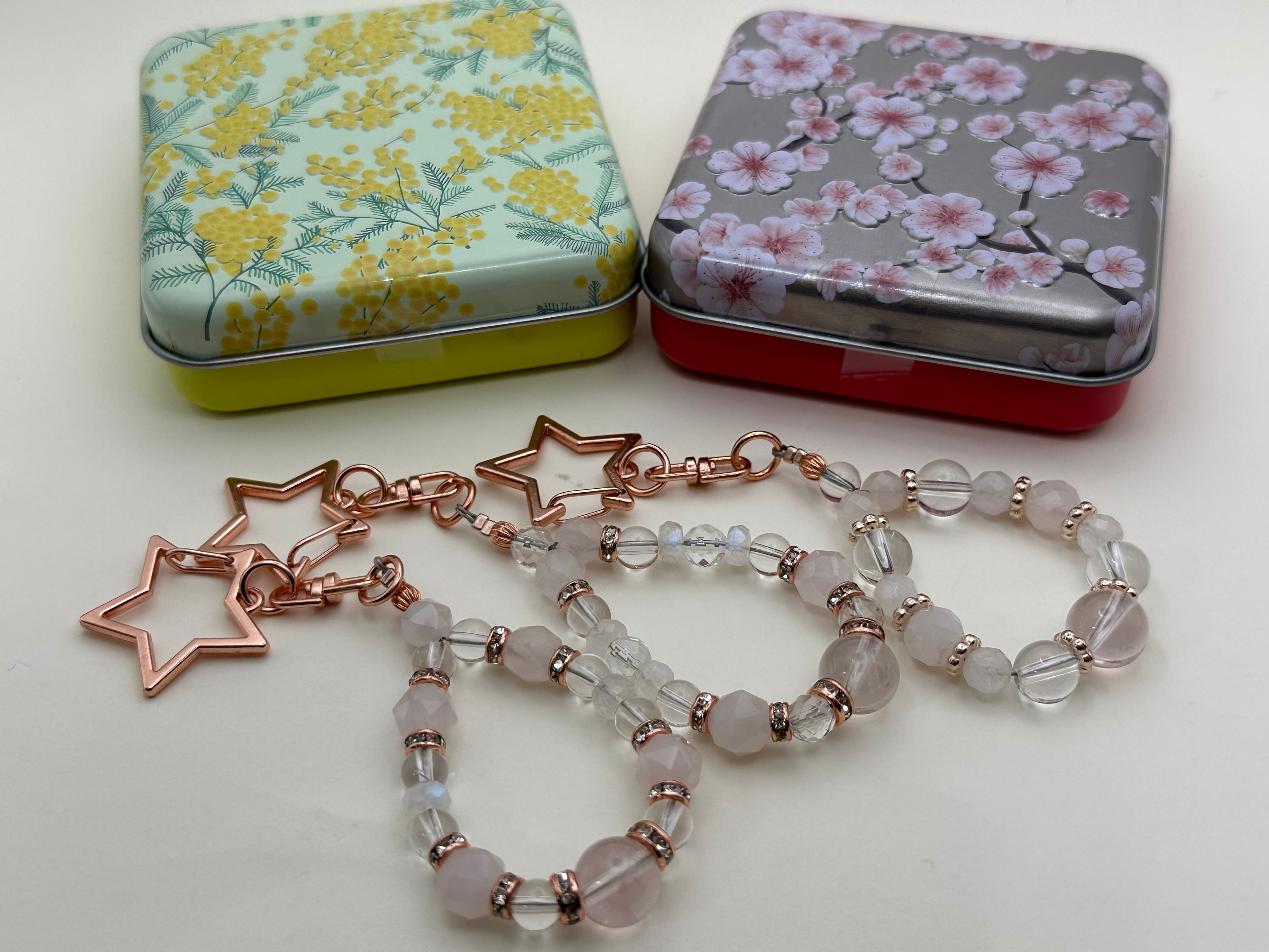 Krehaオリジナル・キーホルダーチャームは、ピンク色のローズクォーツと水晶、ピンクオパール、さらに美しい白色にさりげないきらめきで心身を癒し浄化し未来を導くストーンなどを用いた、シンプルだけれど心強いお守りとして、願いを叶える強い味方となるチャームです。