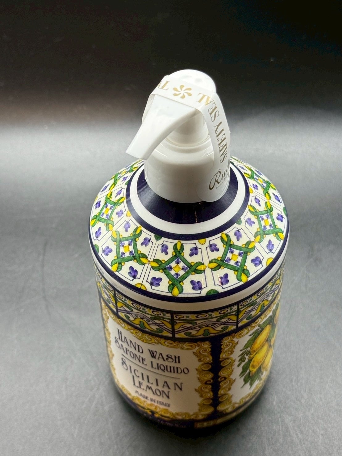 レモンの栽培と伝統を表現した柄のボトルになっています。