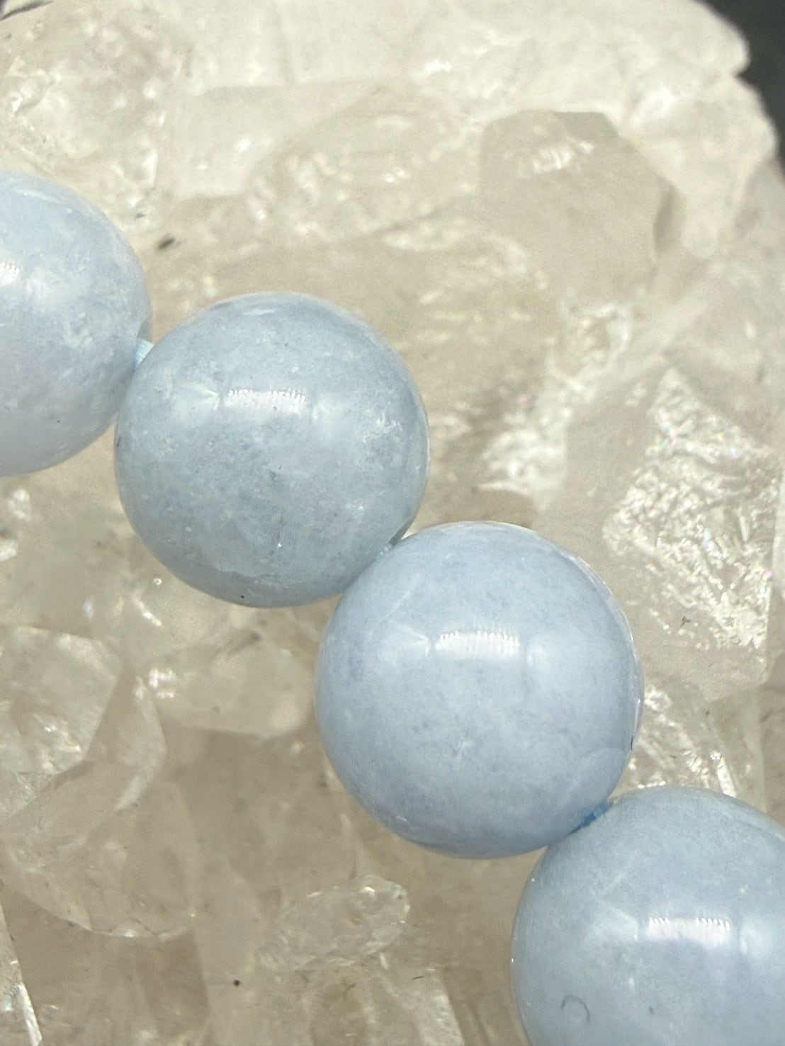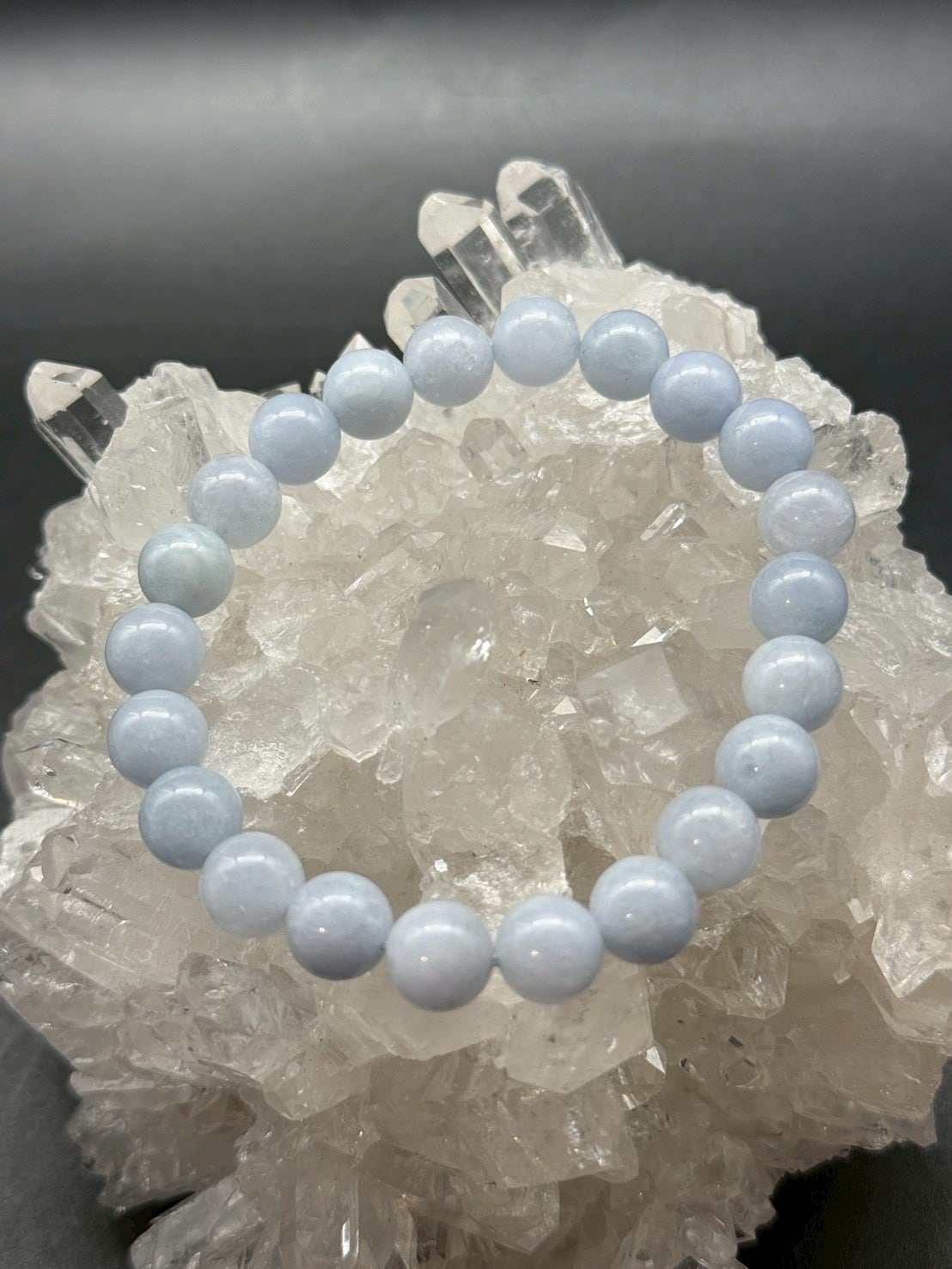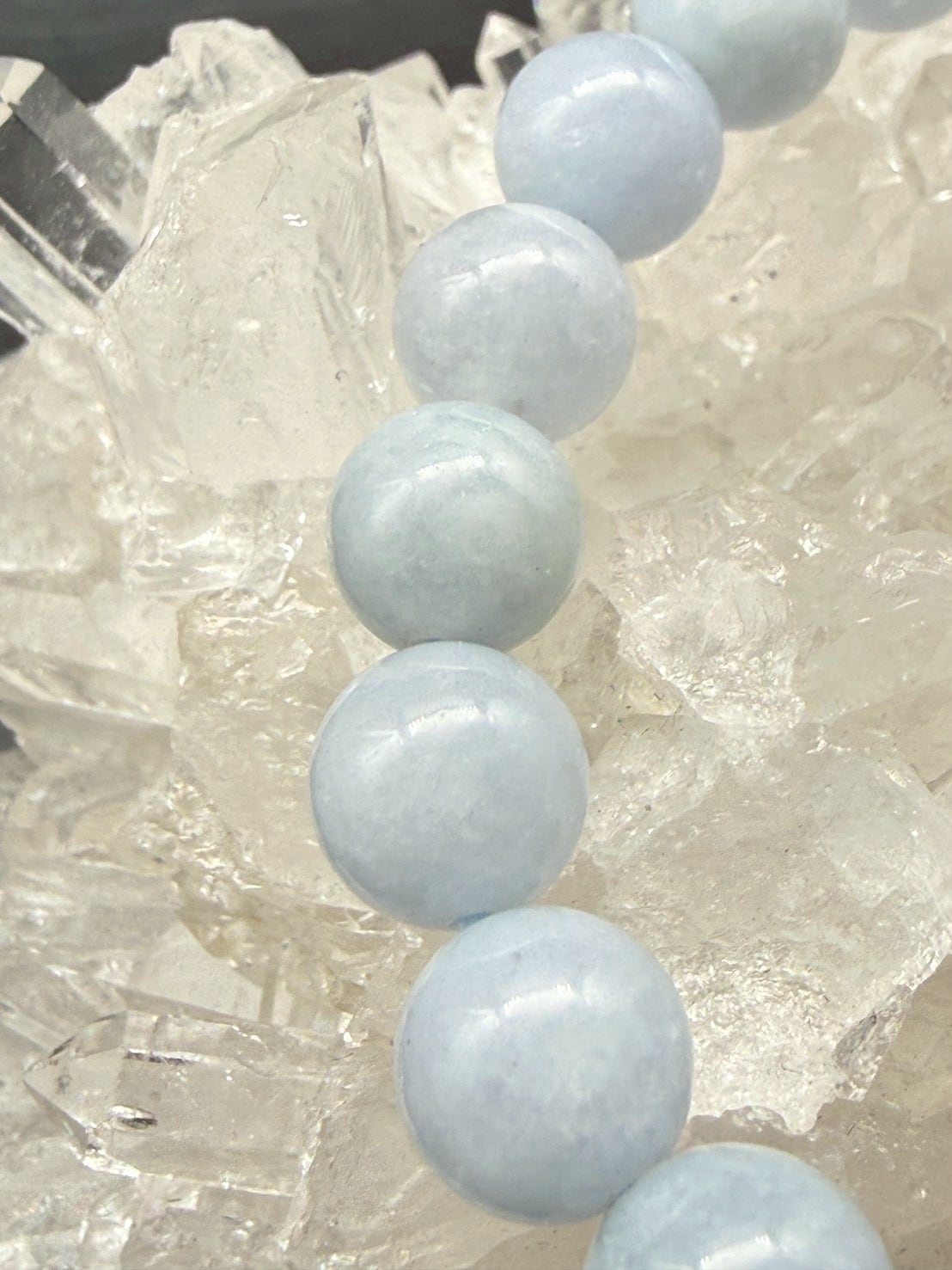 3月の誕生石「アクアマリン」のミルキーで優しい色合いが心を和ませてくれる、8㎜粒サイズのブレスレットです。