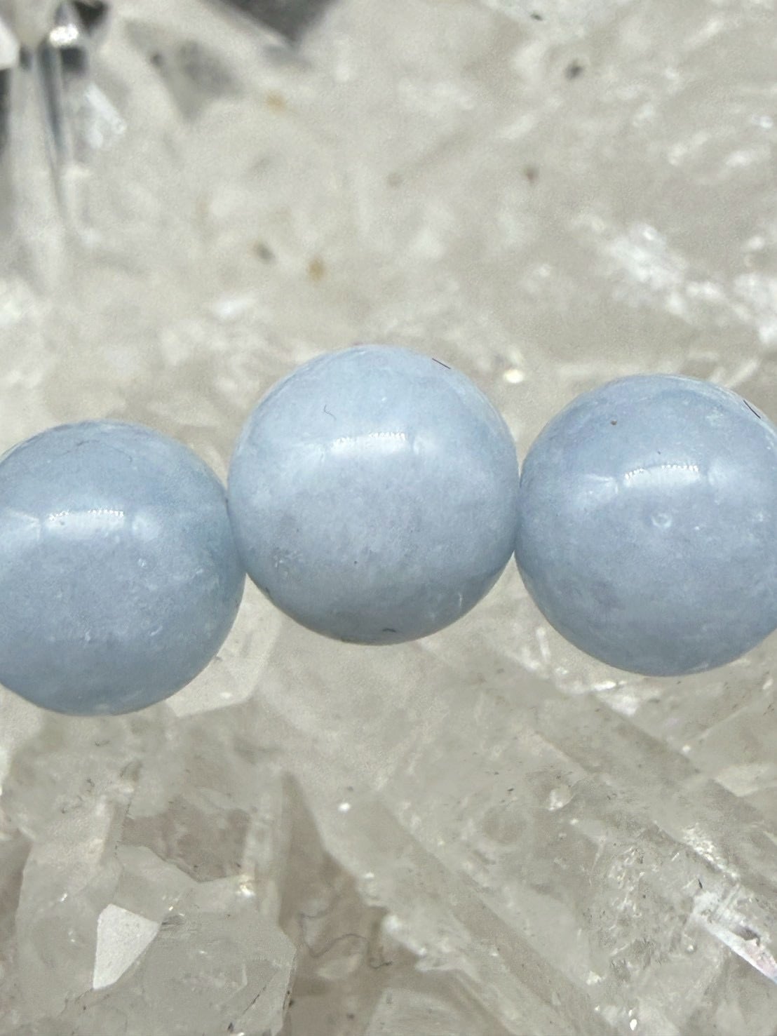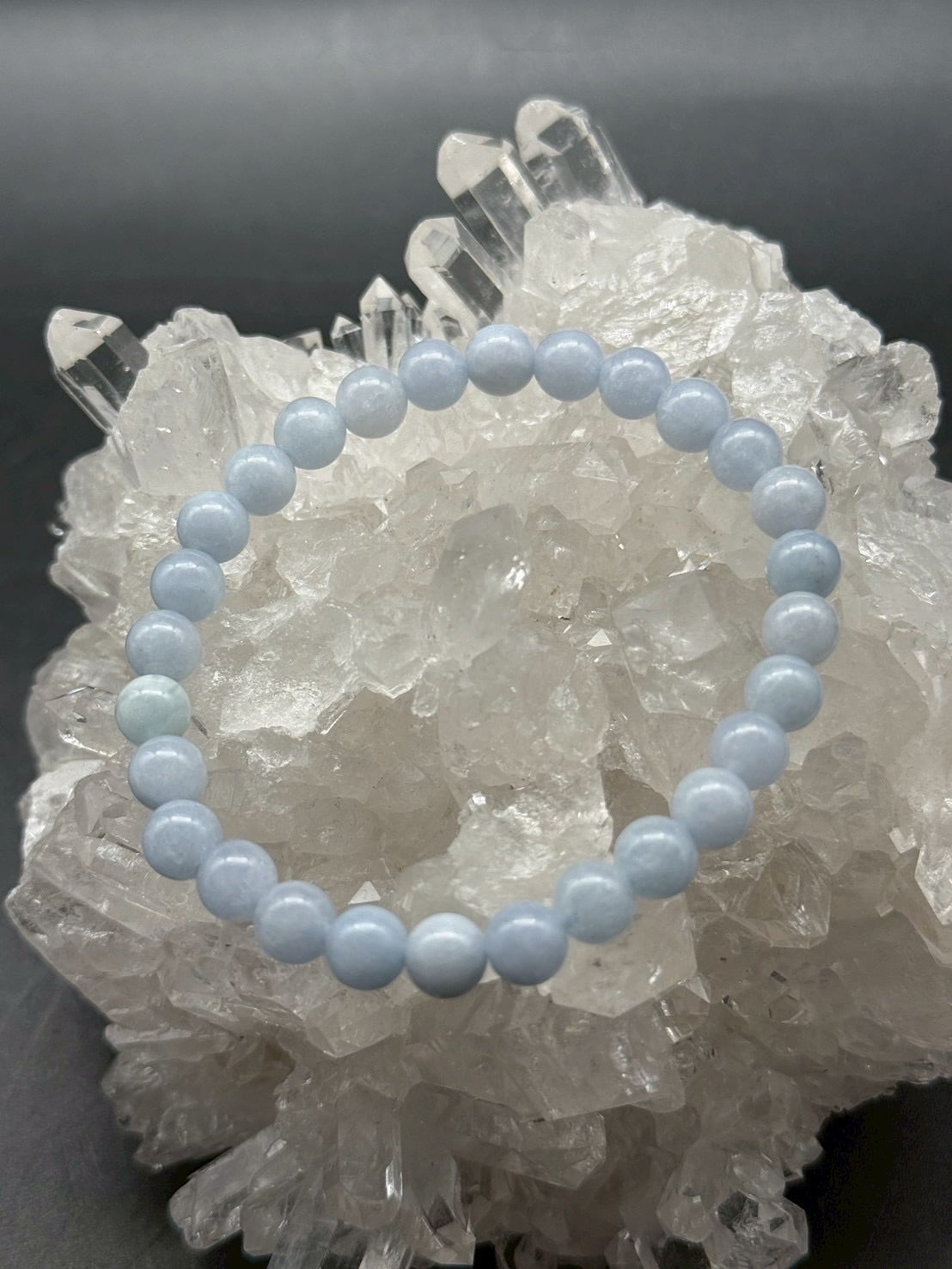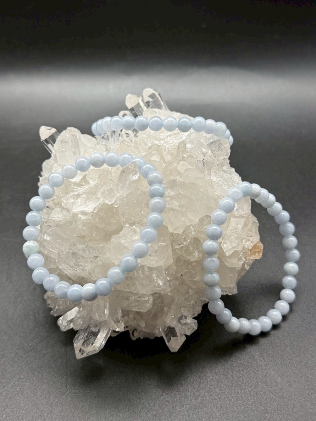 3月の誕生石「アクアマリン」のミルキーで優しい色合いが心を和ませてくれる、6㎜粒サイズのブレスレットです。