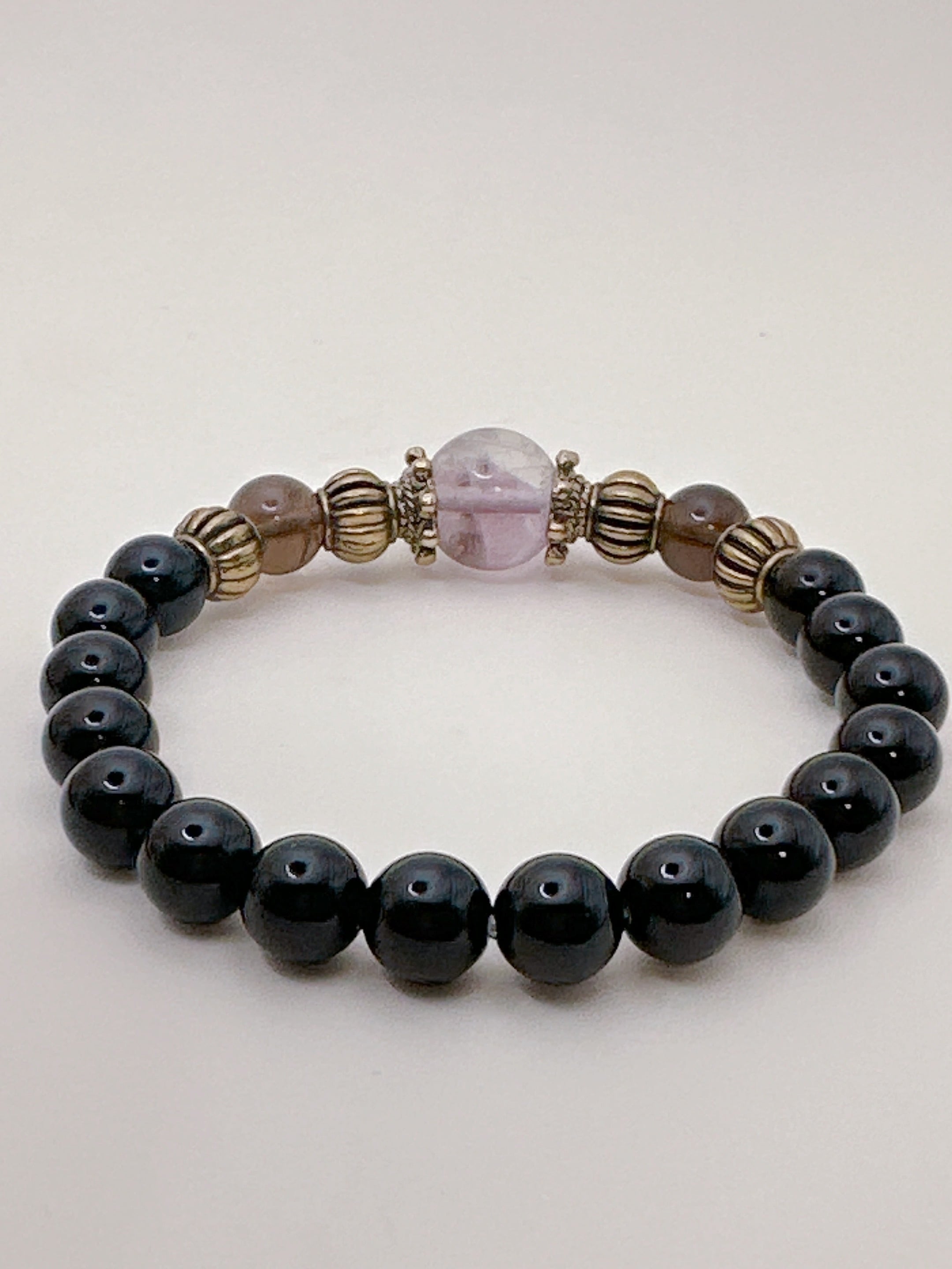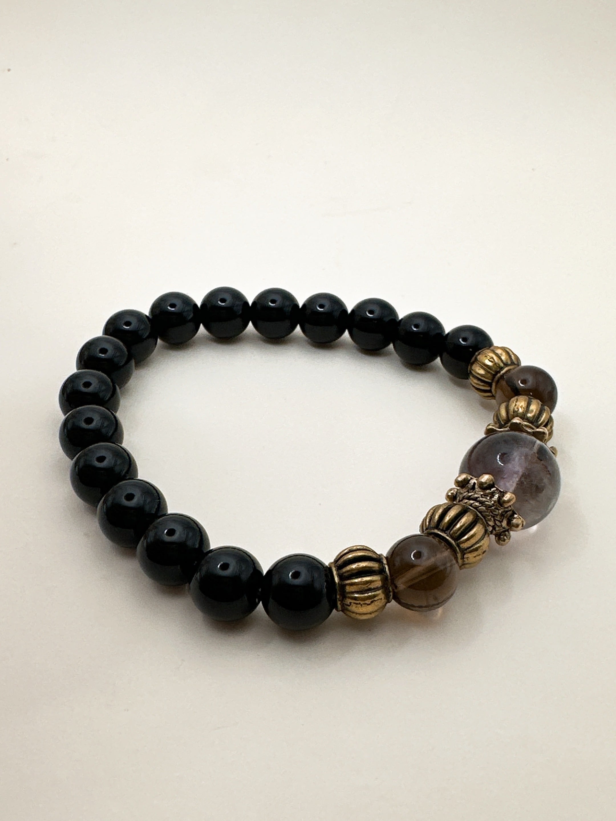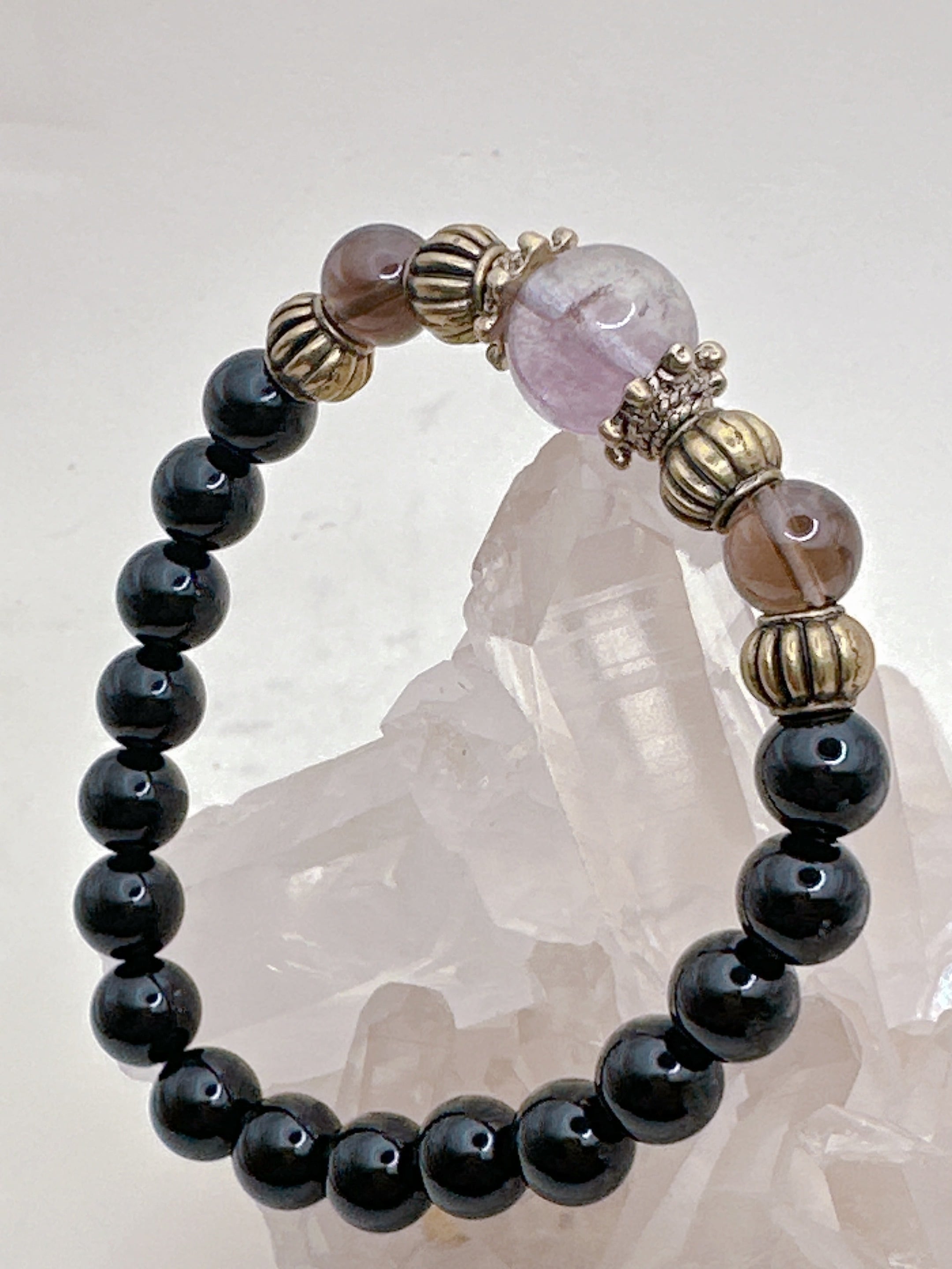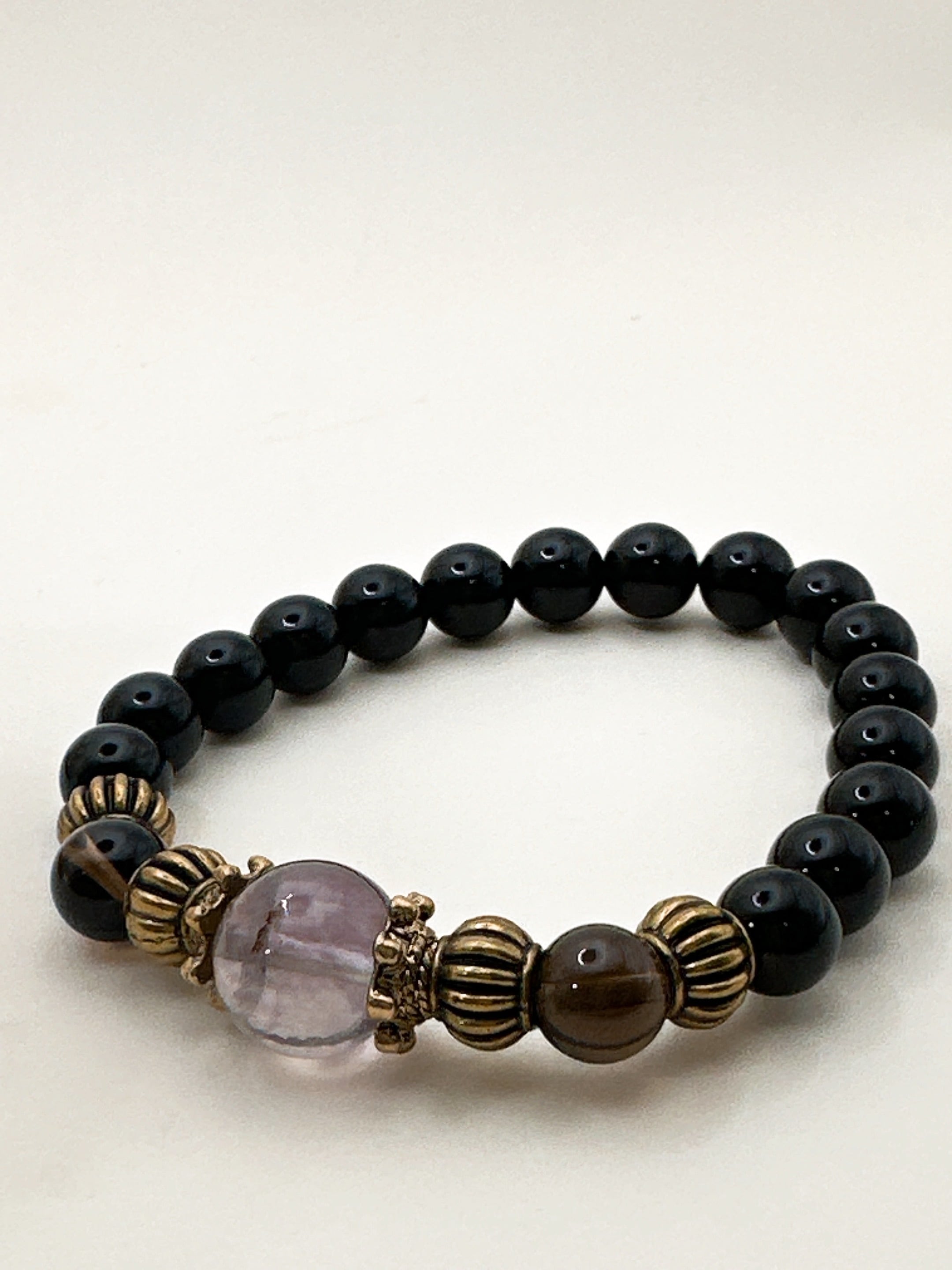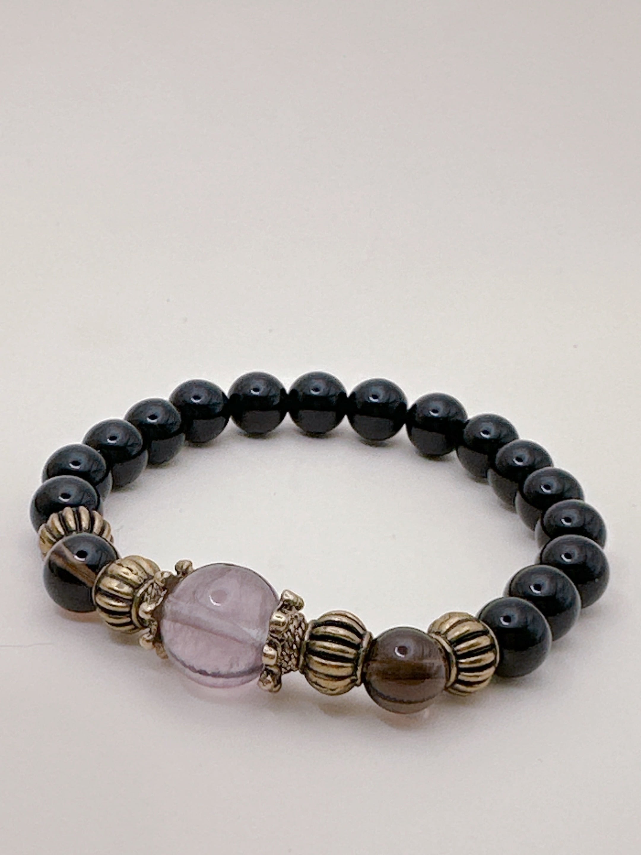 【魔法の力呼び覚ます!フローライトとオニキス・魔力覚醒ブレスレット Ⅰ】Krehaオリジナルブレスレット WKFrOnx01-603032