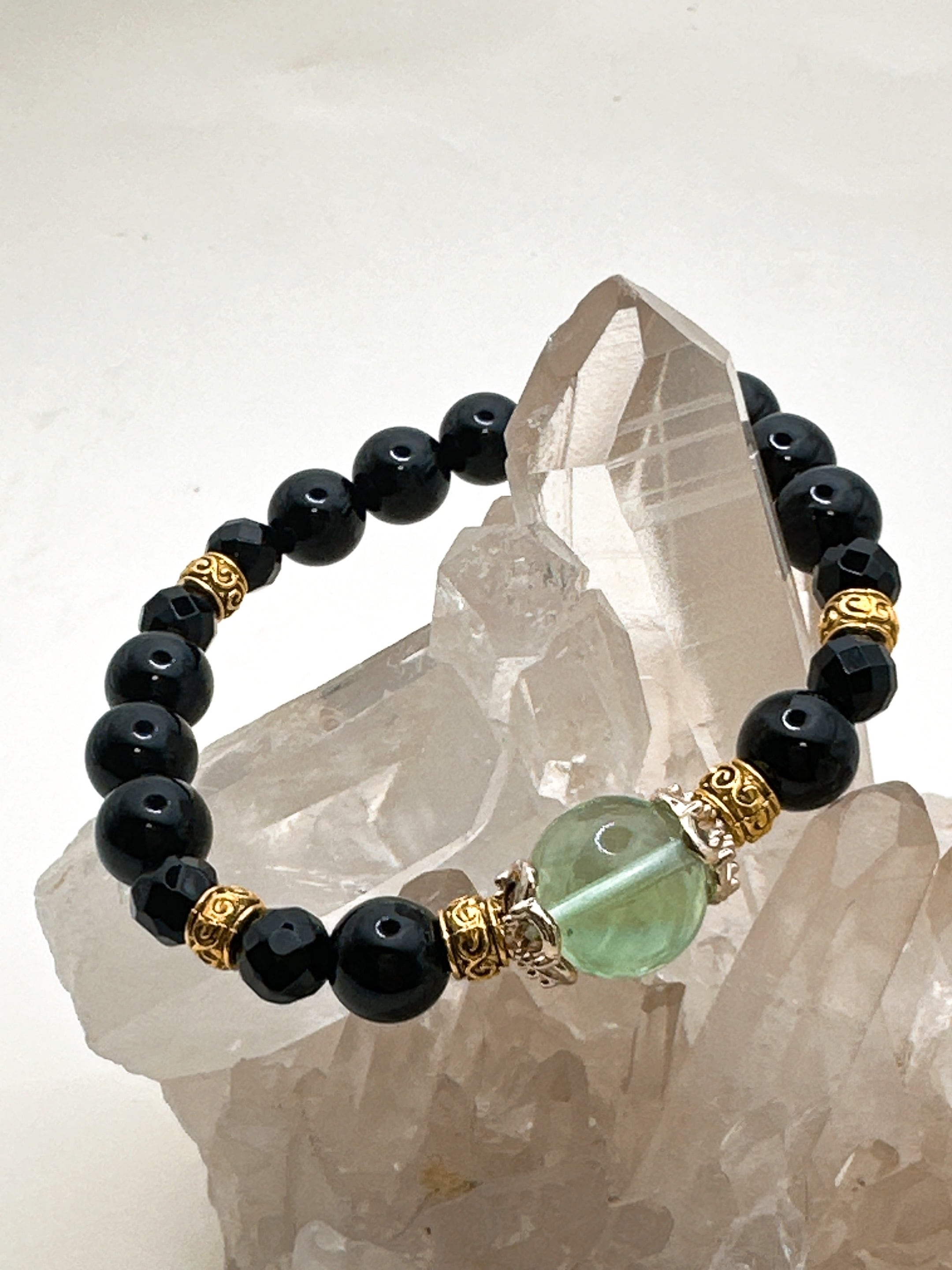 こちらのブレスれとには、その中でも、非常に癒しと浄化力の高いグリーン系を主に使用しています。