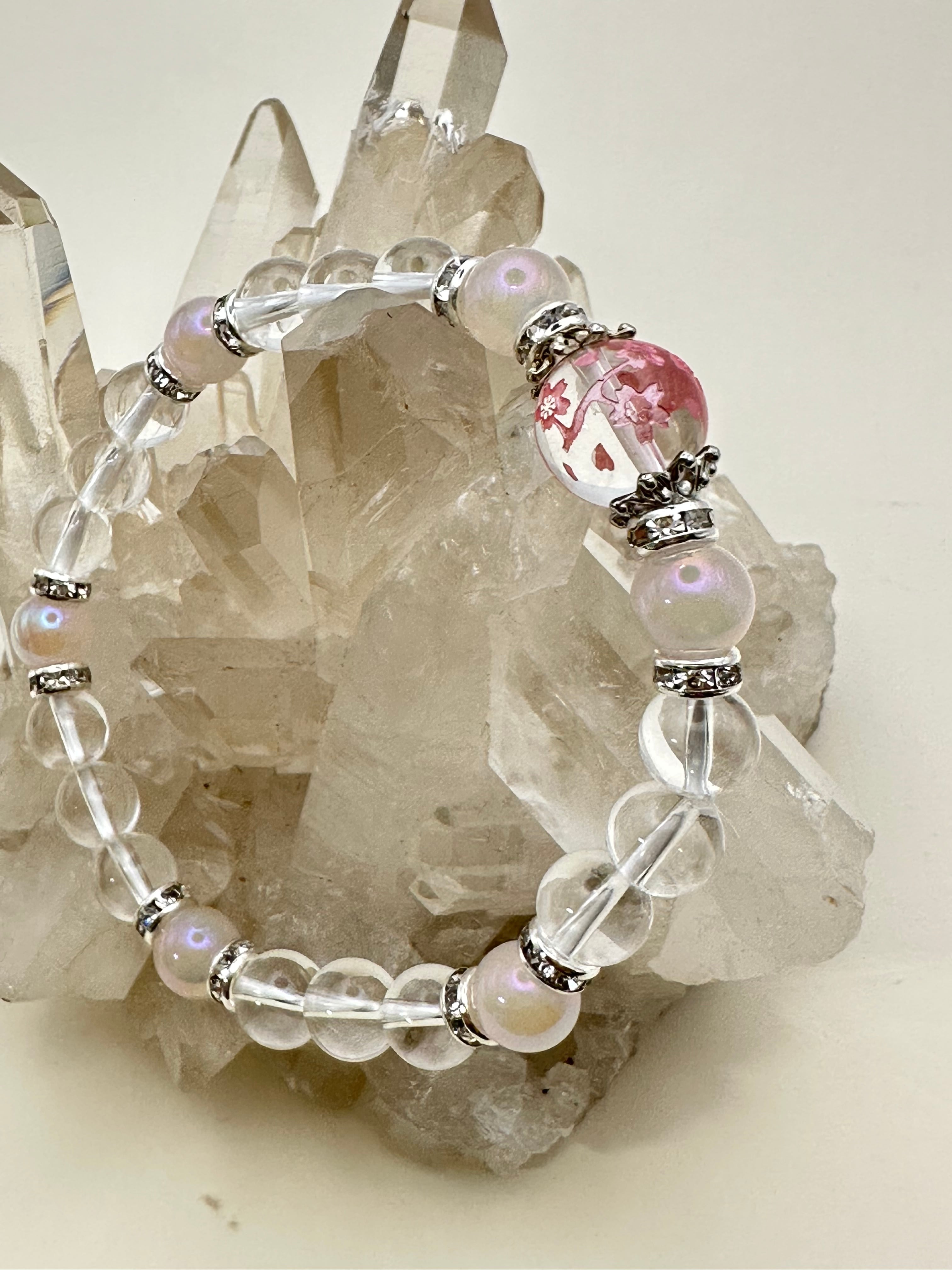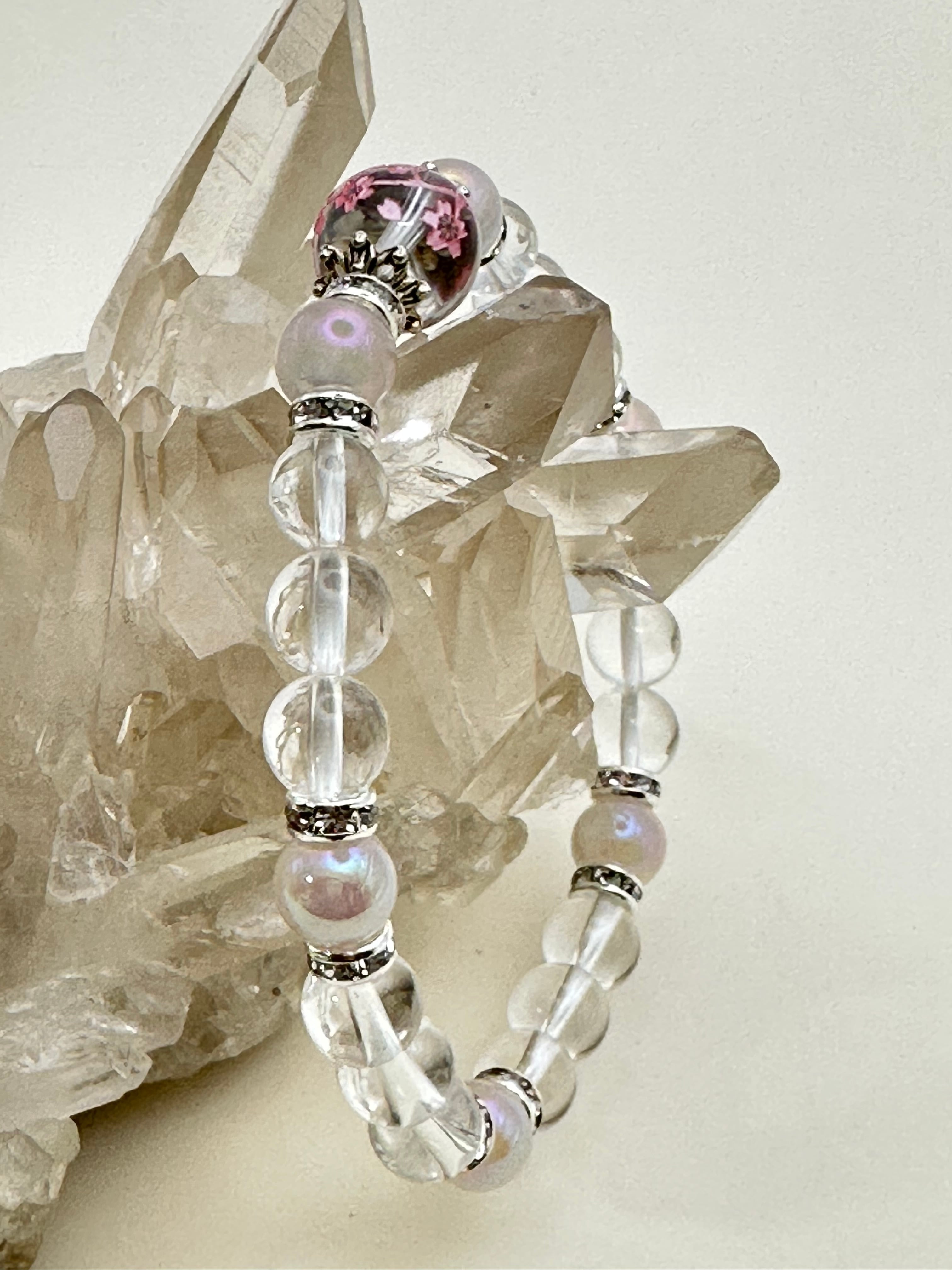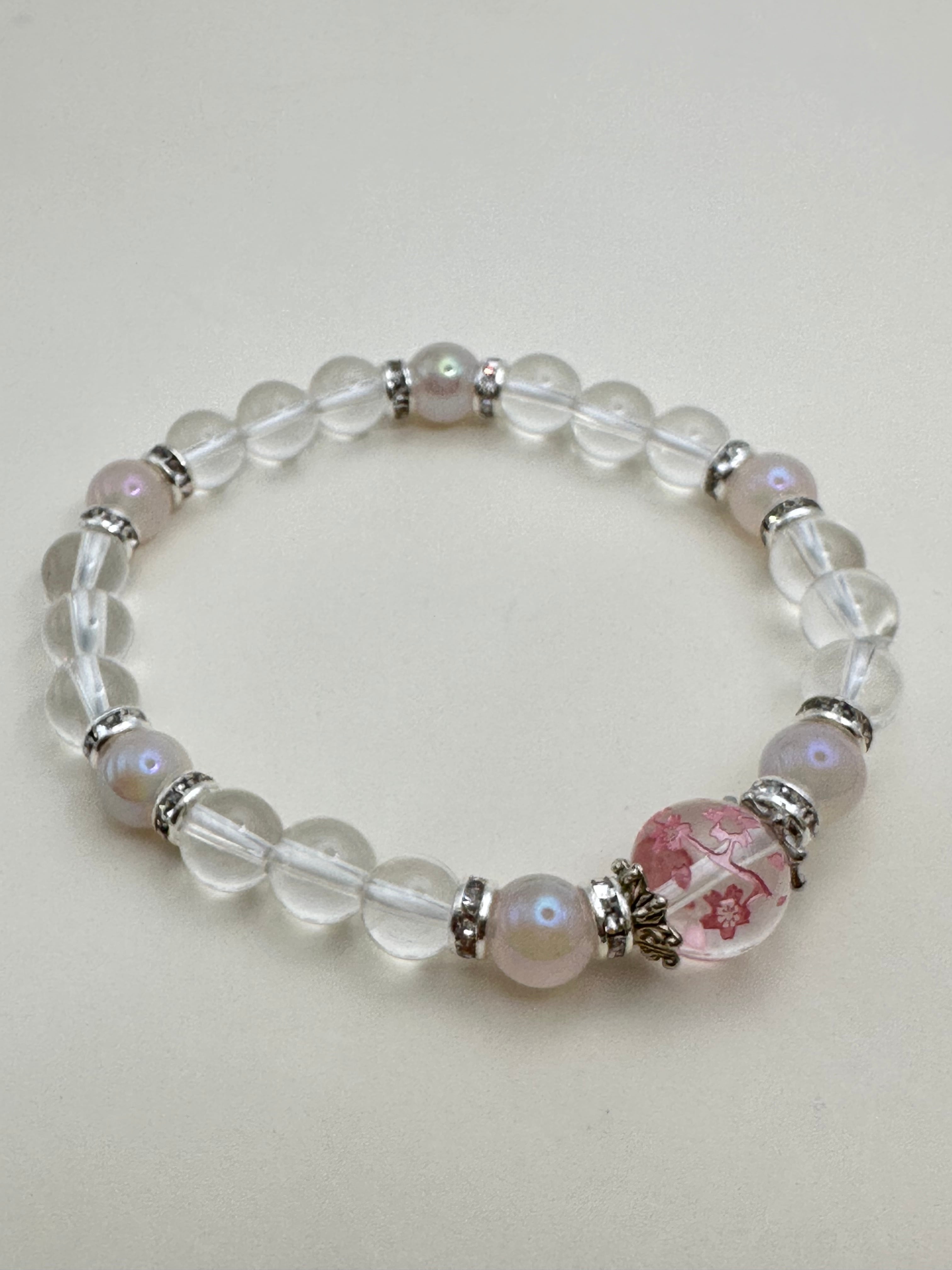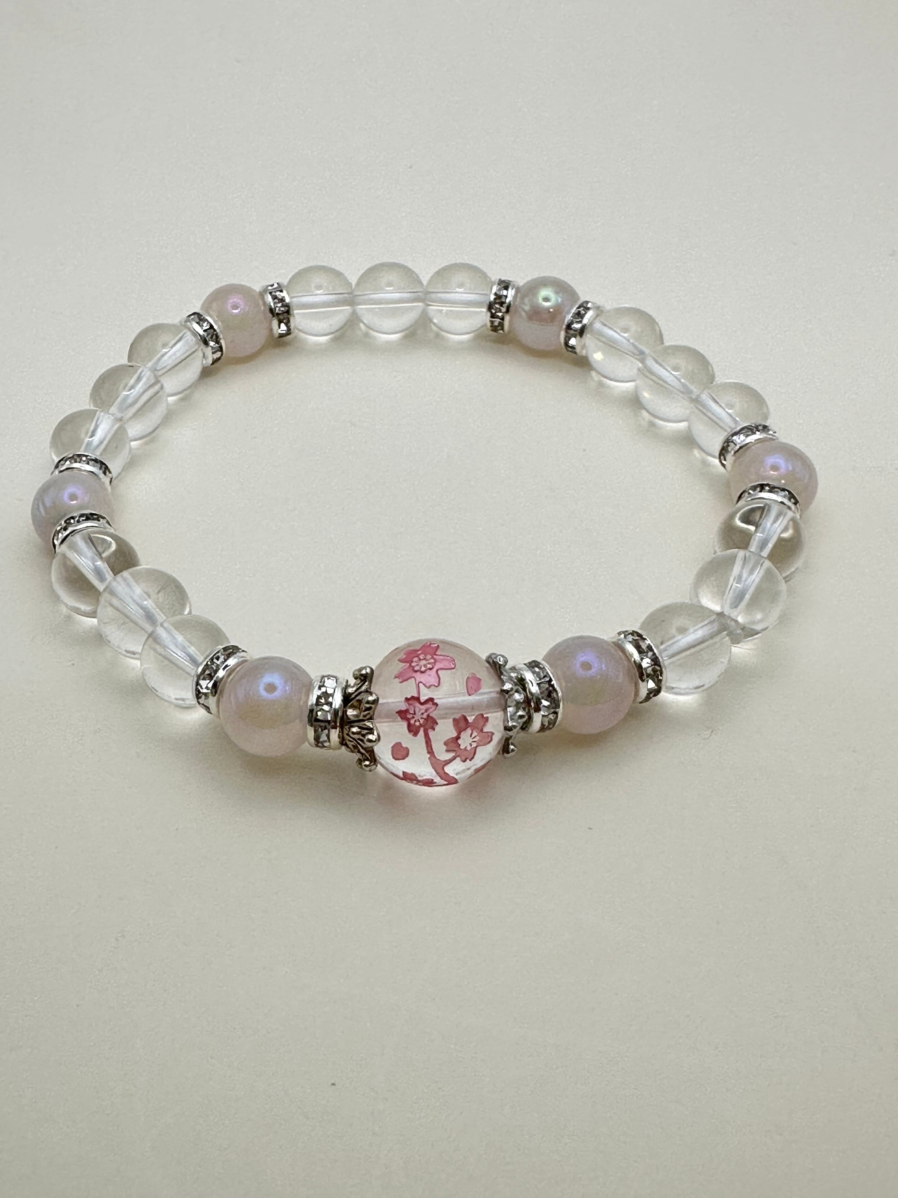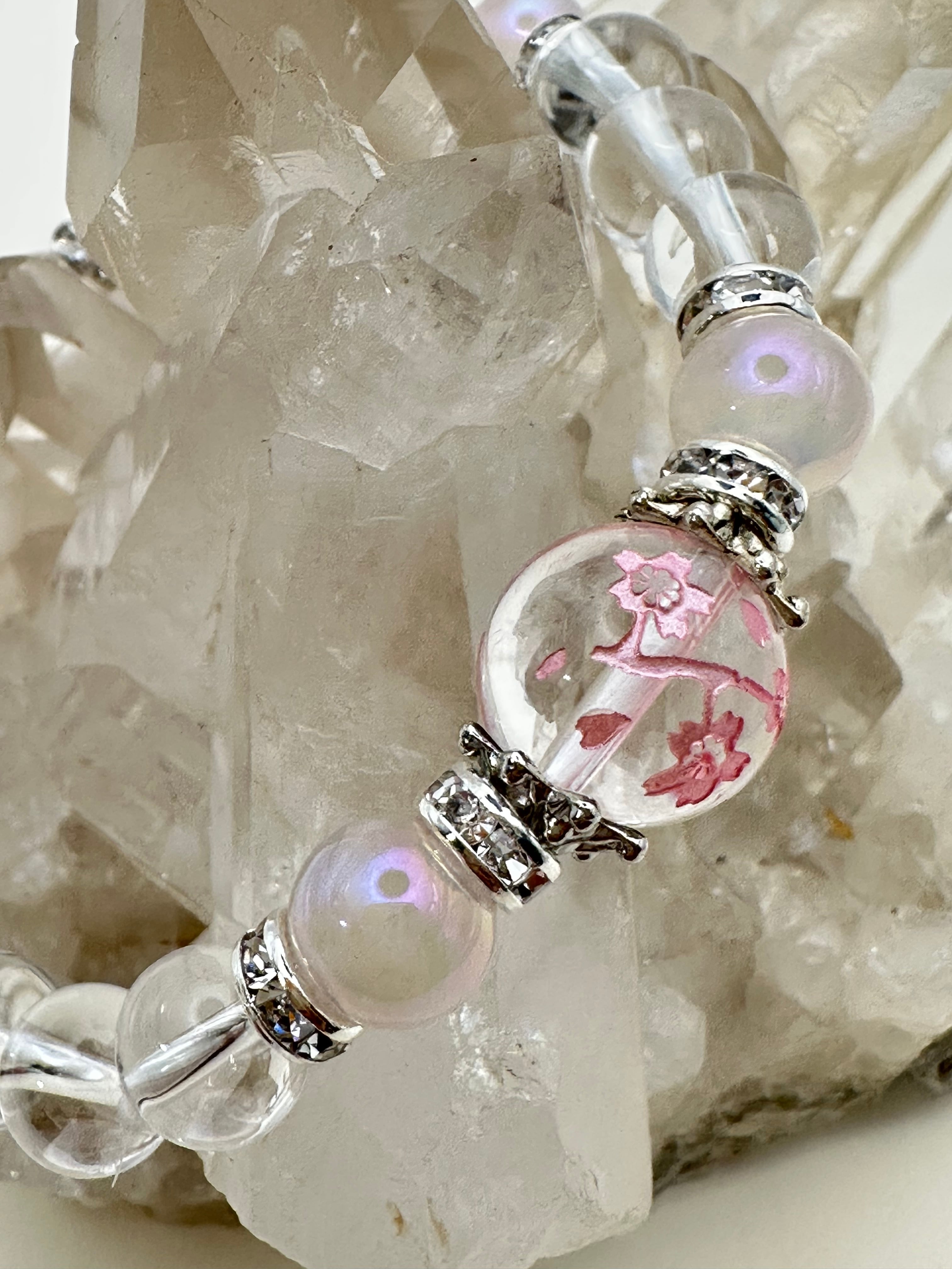 ピンク色がかわいらしい桜彫りの水晶とともに、