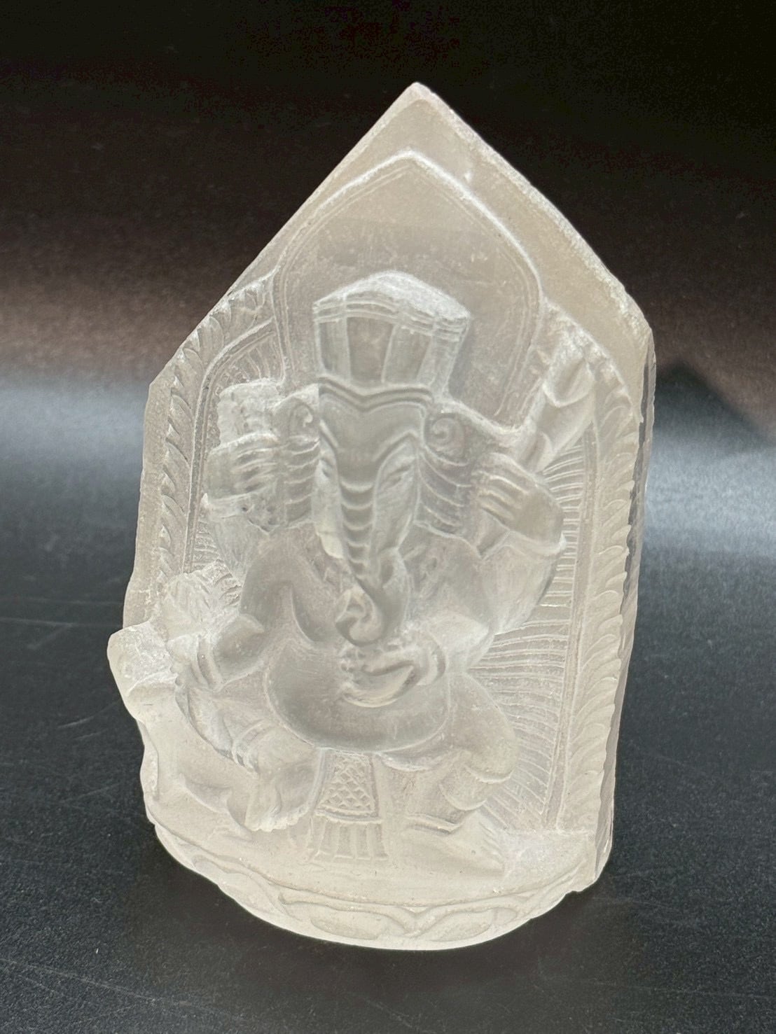 【開運&願望成就】【美しい透明度】水晶・ガネーシャ彫り置物