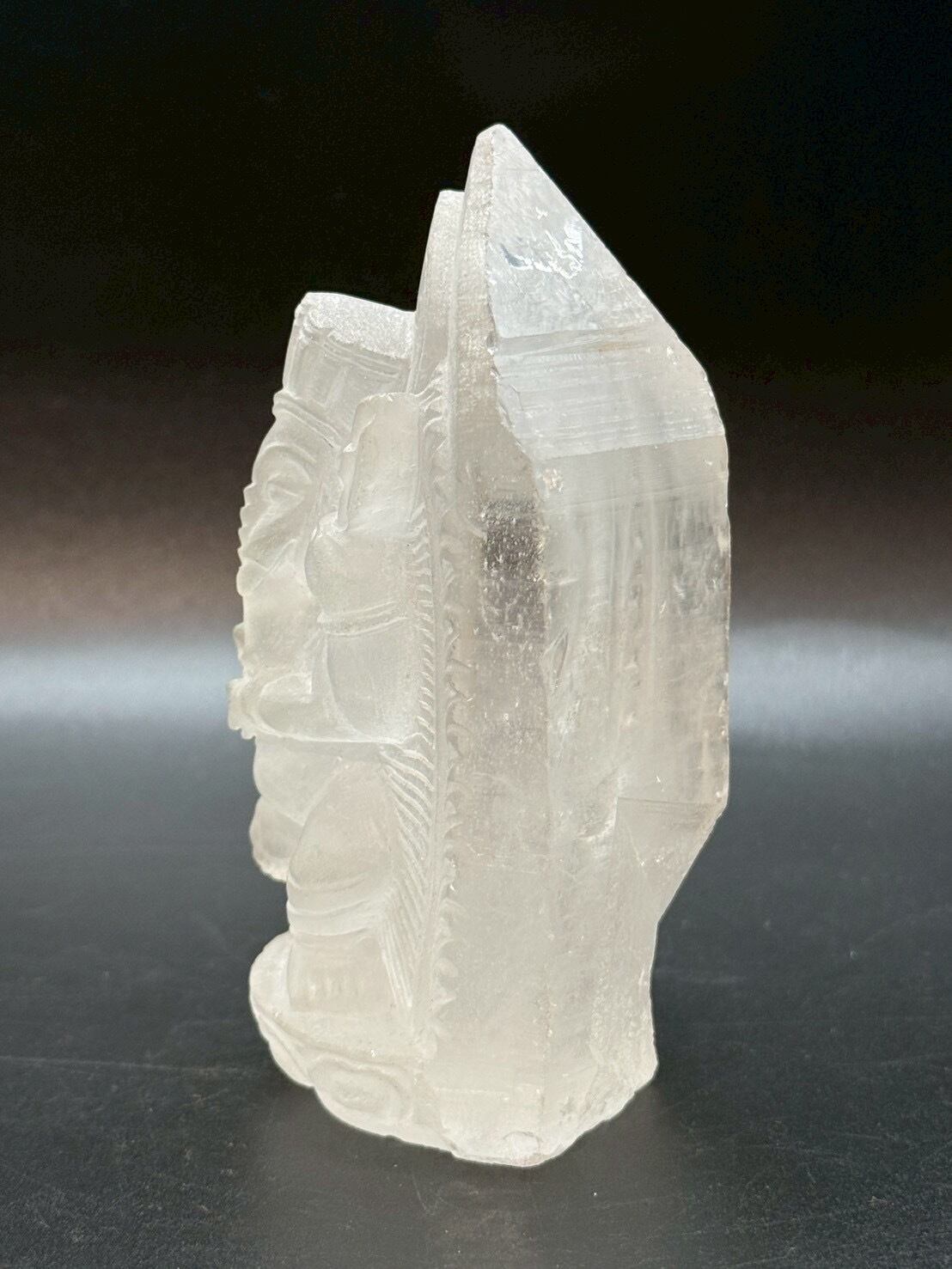 こちらのガネーシャの彫られたパワーストーンは、地球誕生から生成されてきた万能のパワーを宿す【水晶】です。