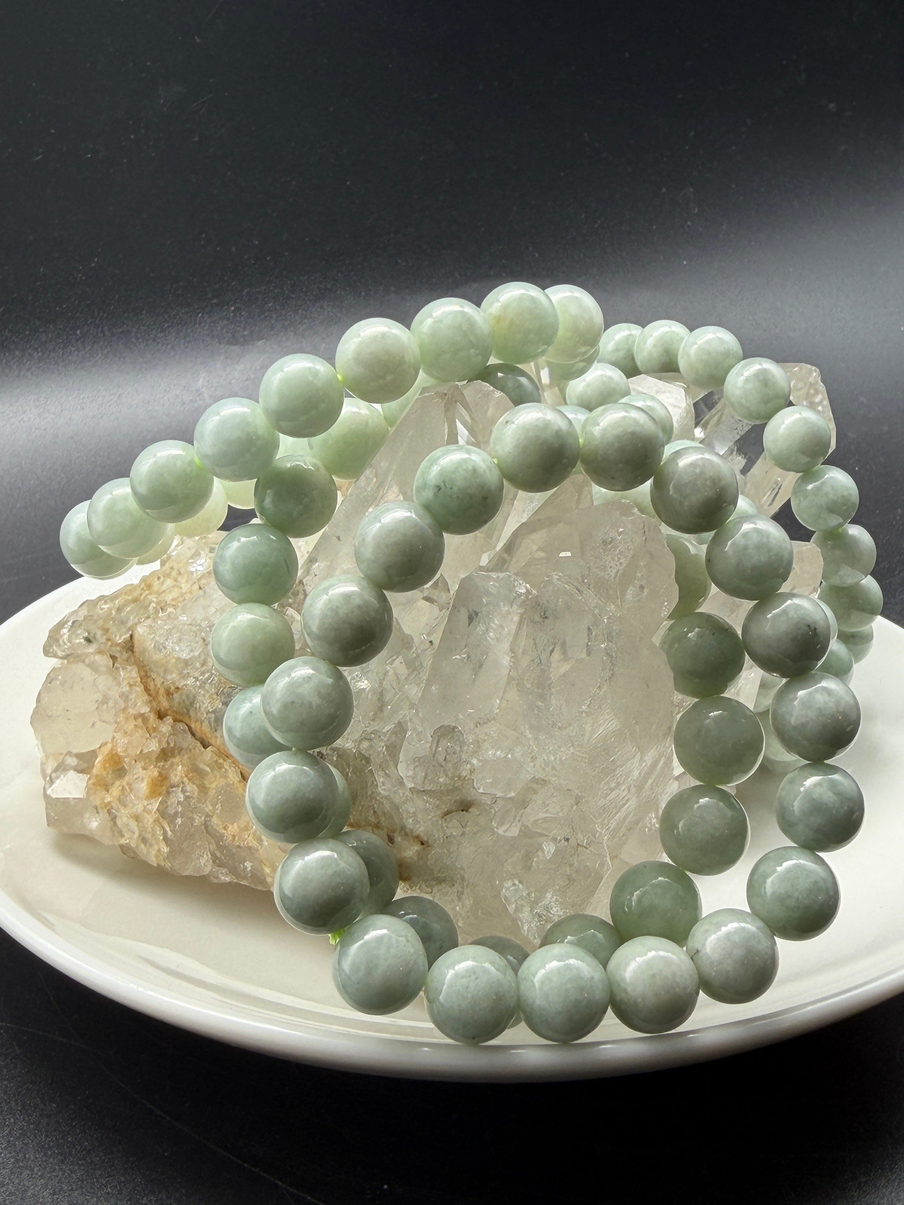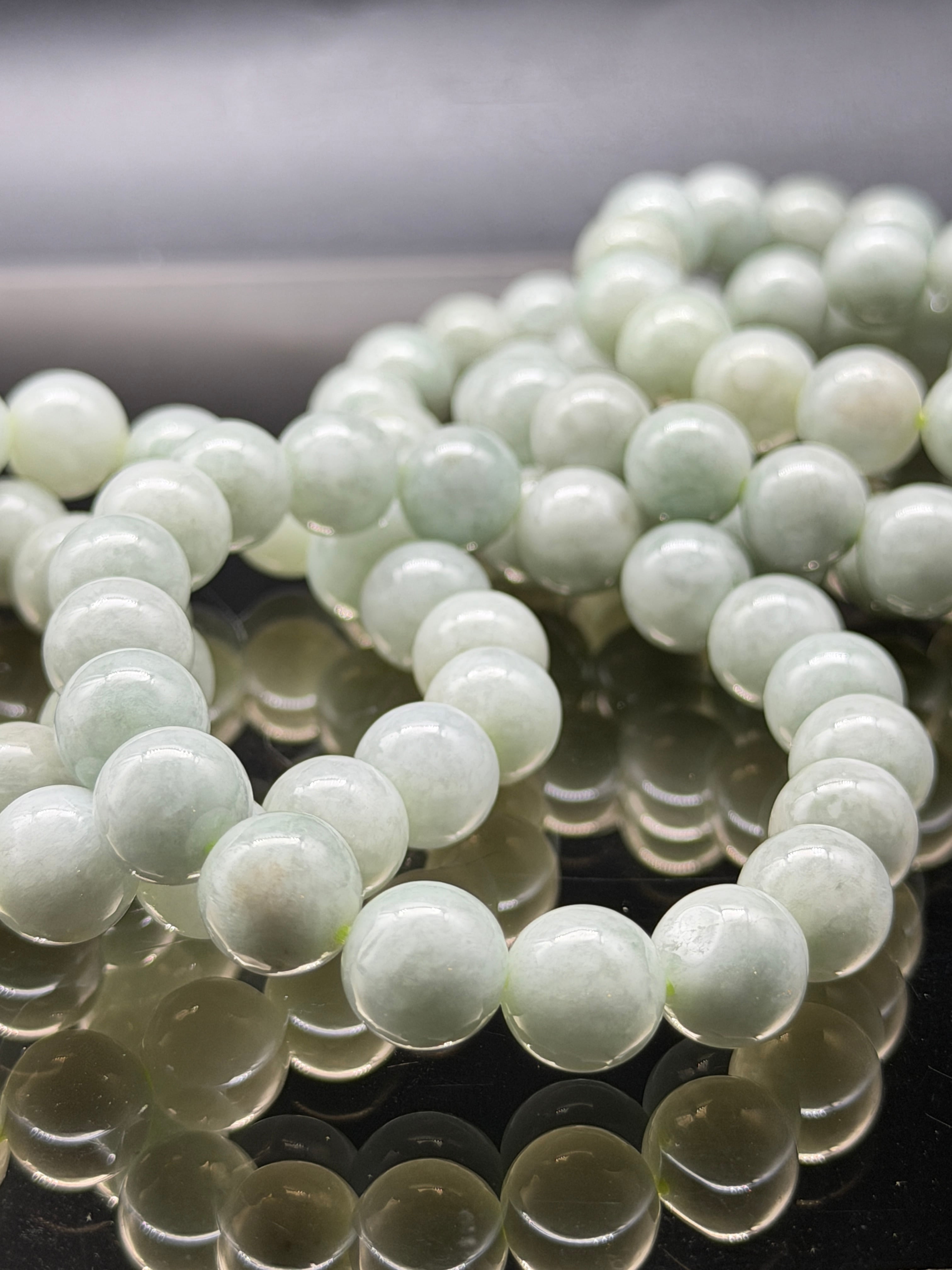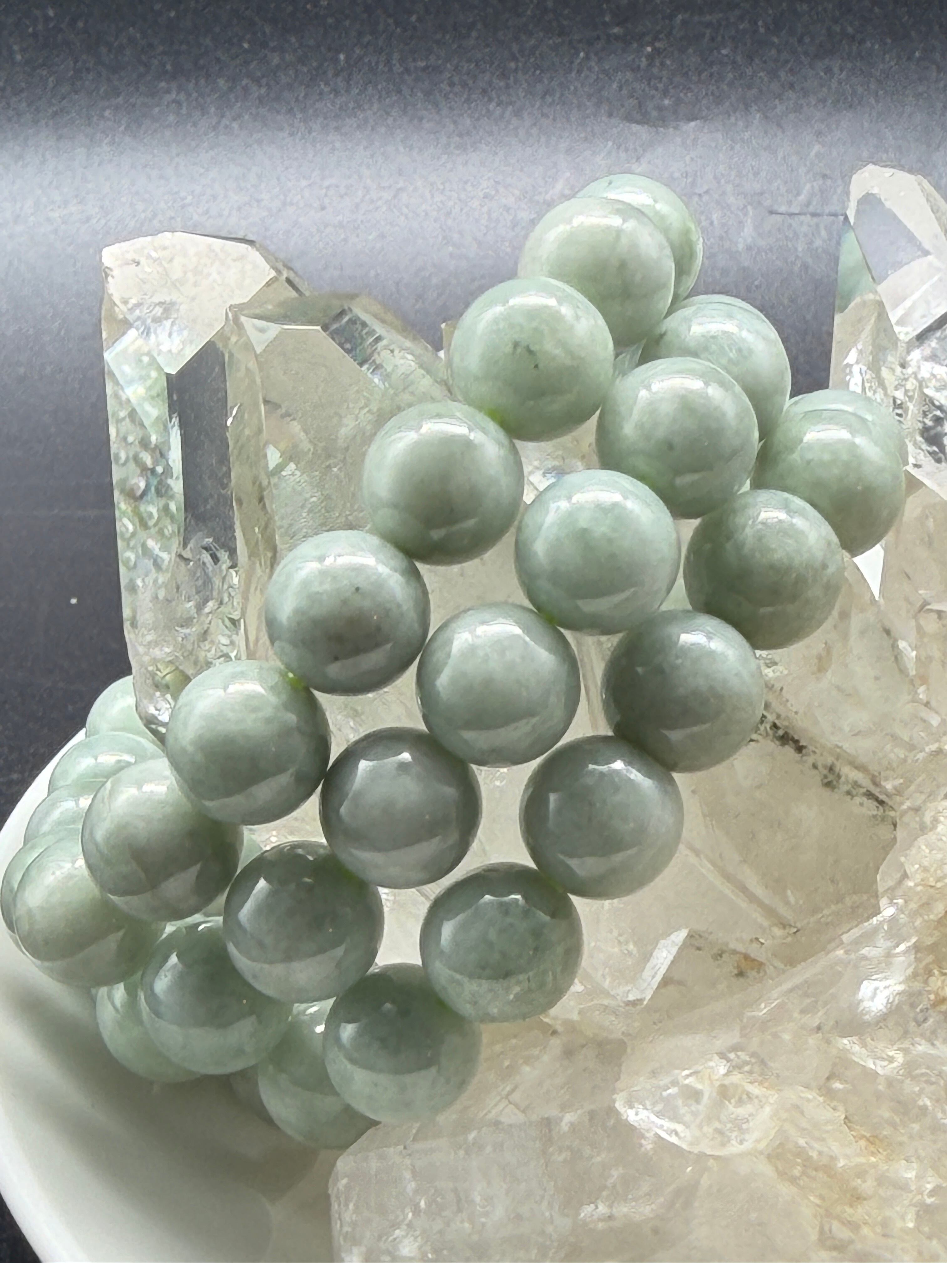 優しい色合いをした、約10㎜粒のシンプルな翡翠ブレスレットです!