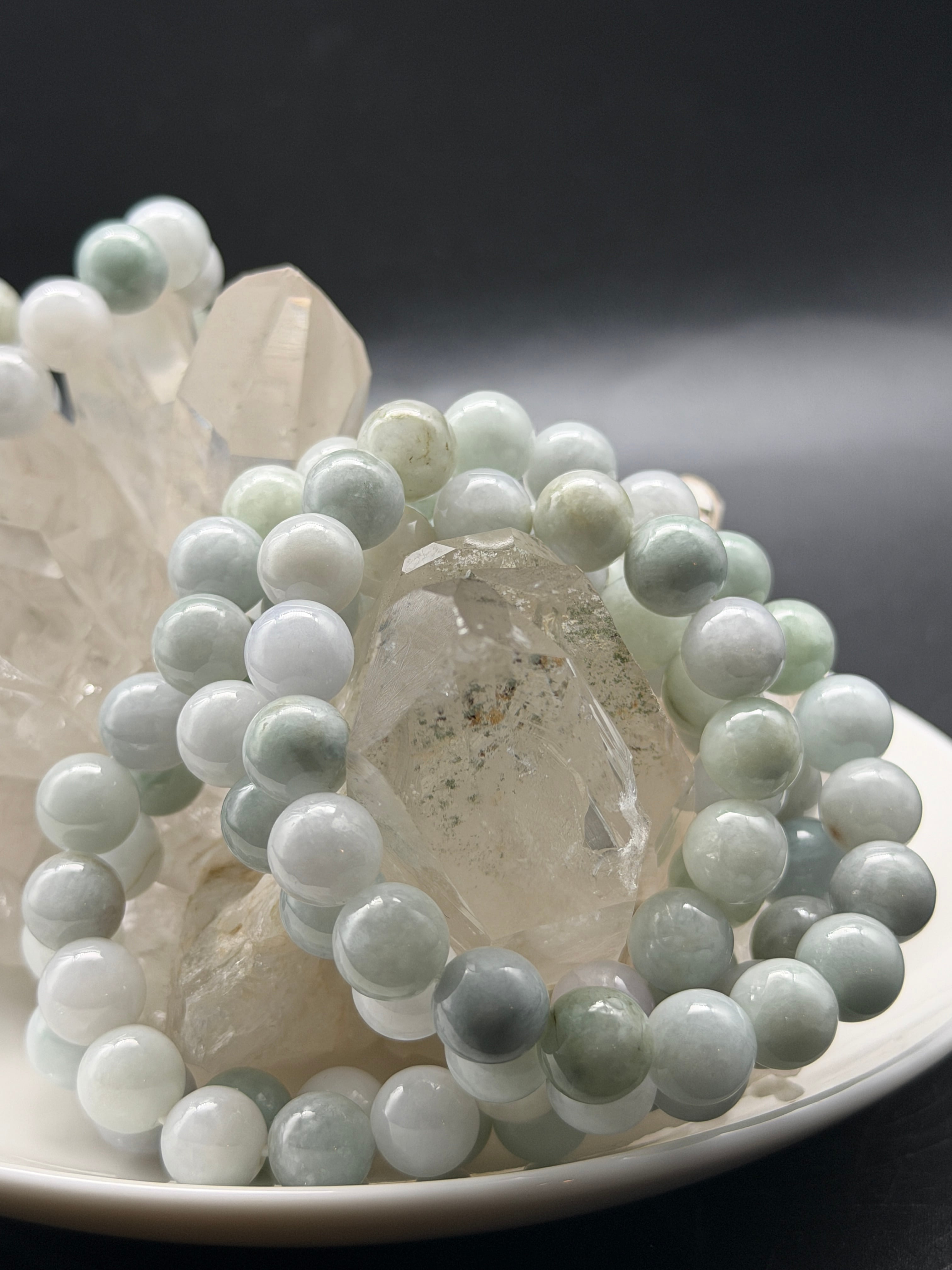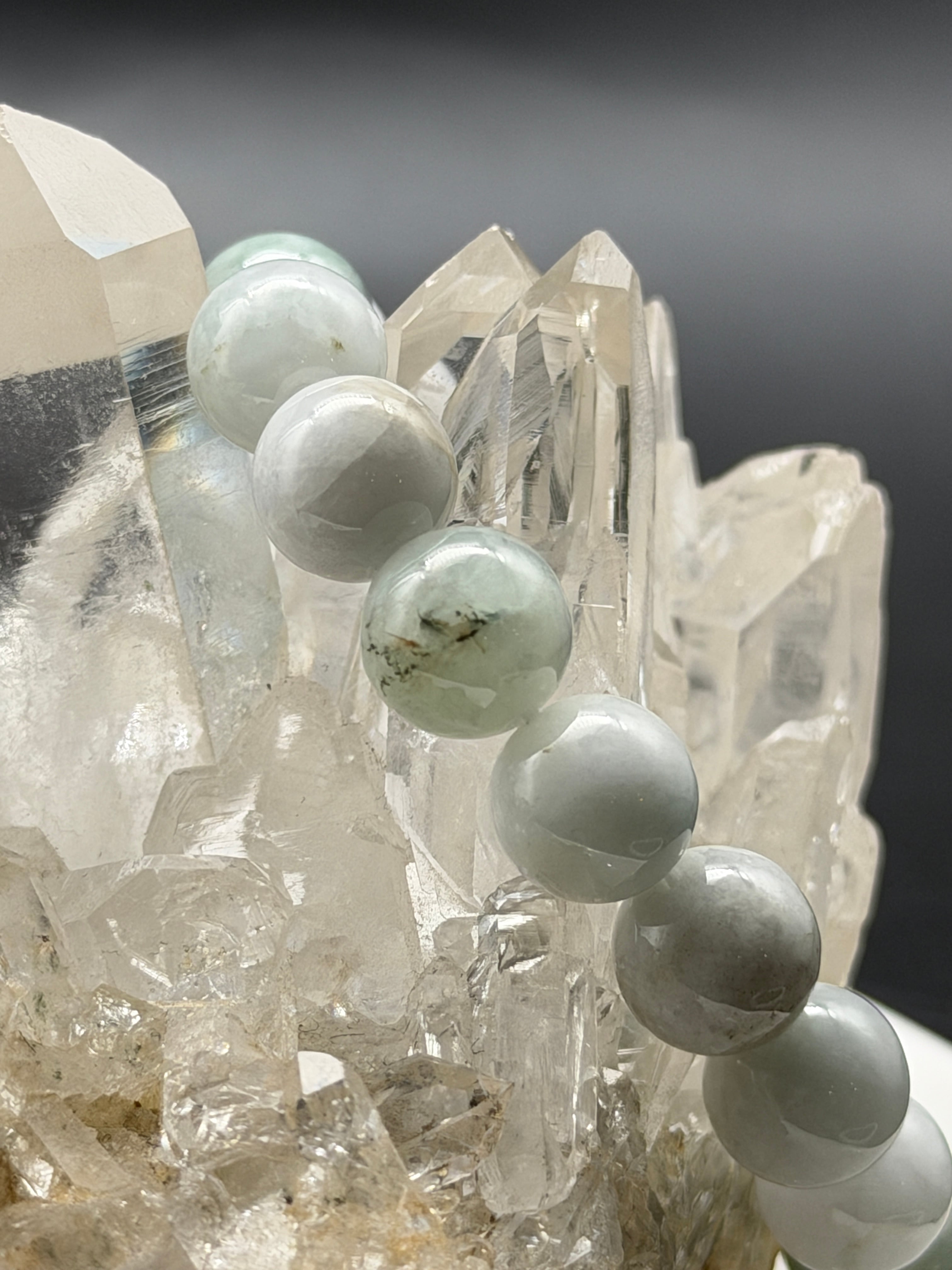 ナチュラルな翡翠の濃淡が、個性的で魅力的な光を放ちながら、人生の財と繁栄、健康をもたらすブレスレットです!