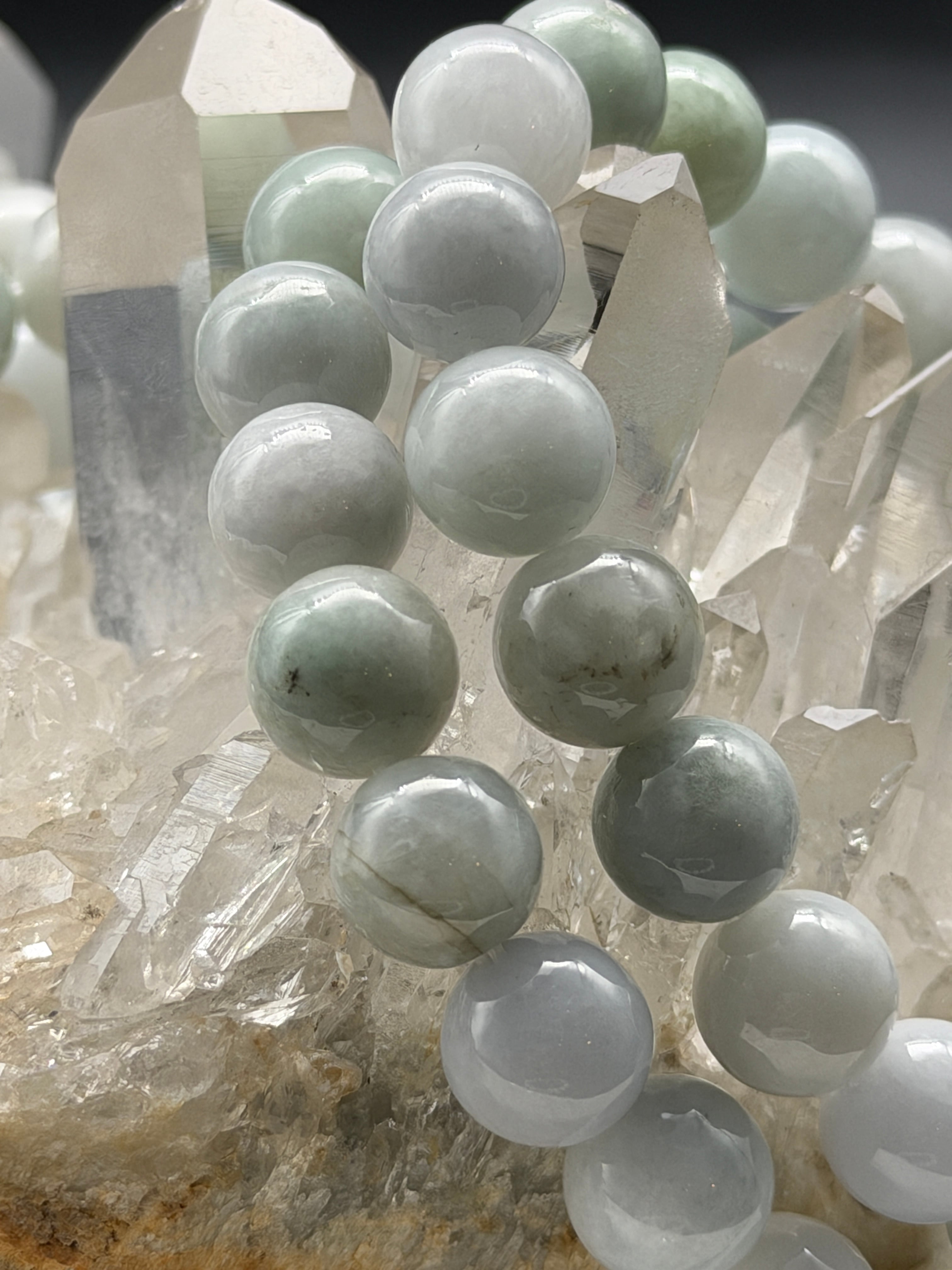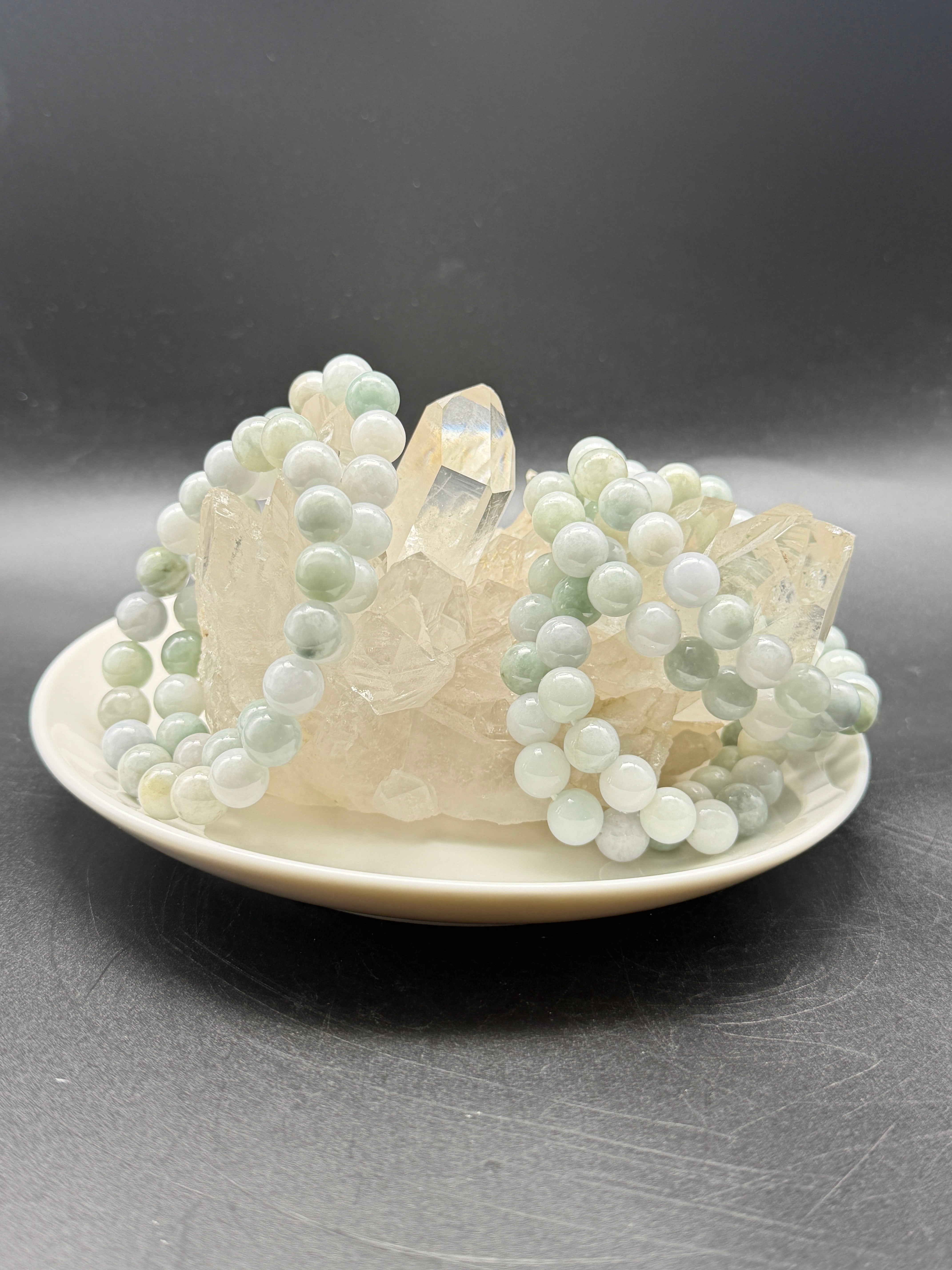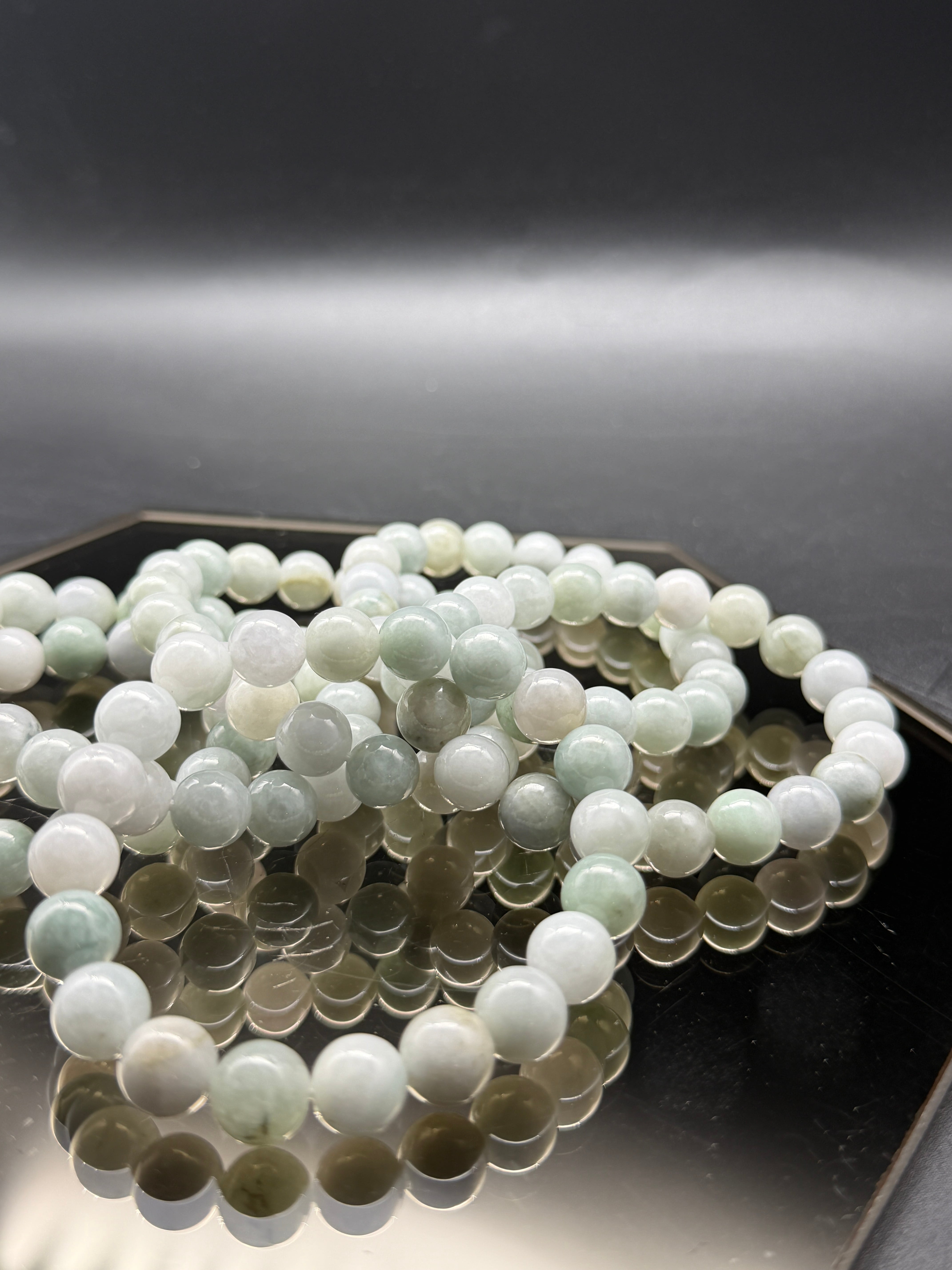優しい色合いをした、約9.5㎜粒のシンプルな翡翠ブレスレットです!